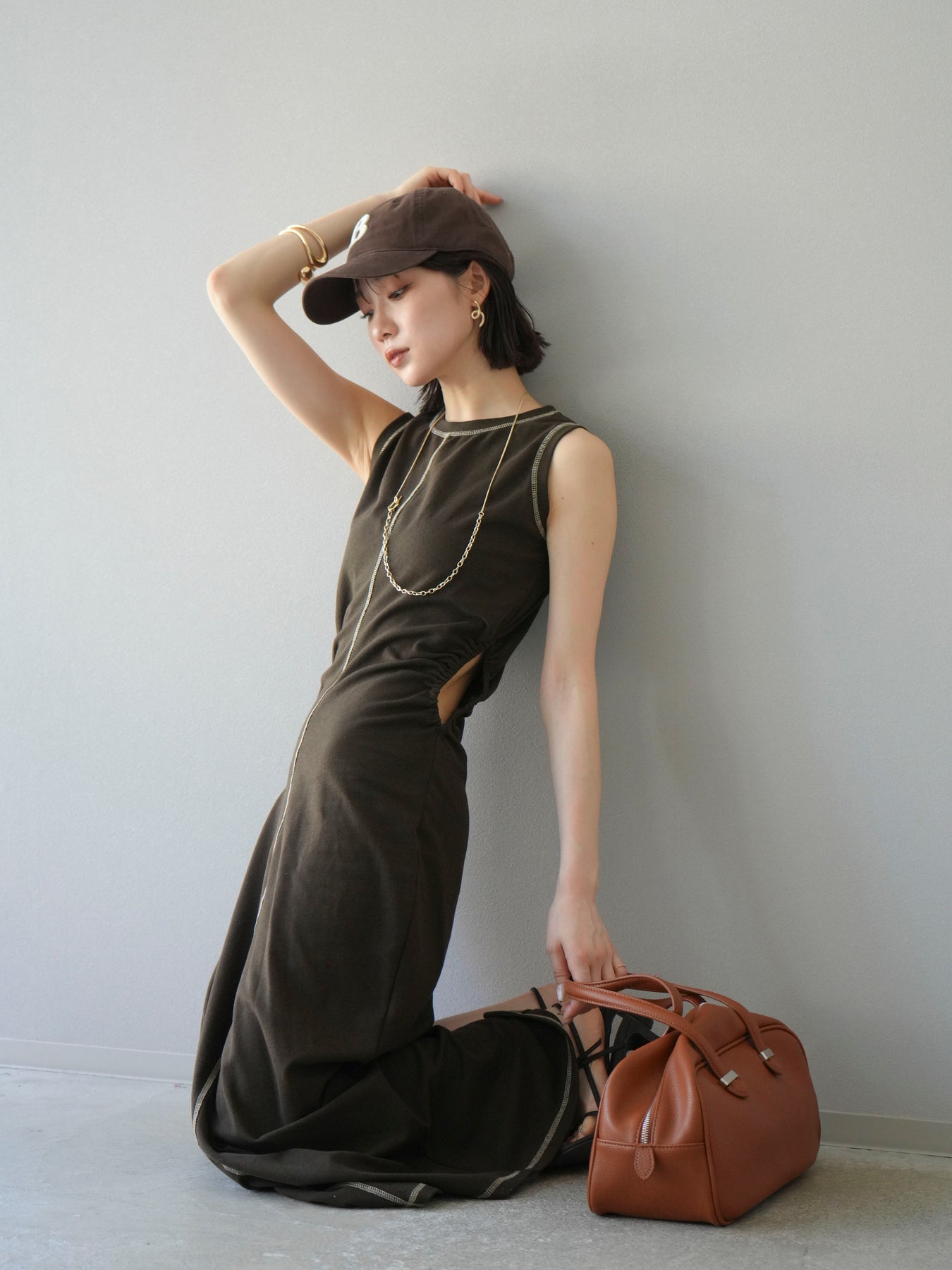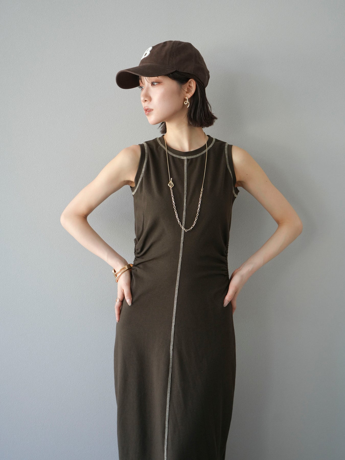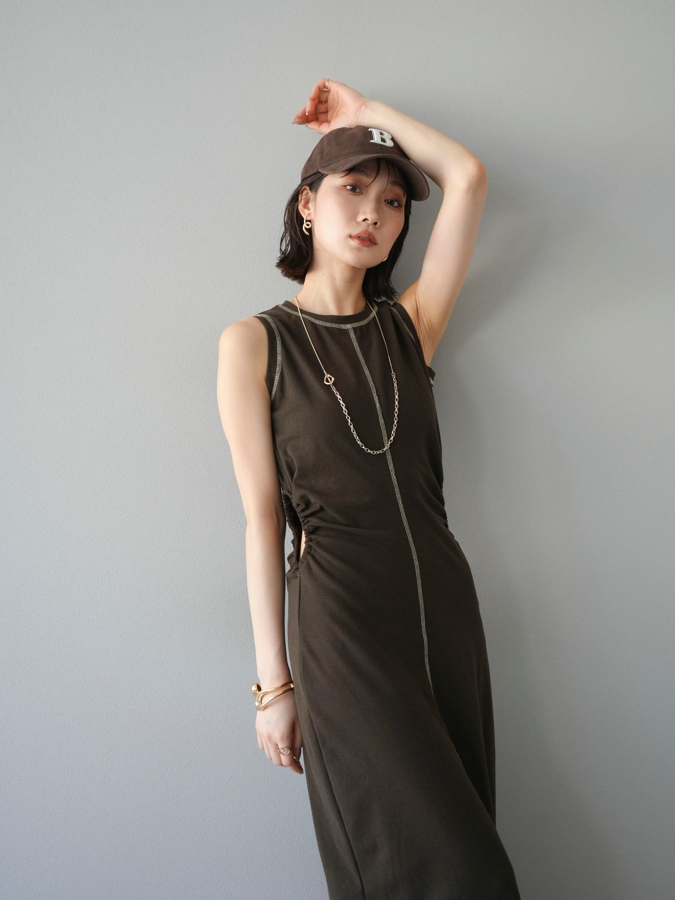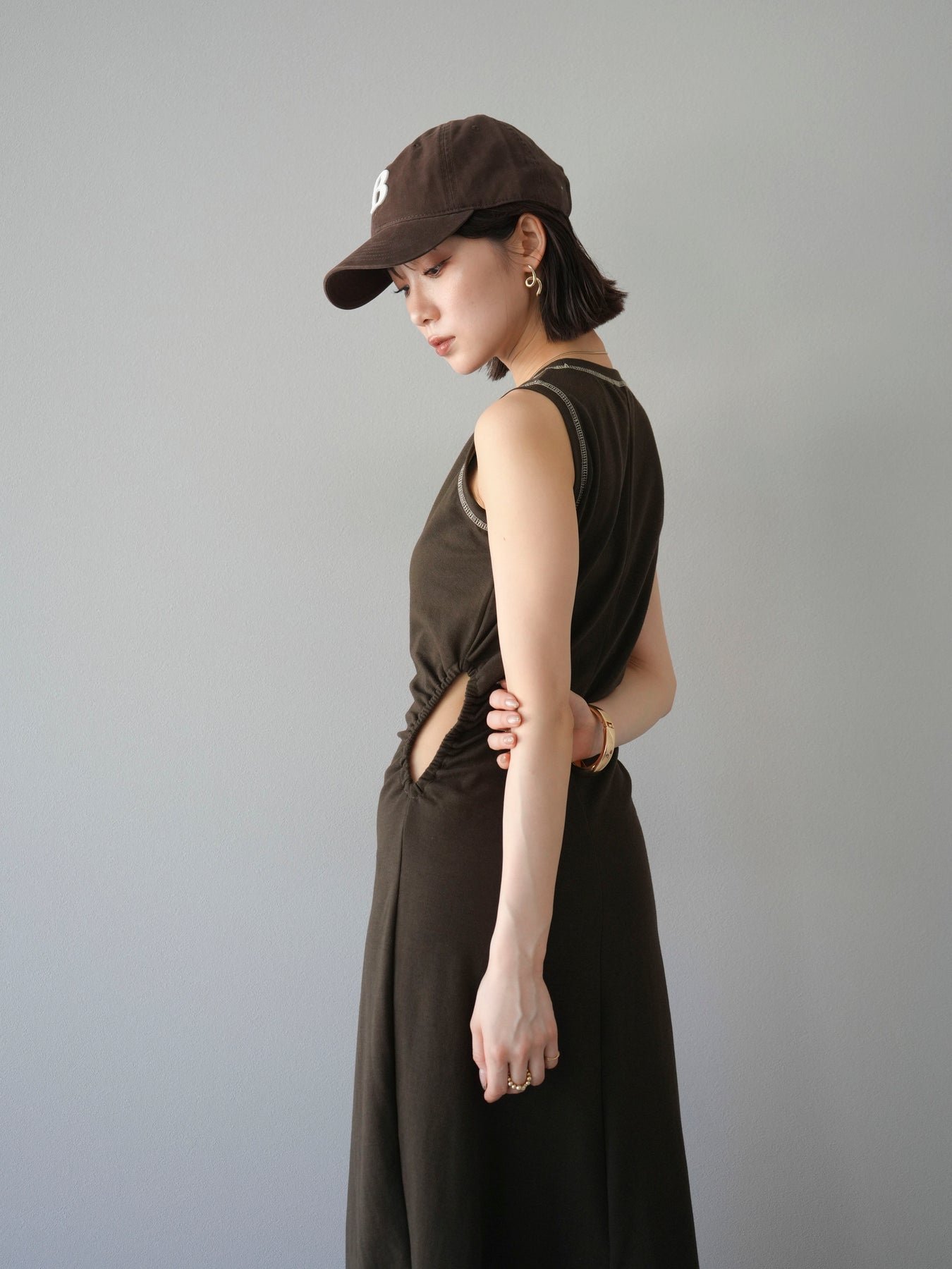 [予約]ウエストオープンステッチカットワンピース/ブラウン