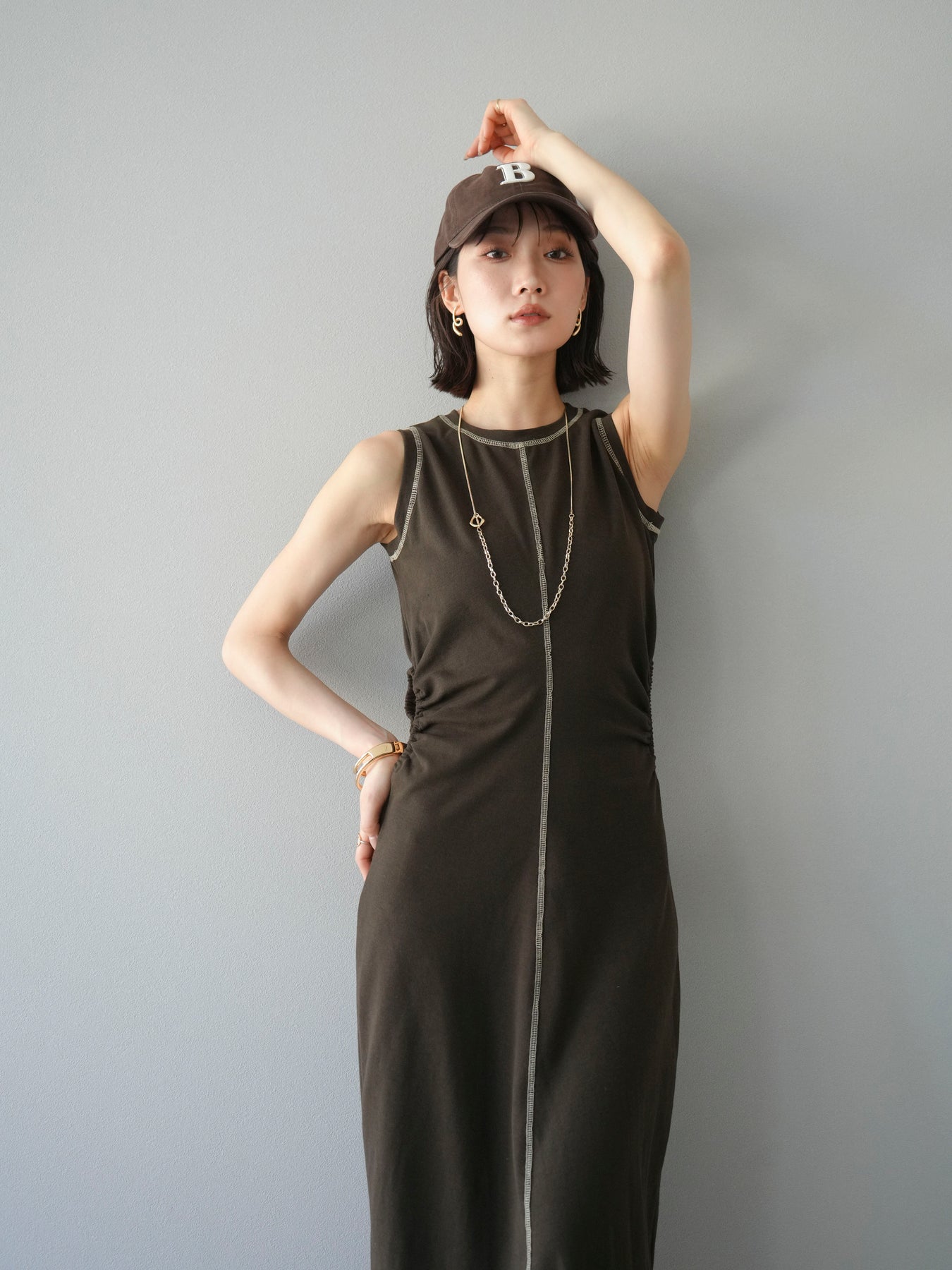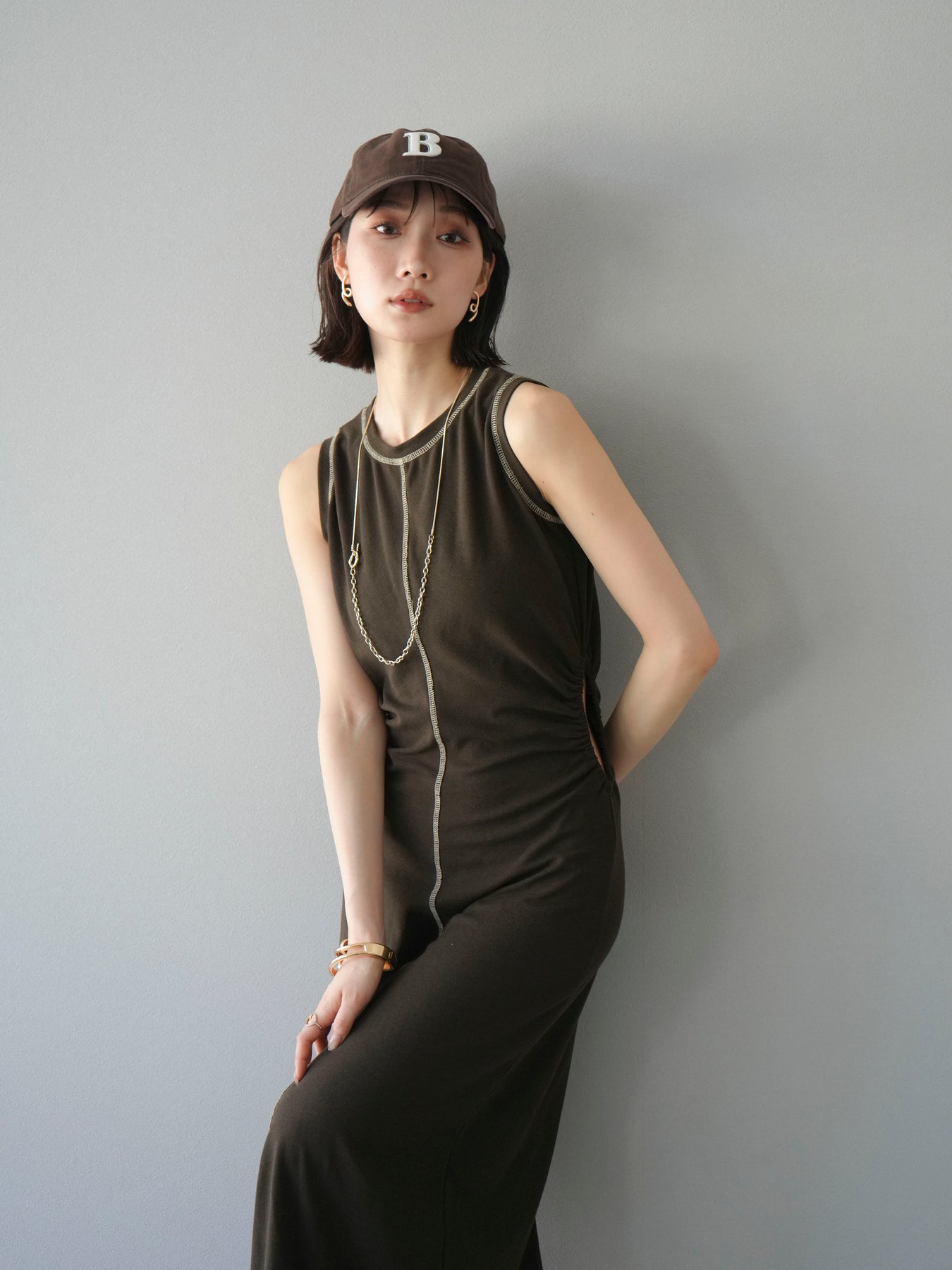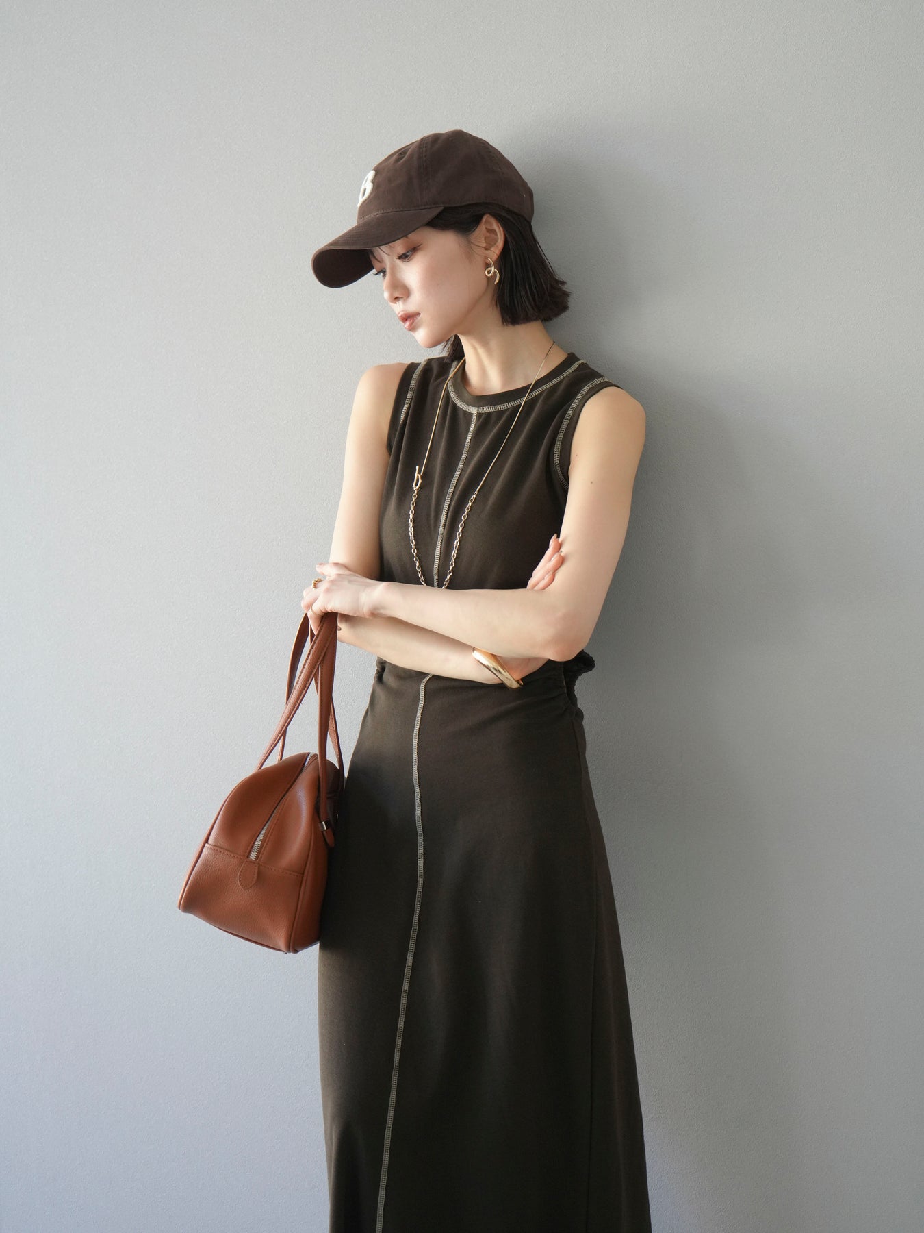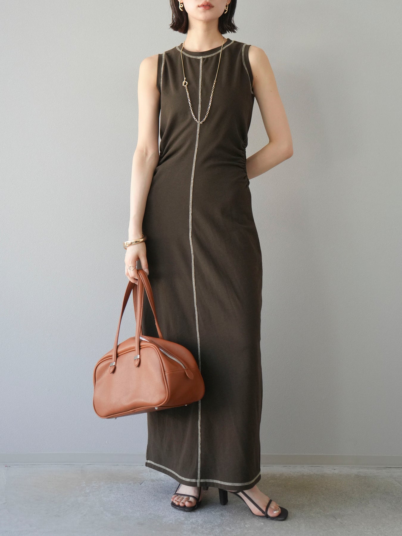 [予約]ウエストオープンステッチカットワンピース/ブラウン