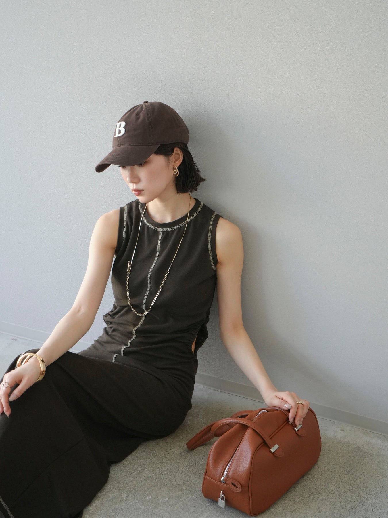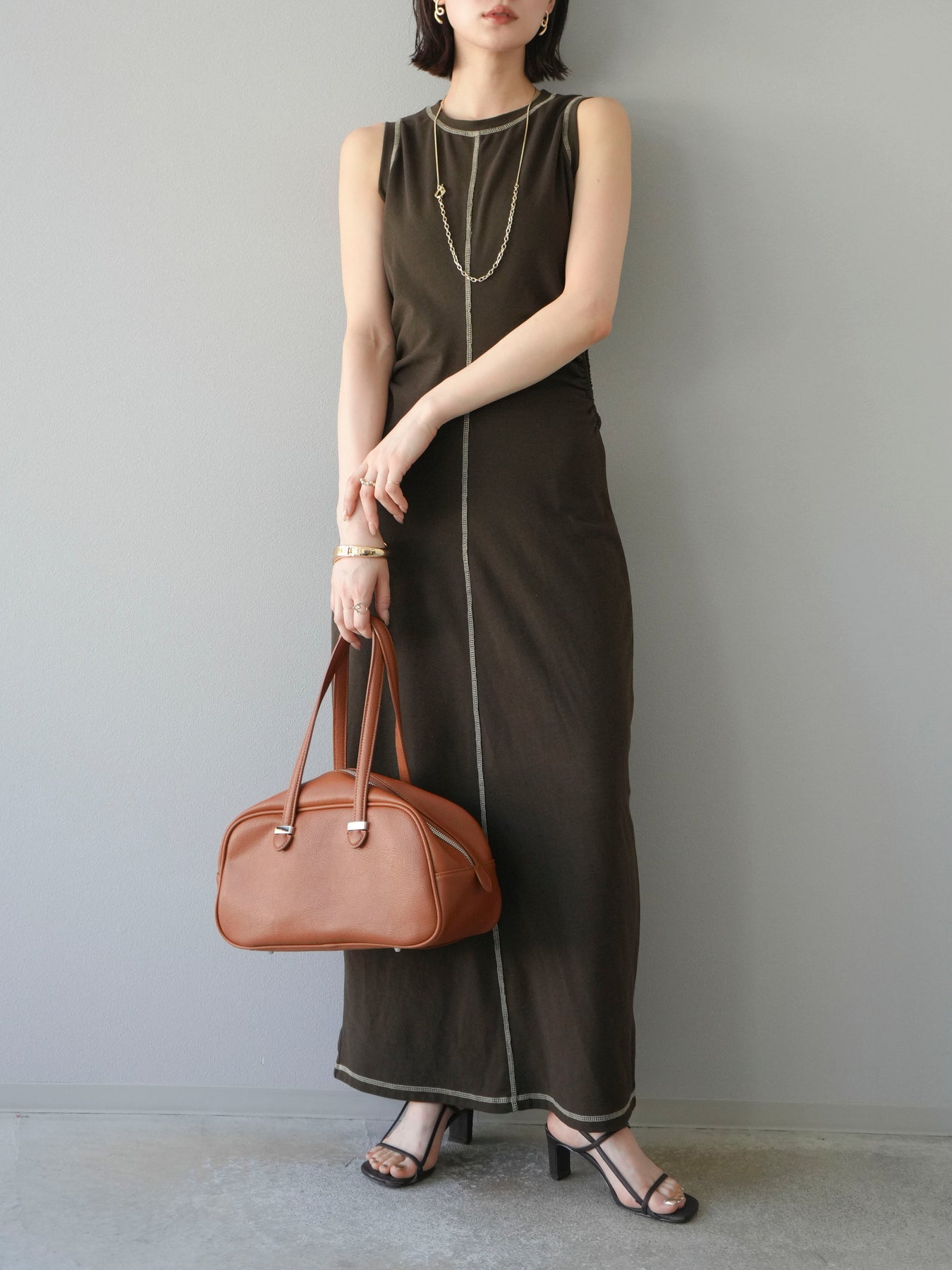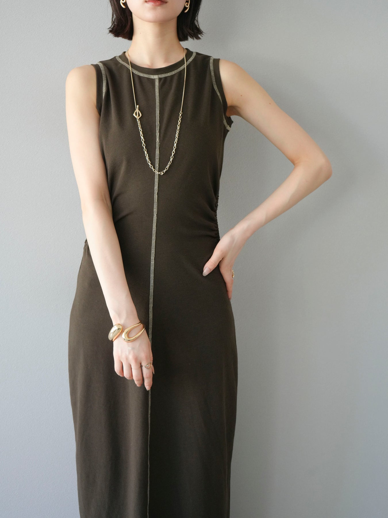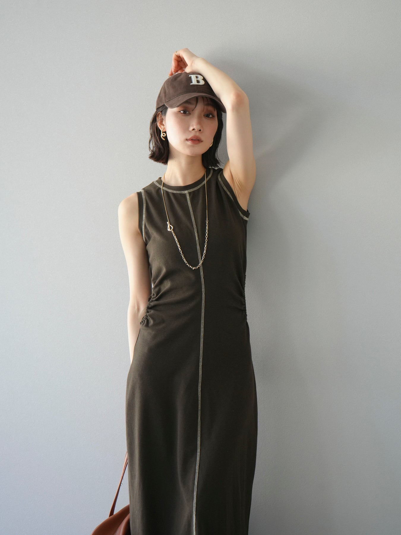 [予約]ウエストオープンステッチカットワンピース/ブラウン