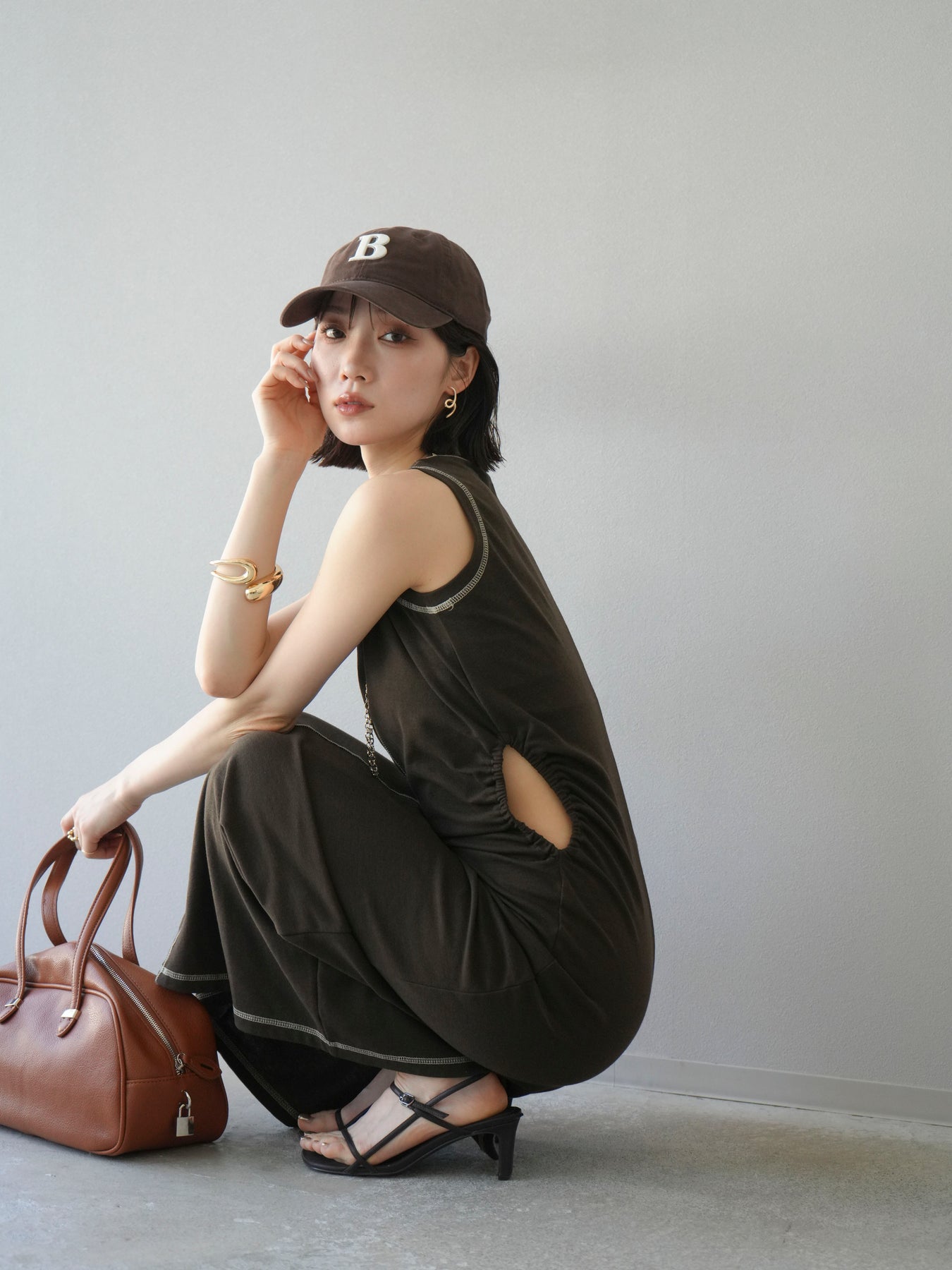 配色ステッチがアクセントになったカットソー素材のワンピース。ウエストサイドに施されたオープンデザインが、程よい肌見せで抜け感を演出し、トレンド感のある仕上がりに。ストレッチ性のある柔らかな素材で、リラックスした着心地も魅力です。シンプルながらもディテールで差がつく一着で、デニムジャケットやキャップを合わせたカジュアルミックスコーデもおすすめ。1枚で主役になる、春夏のスタイリングにぴったりなアイテムです。 ※ボトムス、キャミソール(インナー)以外の商品は一律でインナーは付属していません。