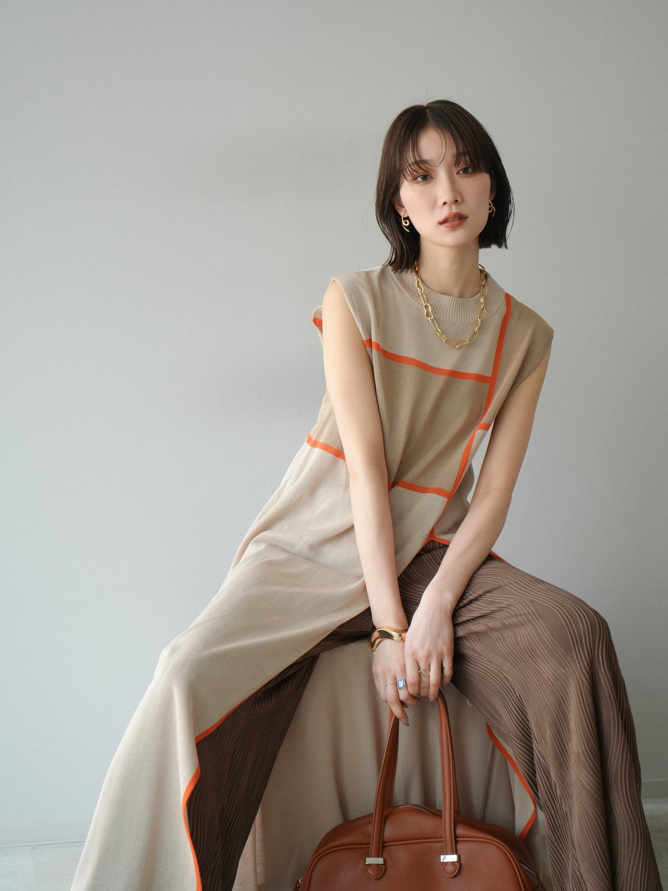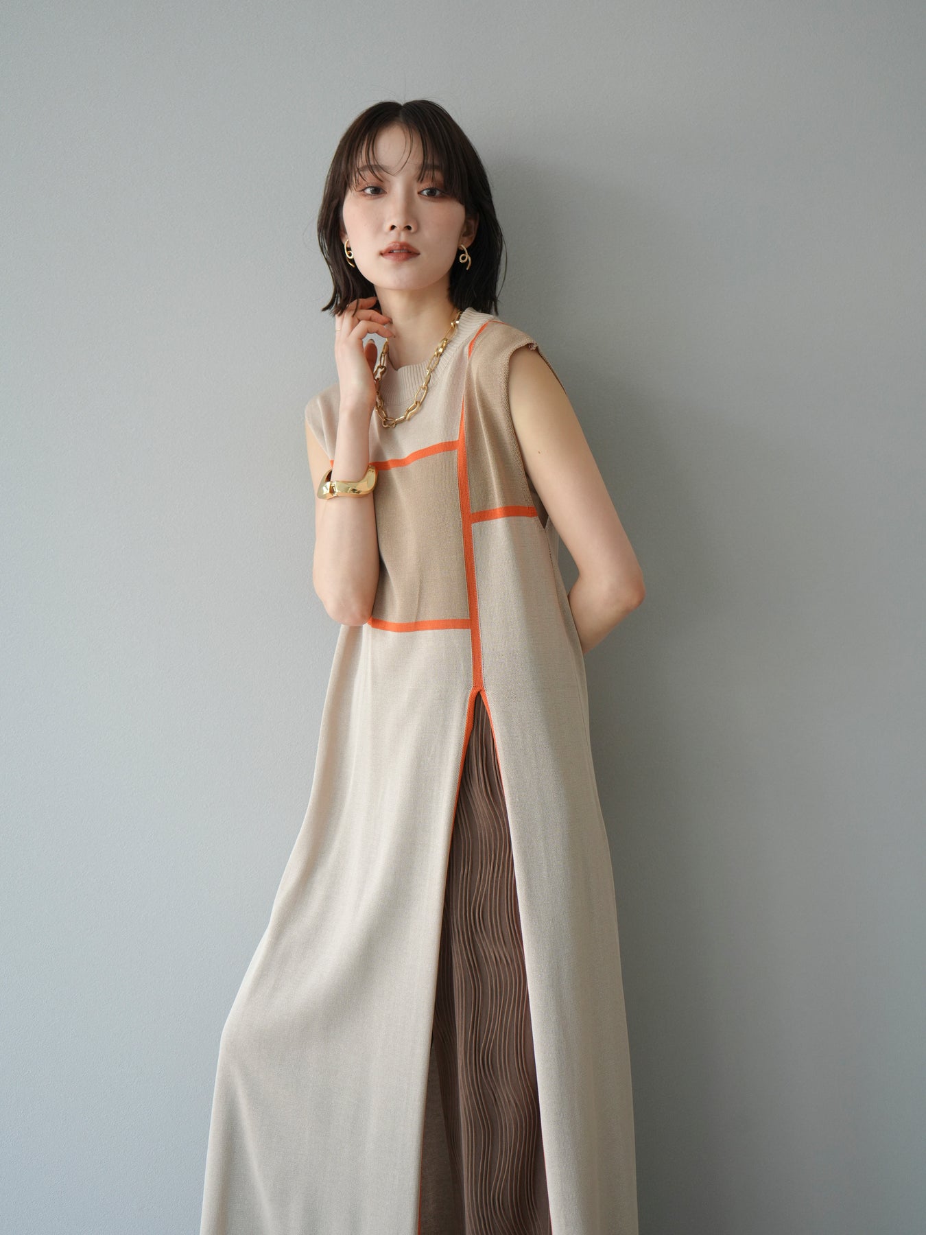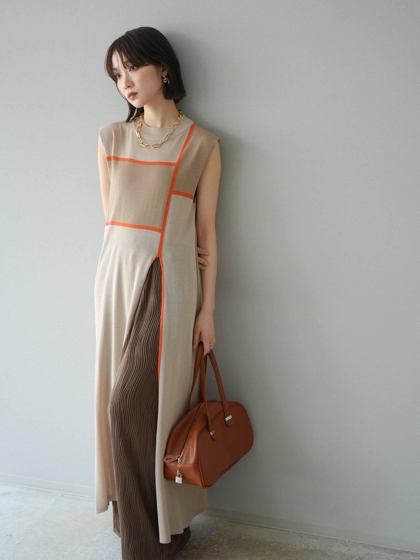大胆なブロッキングデザインが目を惹く、配色スリットニットワンピース。軽やかなシアーニット素材を使用し、程よい透け感が春夏らしい抜け感を演出します。アートのような配色が視線を惹きつけるデザインで、1枚で存在感のある着こなしに。サイドには深めのスリット入りで、動きやすさとレイヤードスタイルの楽しさを両立。パンツやキャミワンピとの重ね着にもぴったりな、モードとリラックスを兼ね備えた1枚です。 ※ボトムス、キャミソール(インナー)以外の商品は一律でインナーは付属していません。