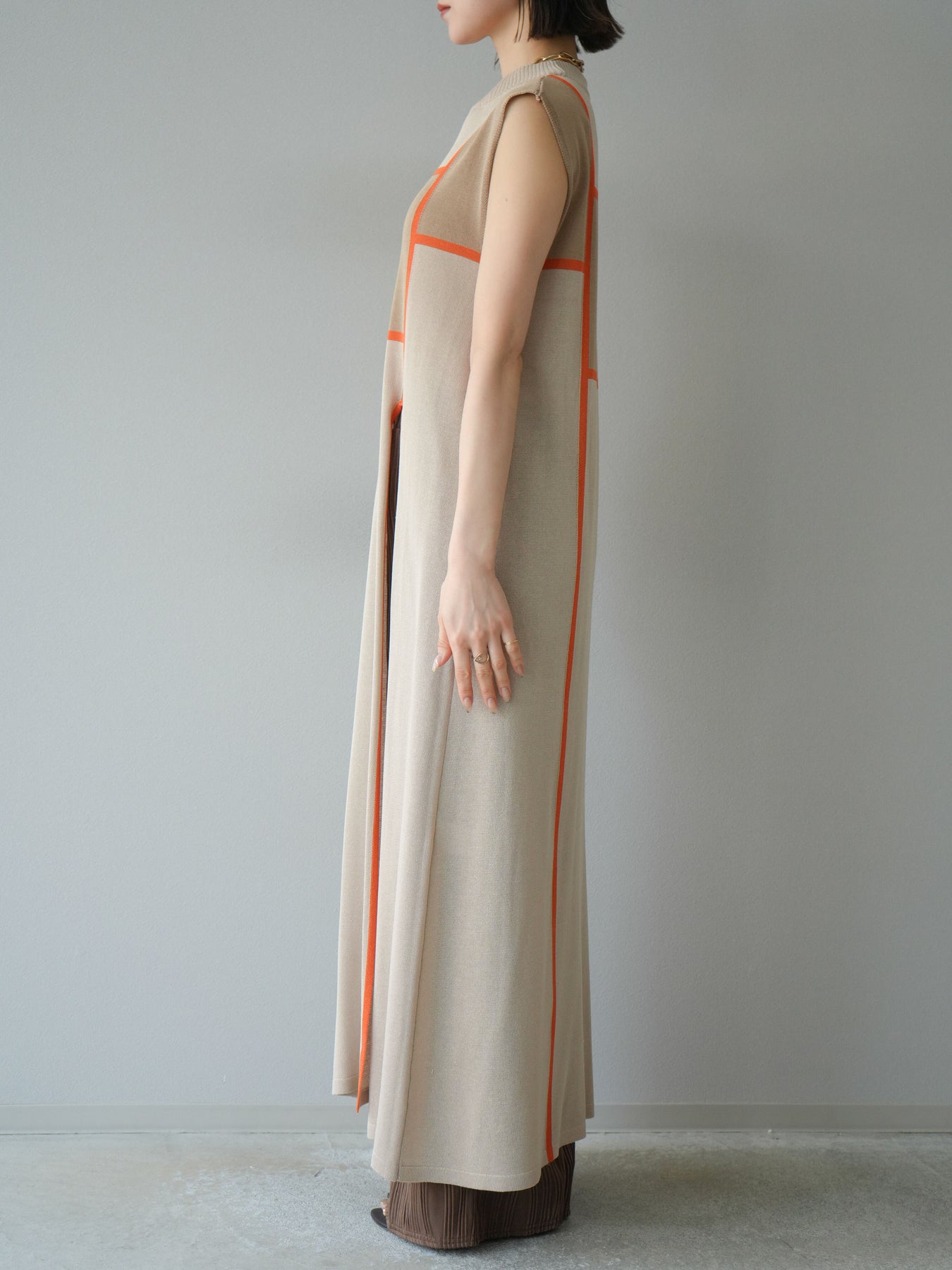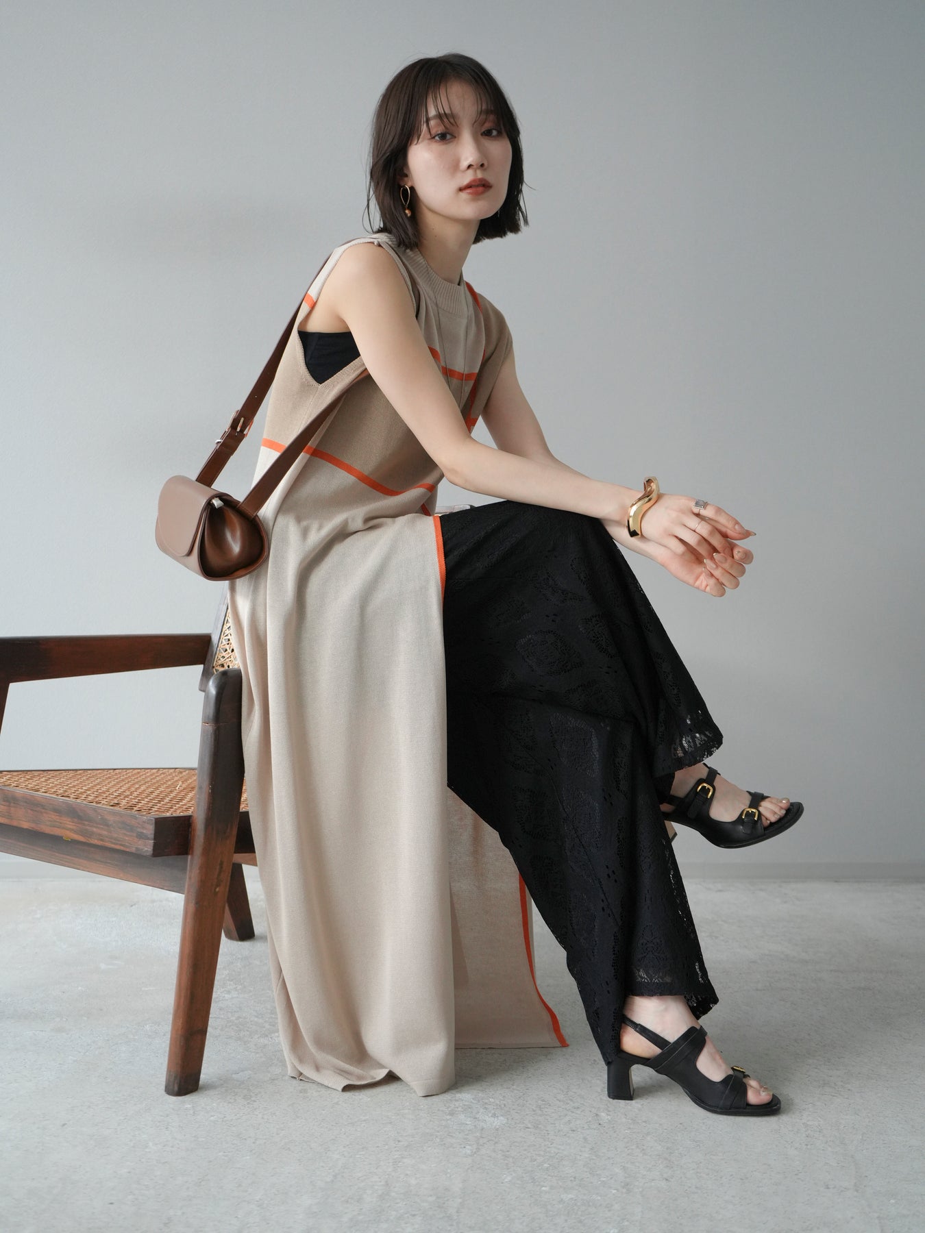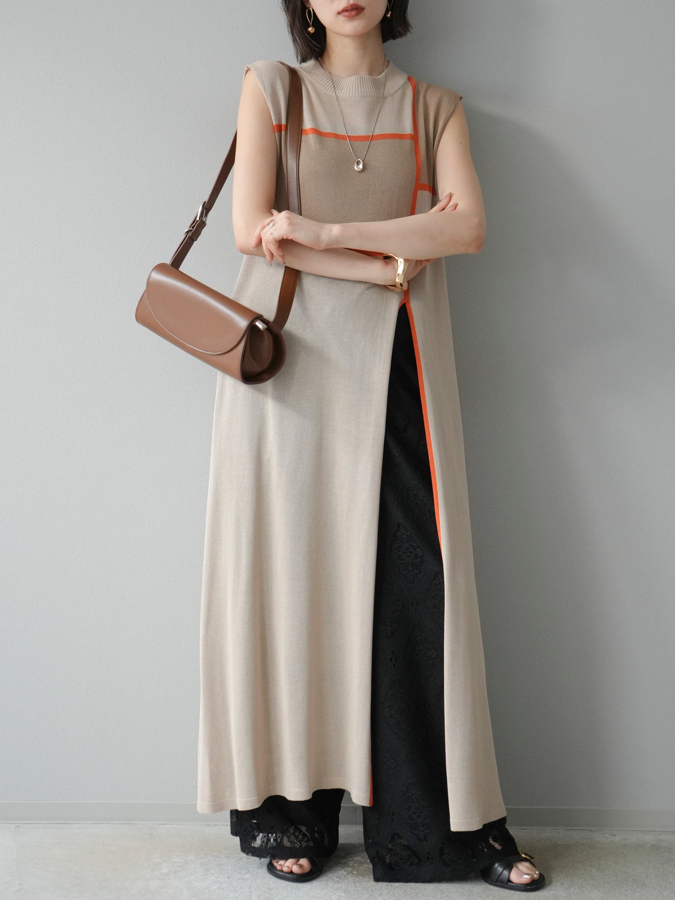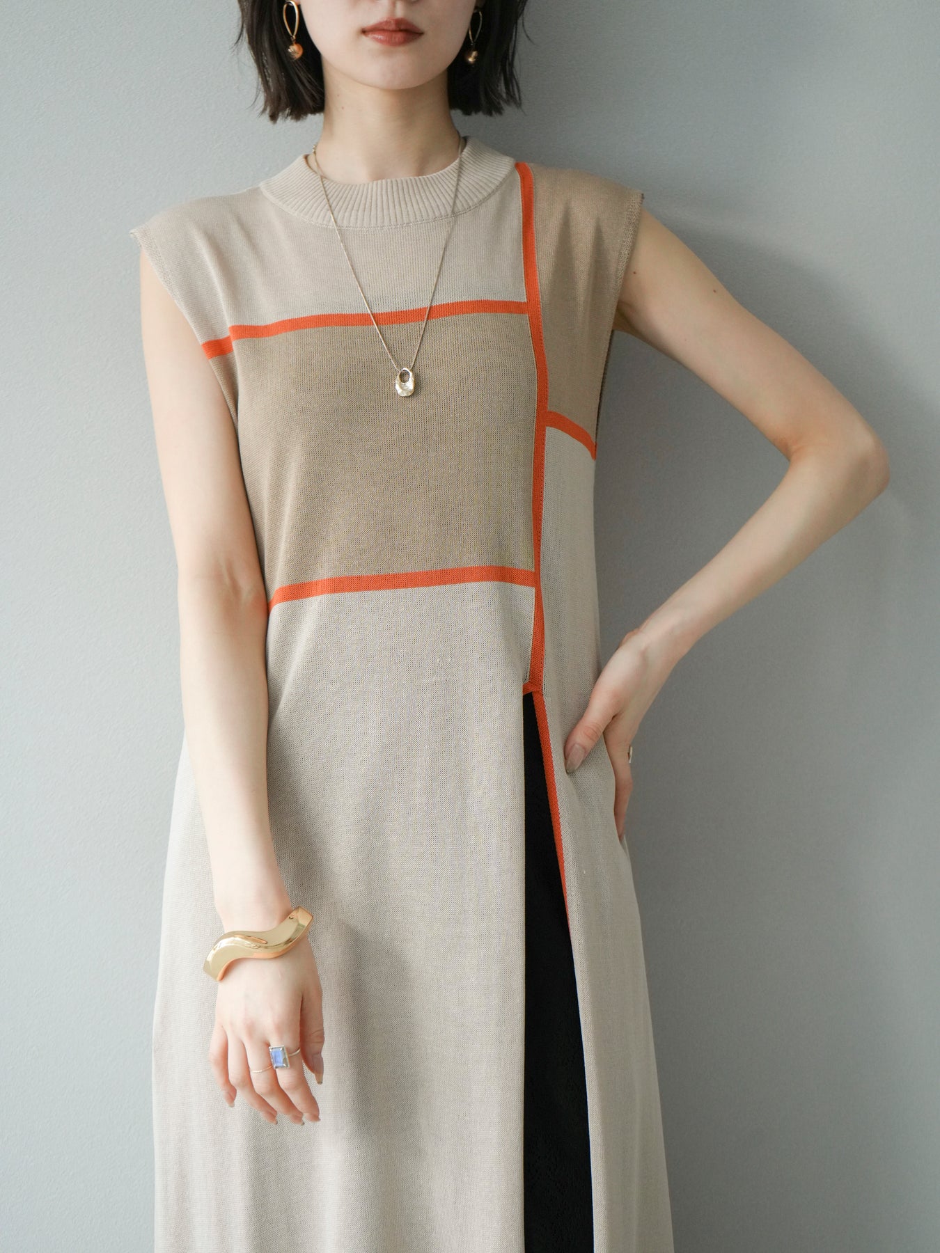 大胆なブロッキングデザインが目を惹く、配色スリットニットワンピース。軽やかなシアーニット素材を使用し、程よい透け感が春夏らしい抜け感を演出します。アートのような配色が視線を惹きつけるデザインで、1枚で存在感のある着こなしに。サイドには深めのスリット入りで、動きやすさとレイヤードスタイルの楽しさを両立。パンツやキャミワンピとの重ね着にもぴったりな、モードとリラックスを兼ね備えた1枚です。 ※ボトムス、キャミソール(インナー)以外の商品は一律でインナーは付属していません。
