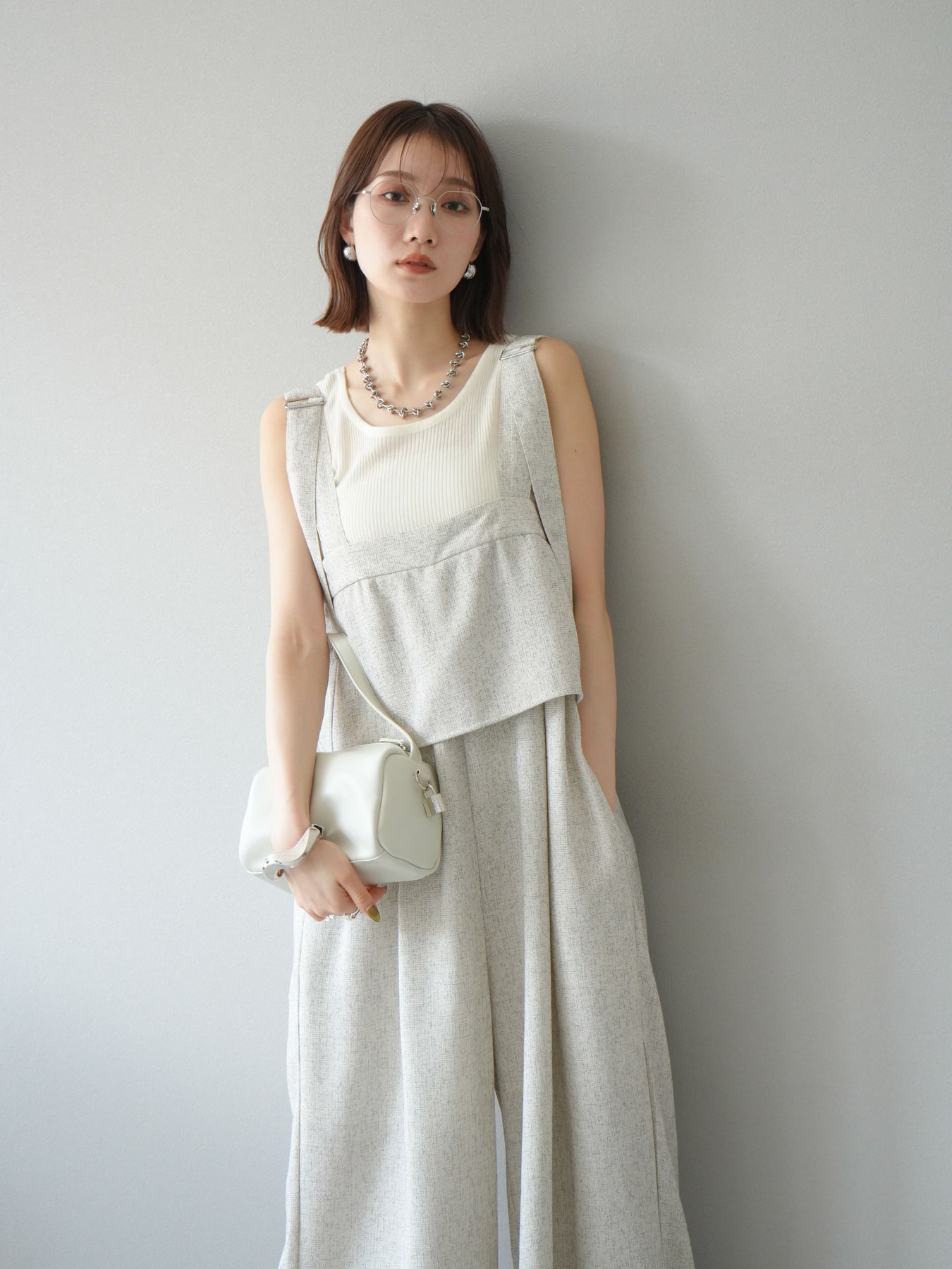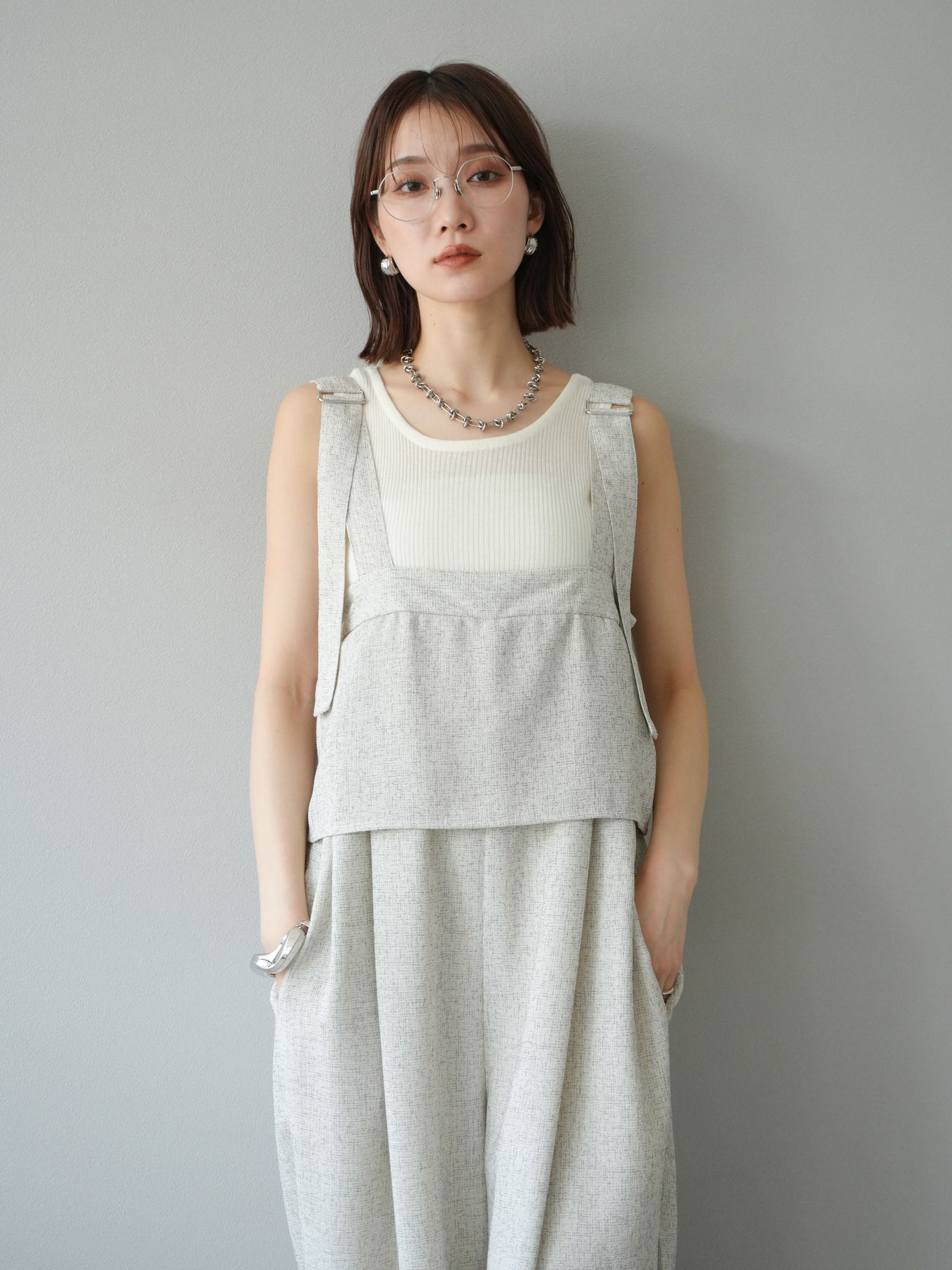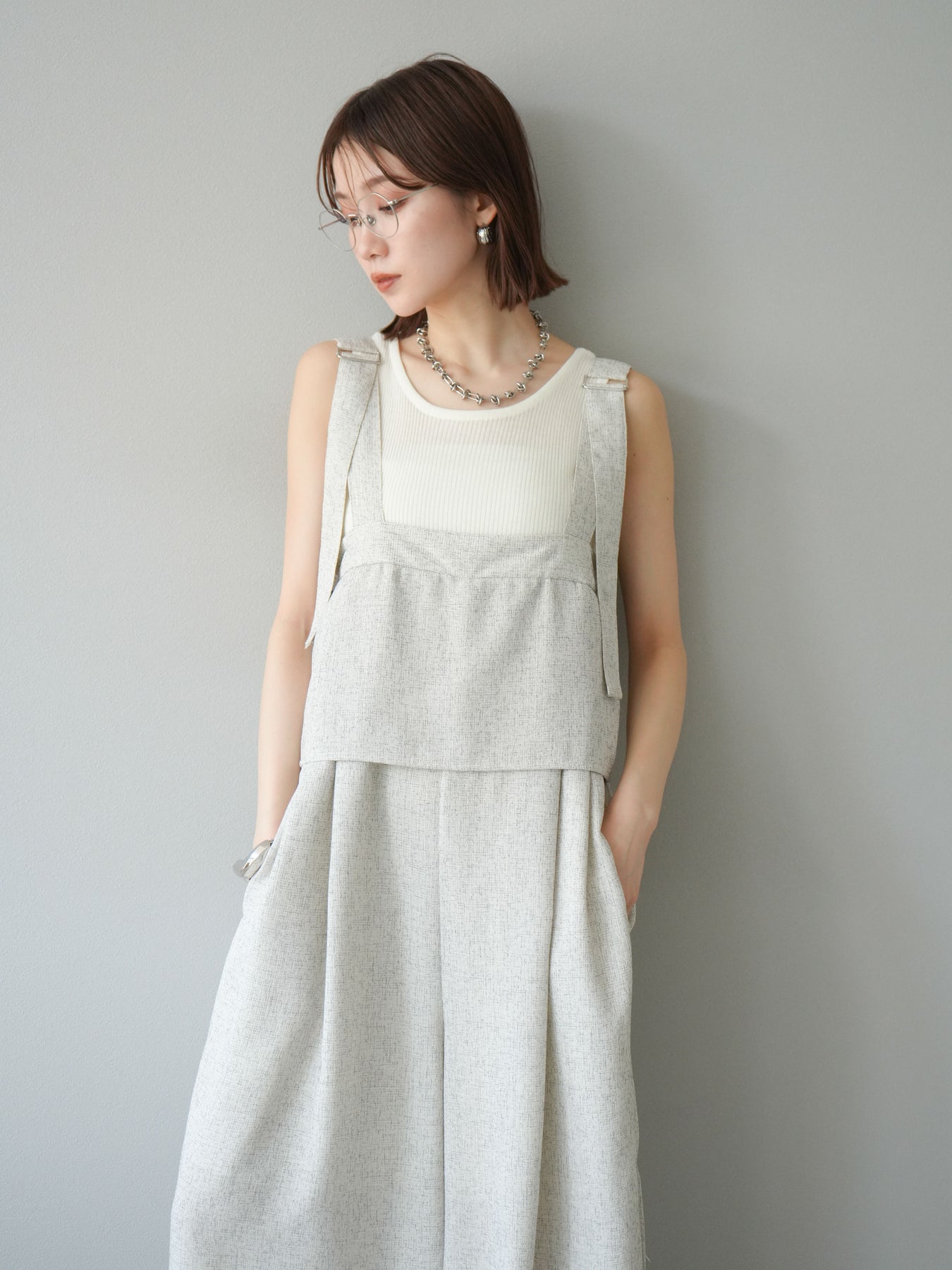 [予約]サマーツイードケープサロペット/アイボリー