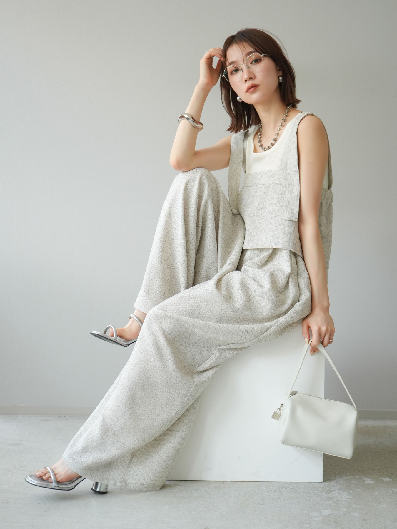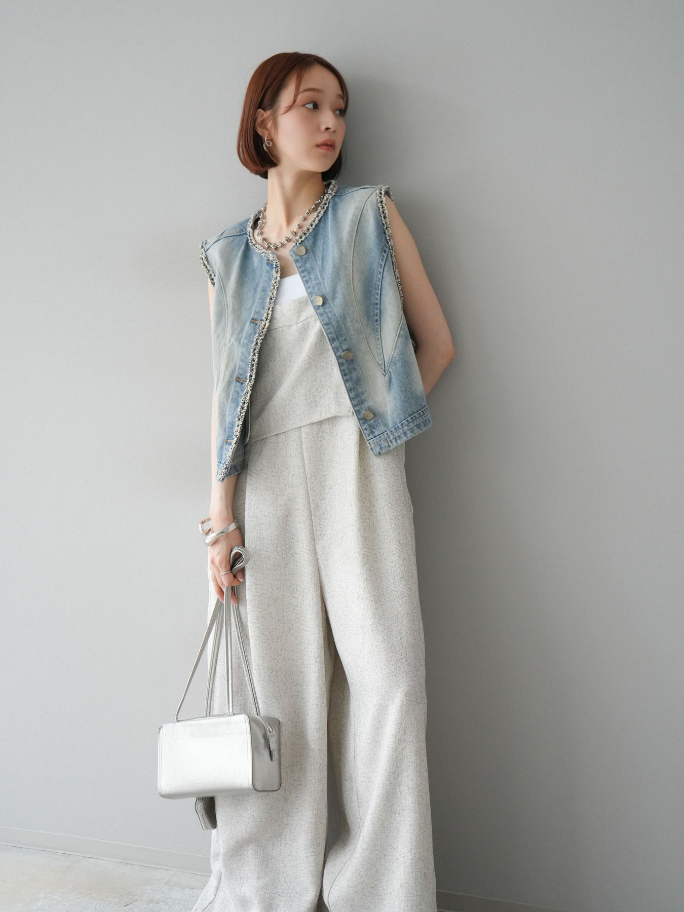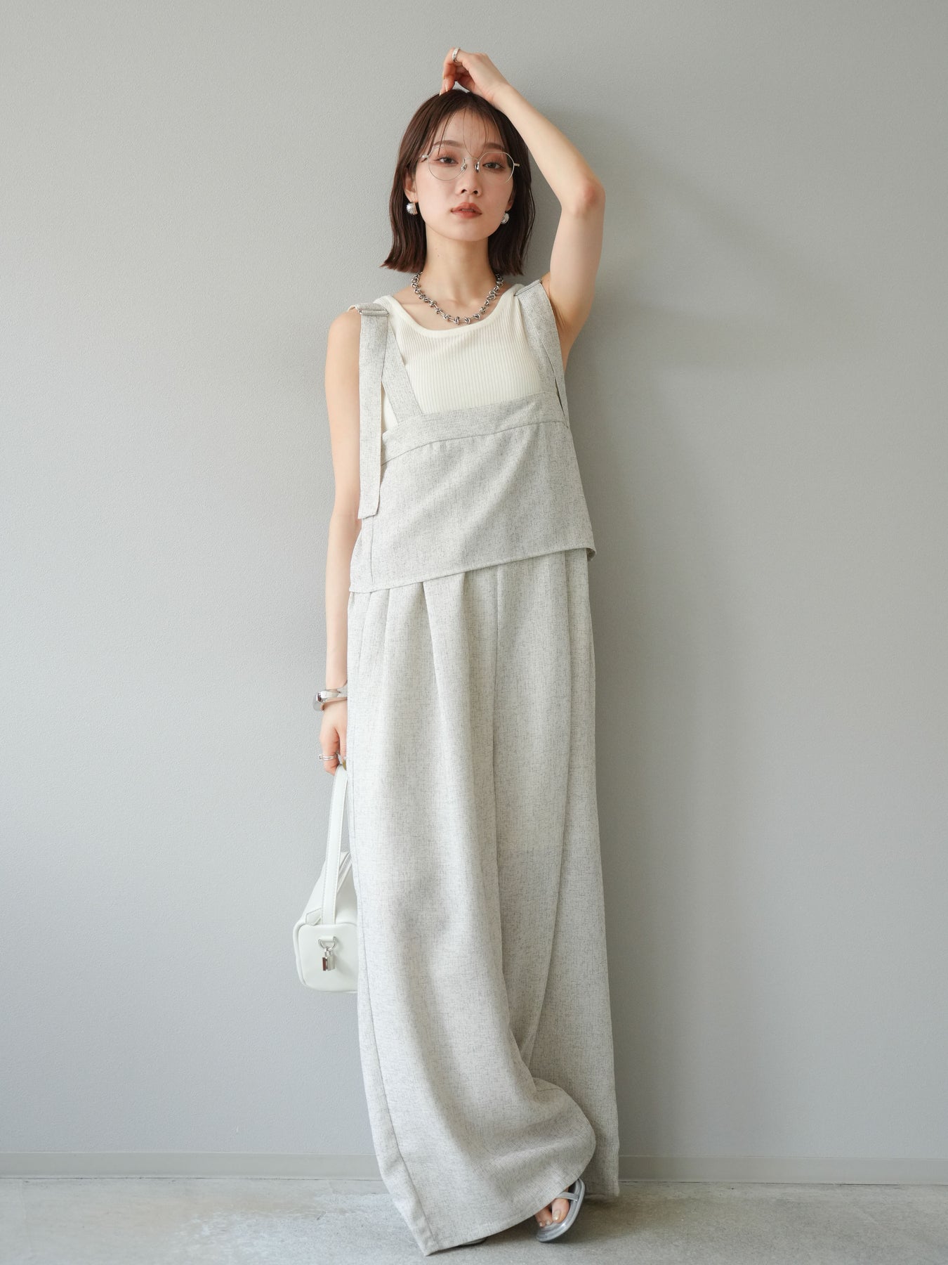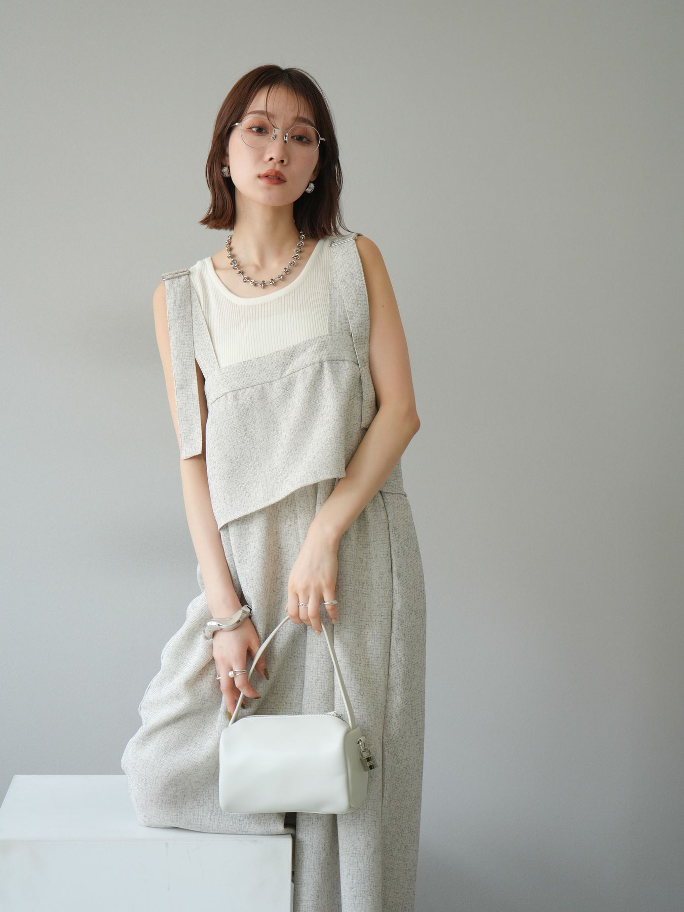 [予約]サマーツイードケープサロペット/アイボリー