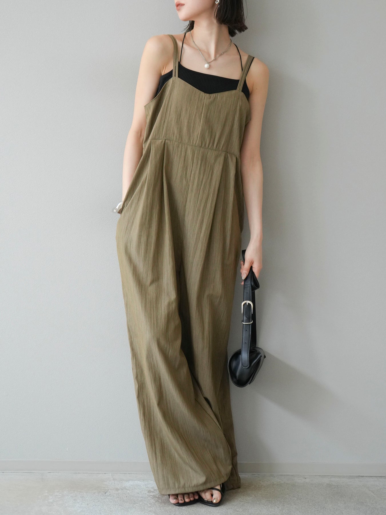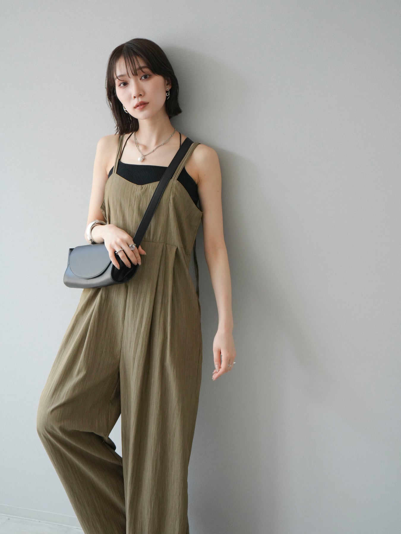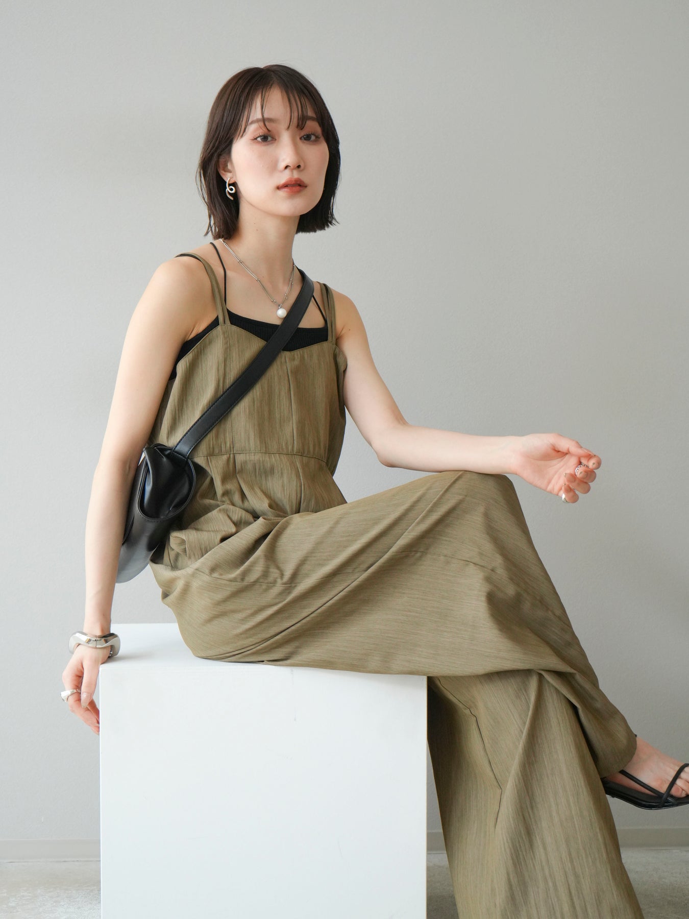 ビスチェ風の胸元デザインがポイントの、リネンライクビスチェデザインサロペット。ストンと落ちるワイドストレートシルエットと、リネン見えするさらりとした素材感が夏らしい抜け感を演出します。肩ひもは華奢なダブルストラップ仕様で、女性らしくヘルシーな肌見せが叶うデザイン。ハイウエスト位置の切替がスタイルアップ効果を高め、シンプルなインナーと合わせるだけでこなれた印象に。Tシャツやタンクトップ、シアーインナーとのレイヤードもおすすめの、大人のカジュアルスタイルに映える1枚です。 ※ボトムス、キャミソール(インナー)以外の商品は一律でインナーは付属していません。