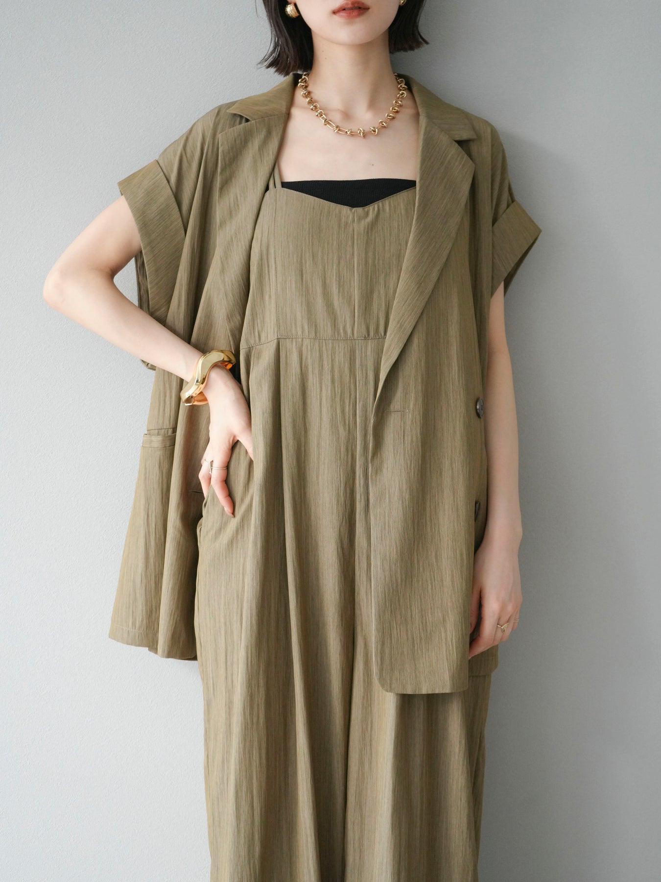 [予約]リネンライクビスチェデザインサロペット/グレージュ