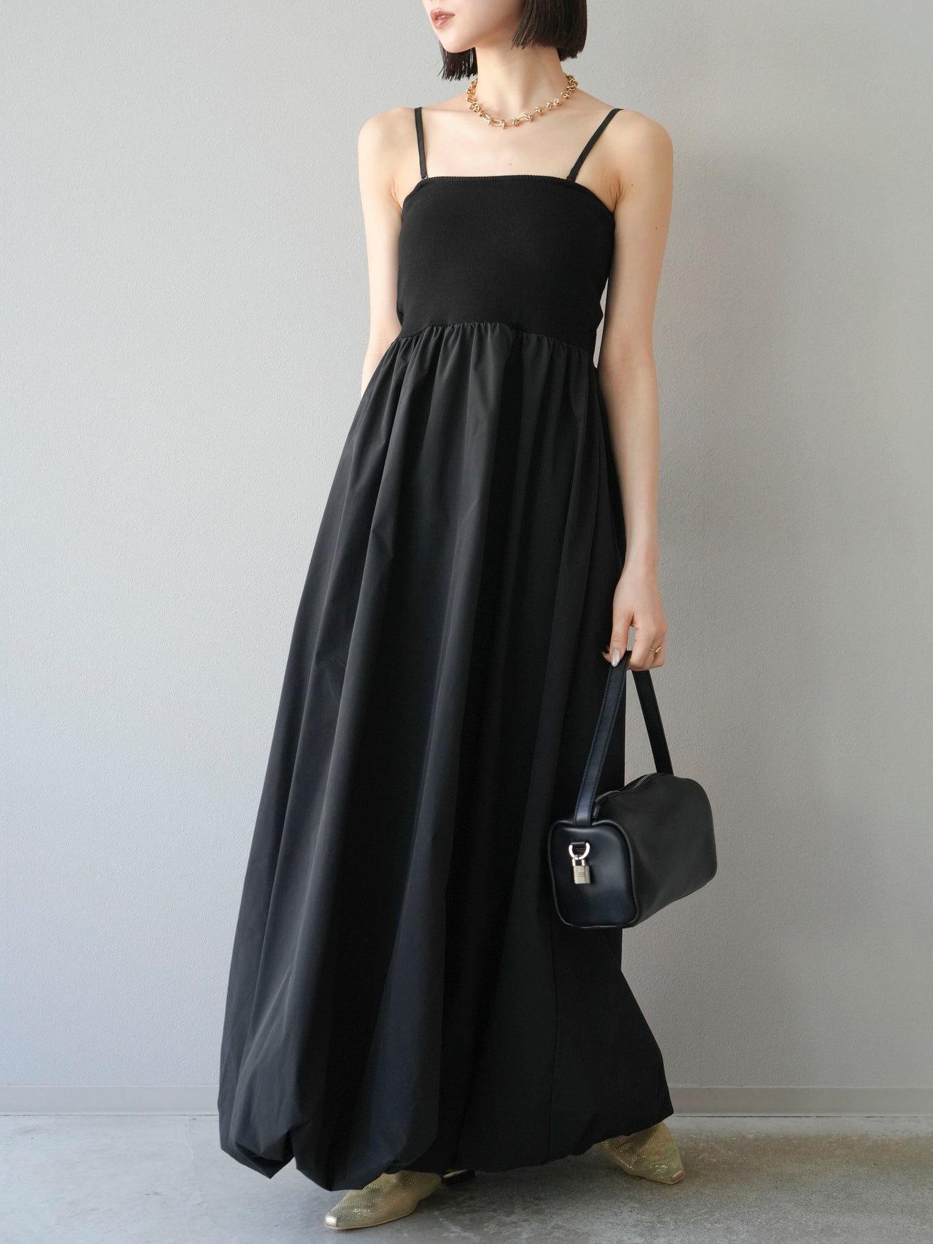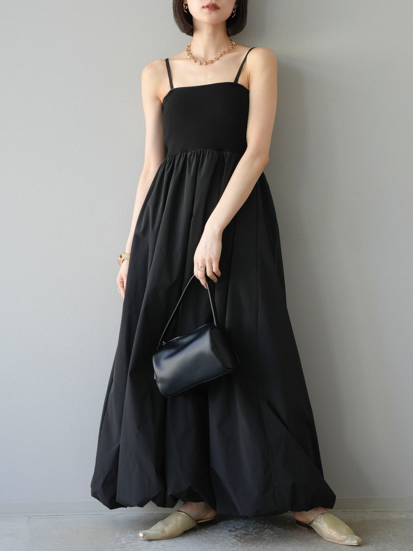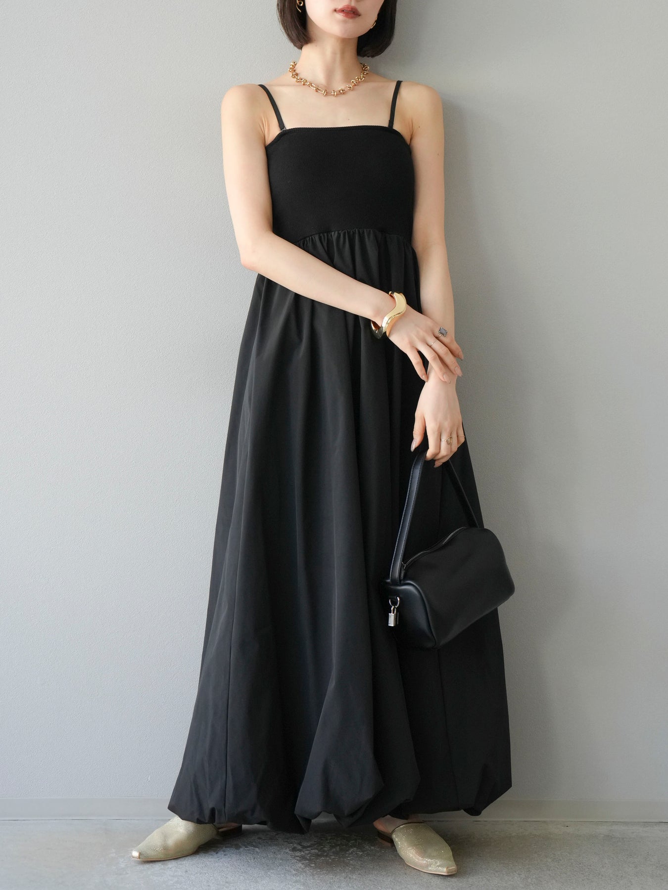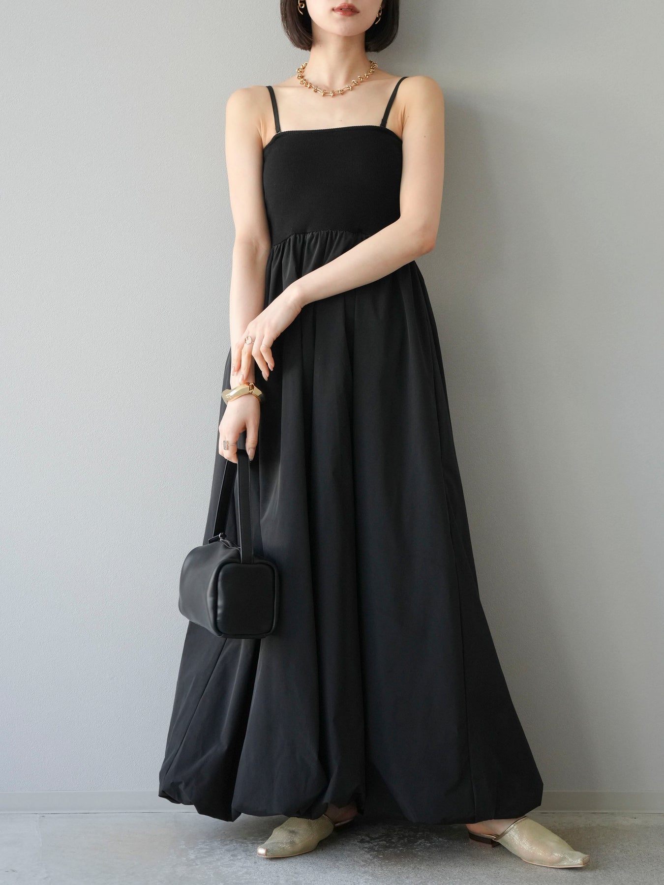 [予約]異素材ドッキングカップ付ベアキャミバルーンワンピース/ブラックブラック