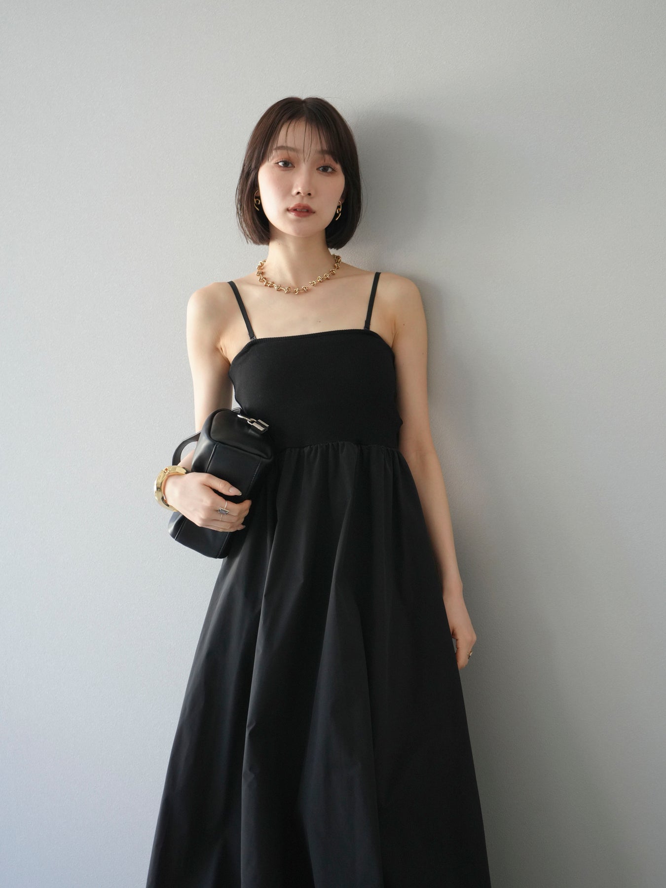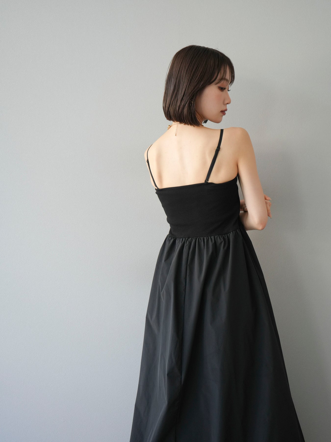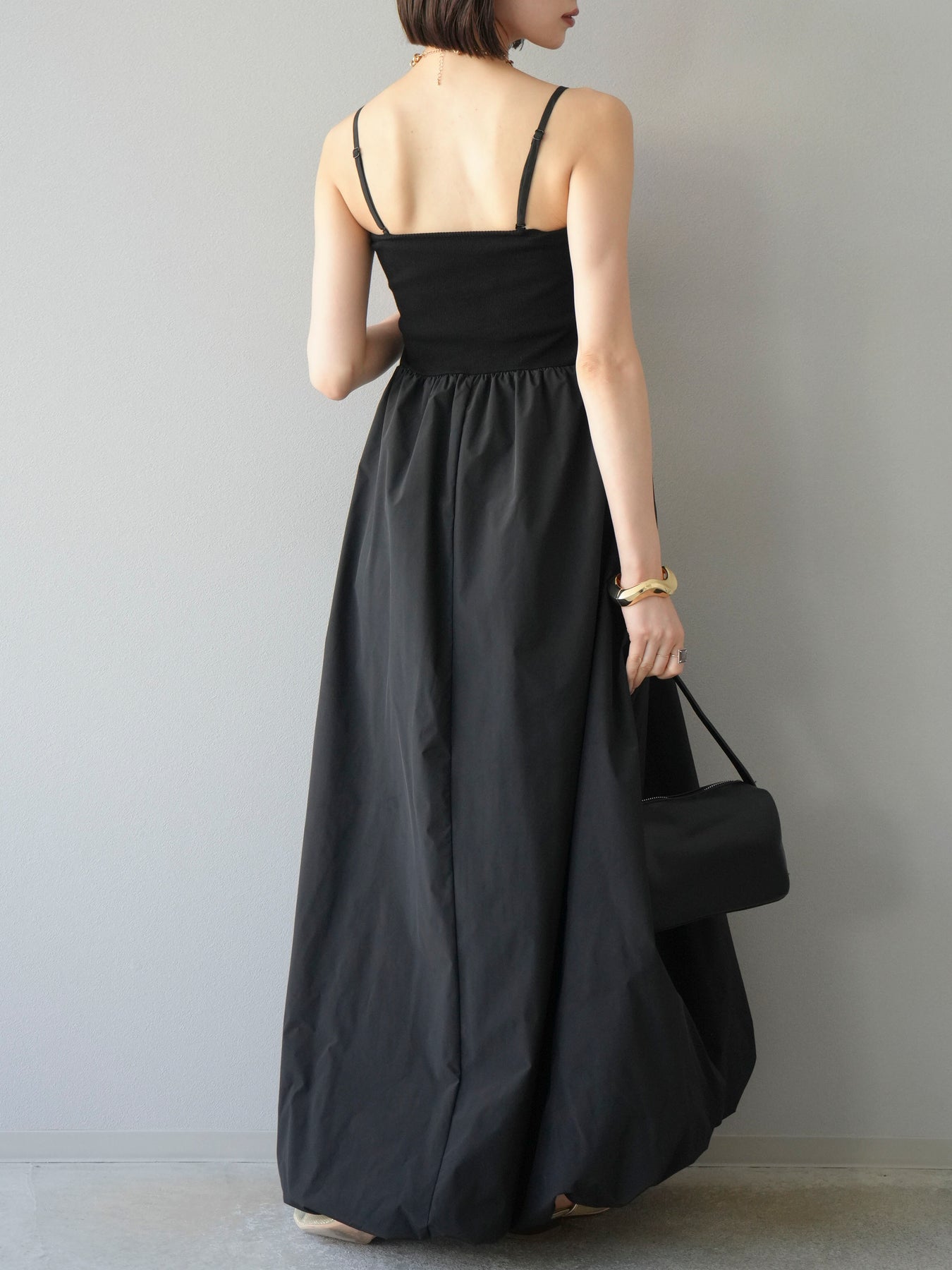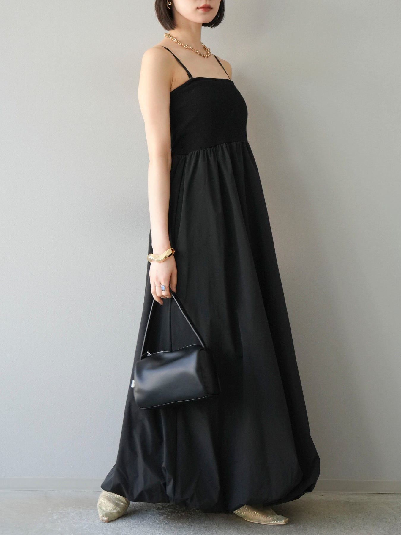 [予約]異素材ドッキングカップ付ベアキャミバルーンワンピース/ブラックブラック