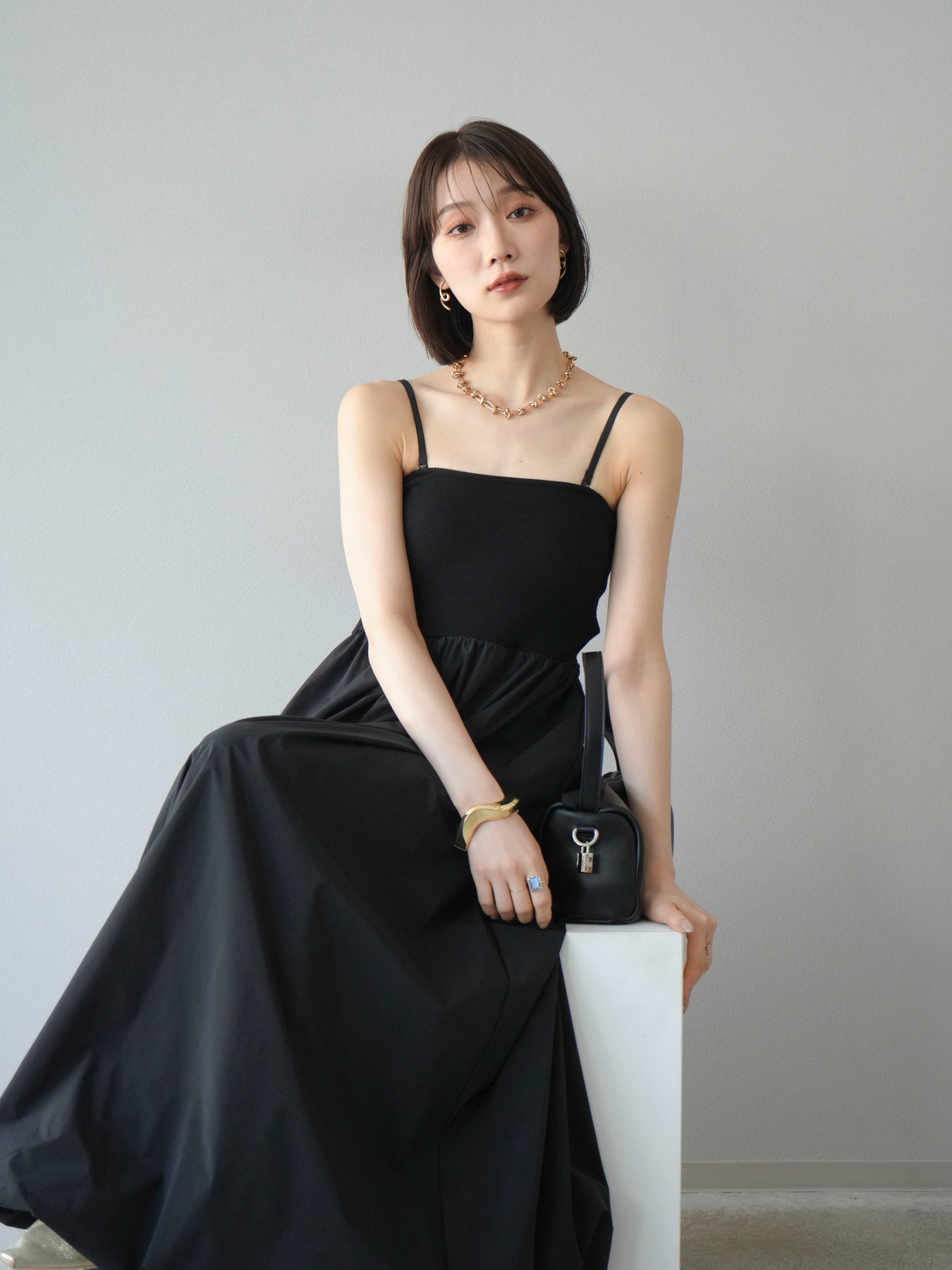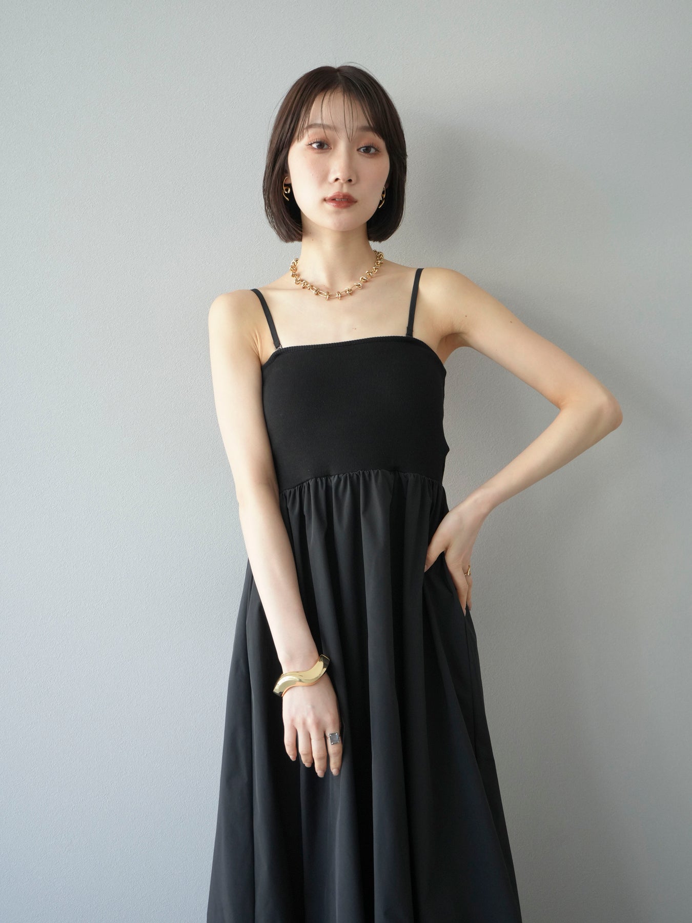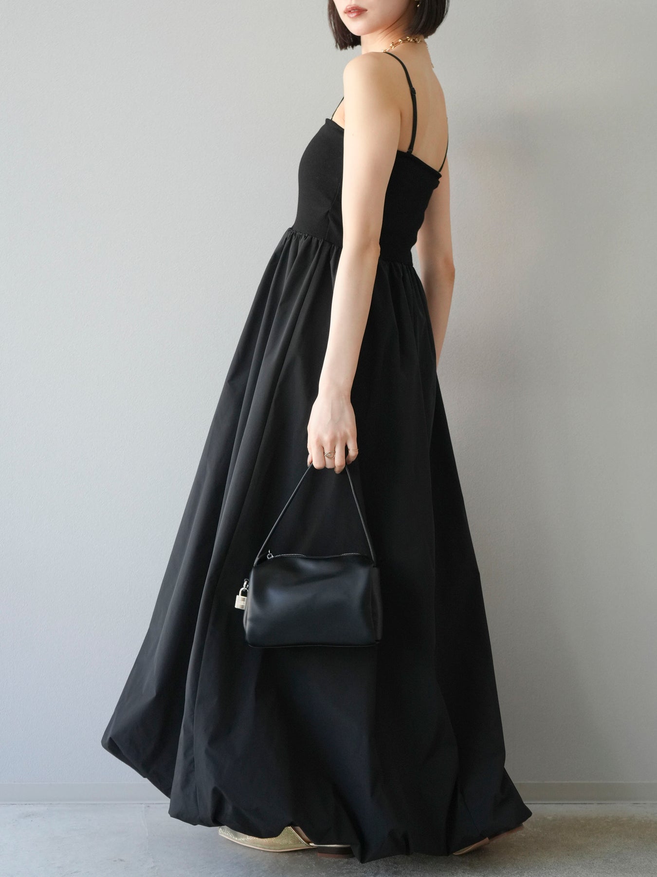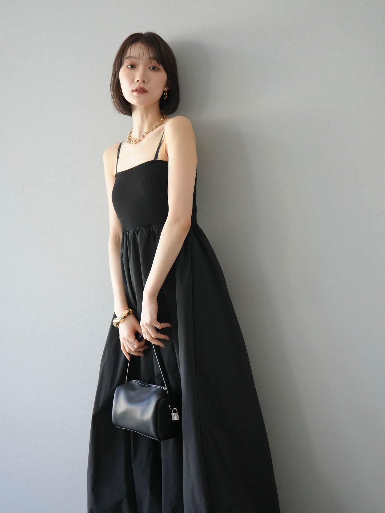 [予約]異素材ドッキングカップ付ベアキャミバルーンワンピース/ブラックブラック