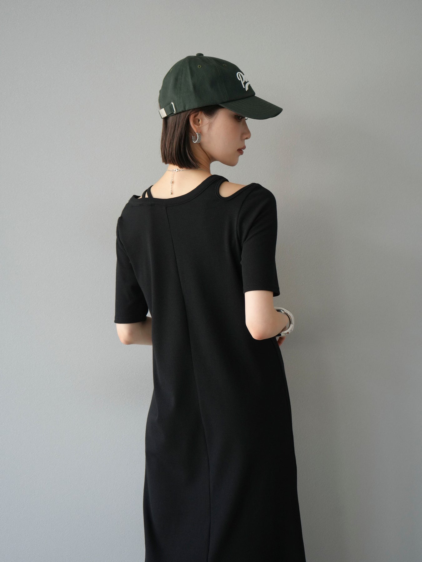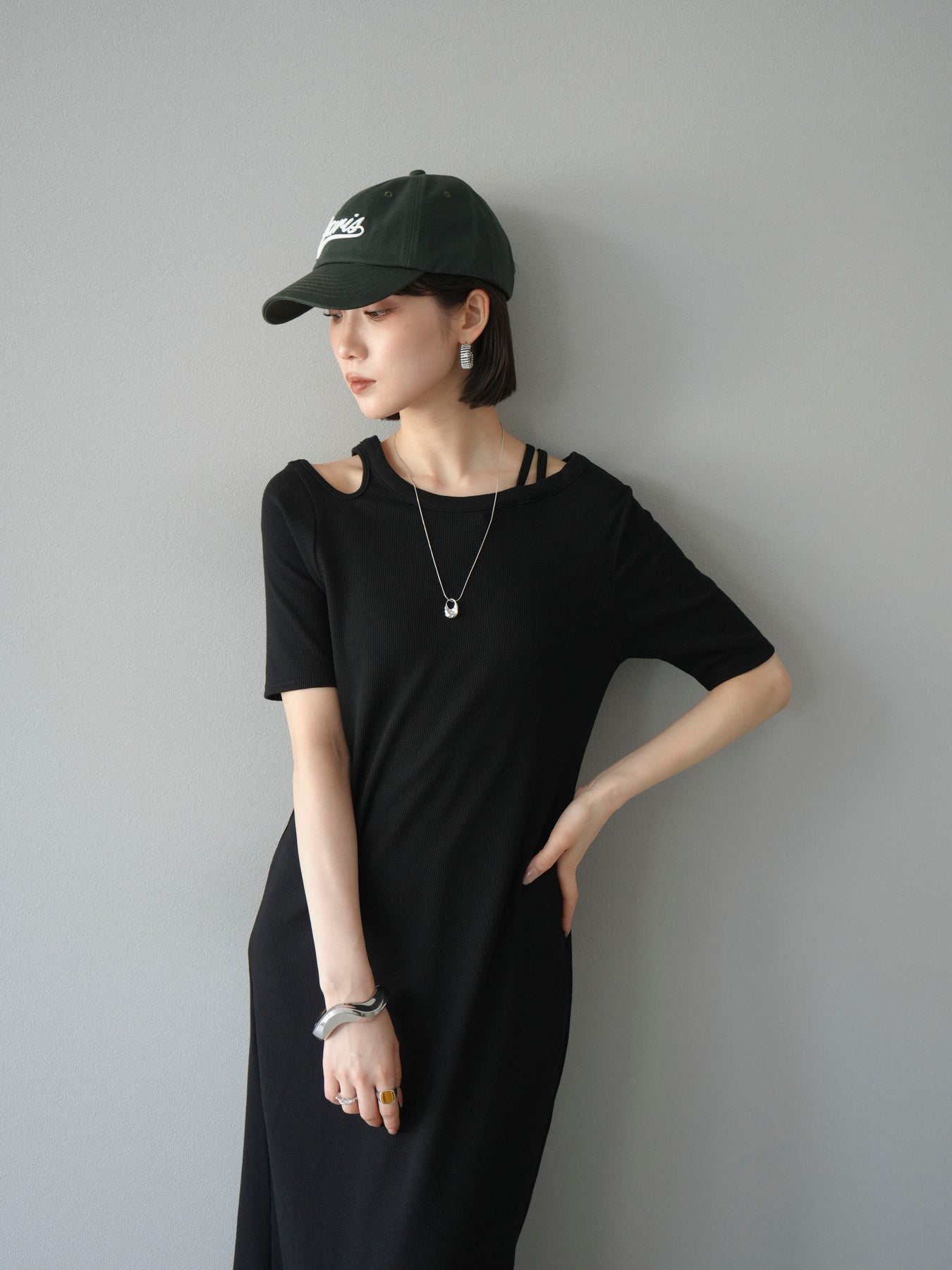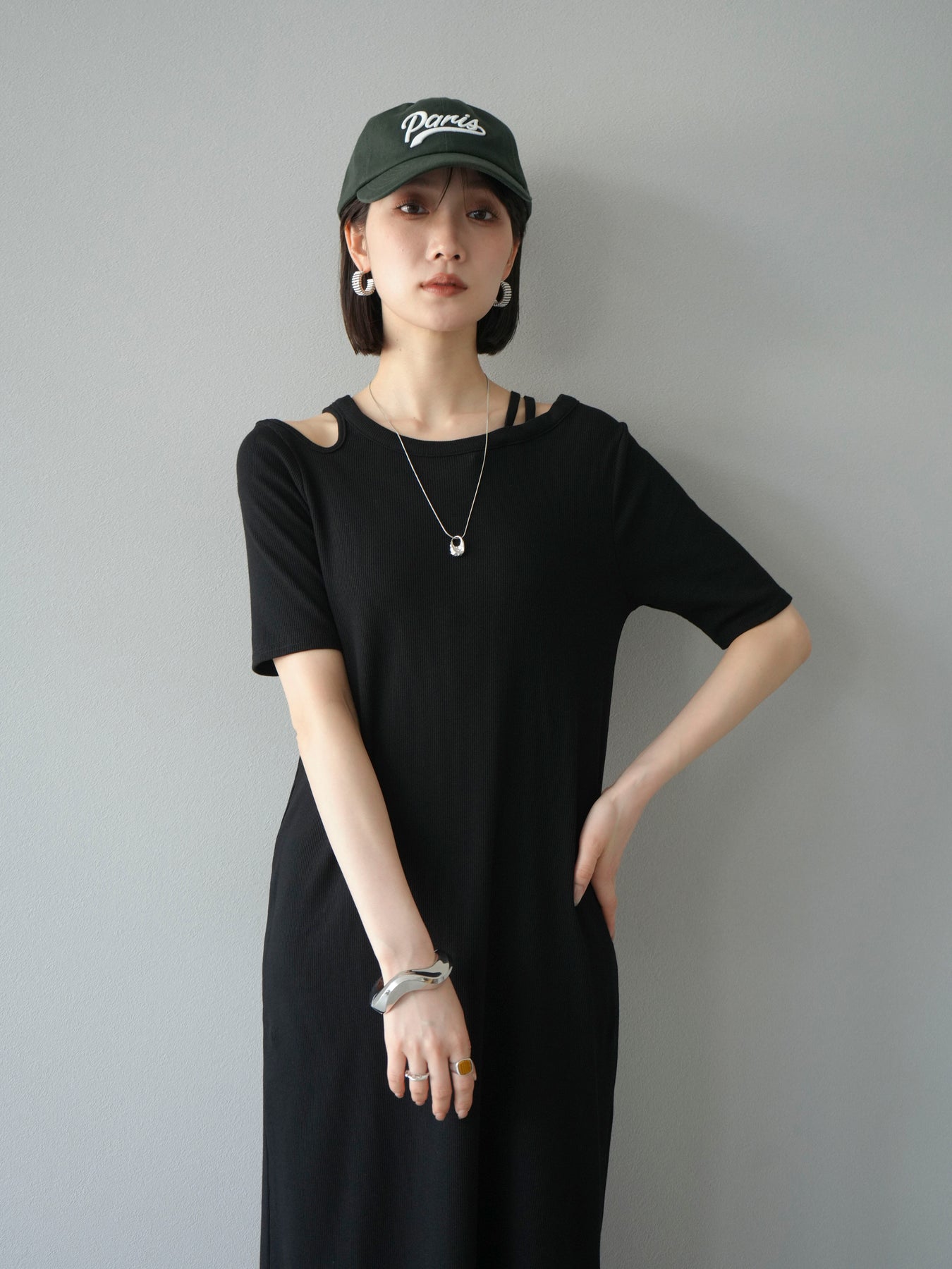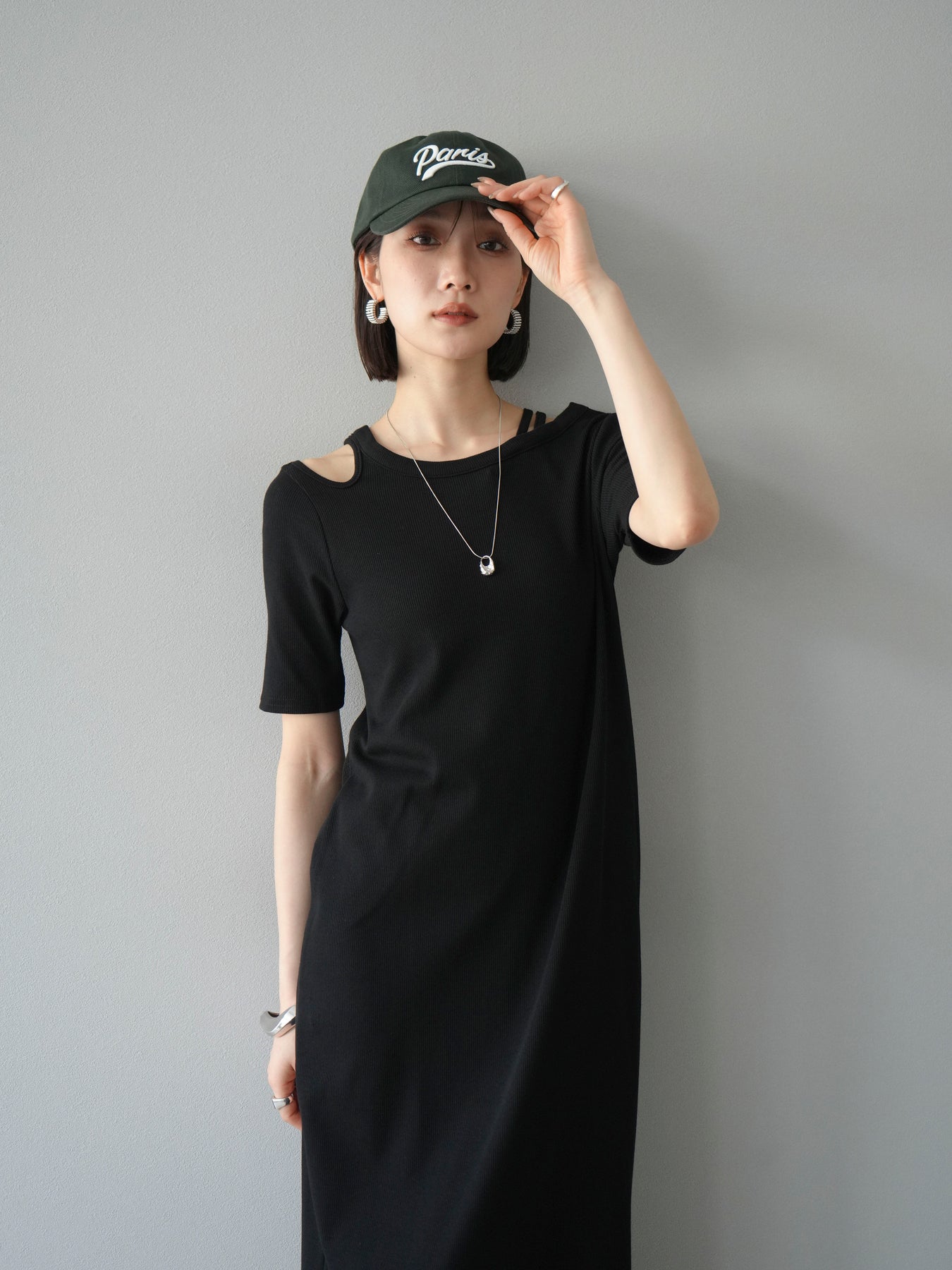 カットアウト×ストラップデザインが目を惹く、デザインネックカットリブワンピース。ベーシックなリブワンピースに、アシンメトリーなネックラインをプラスすることで、シンプルながらもひと癖ある印象に仕上げた1枚です。身体にフィットしすぎない程よいシルエットとストレッチの効いたカット素材で、着心地も快適。さらっと1枚で着るのはもちろん、シャツやジャケットを羽織ってもバランスよく決まる万能アイテム。デイリーからちょっとしたお出かけまで幅広く活躍します。 ※ボトムス、キャミソール(インナー)以外の商品は一律でインナーは付属していません。