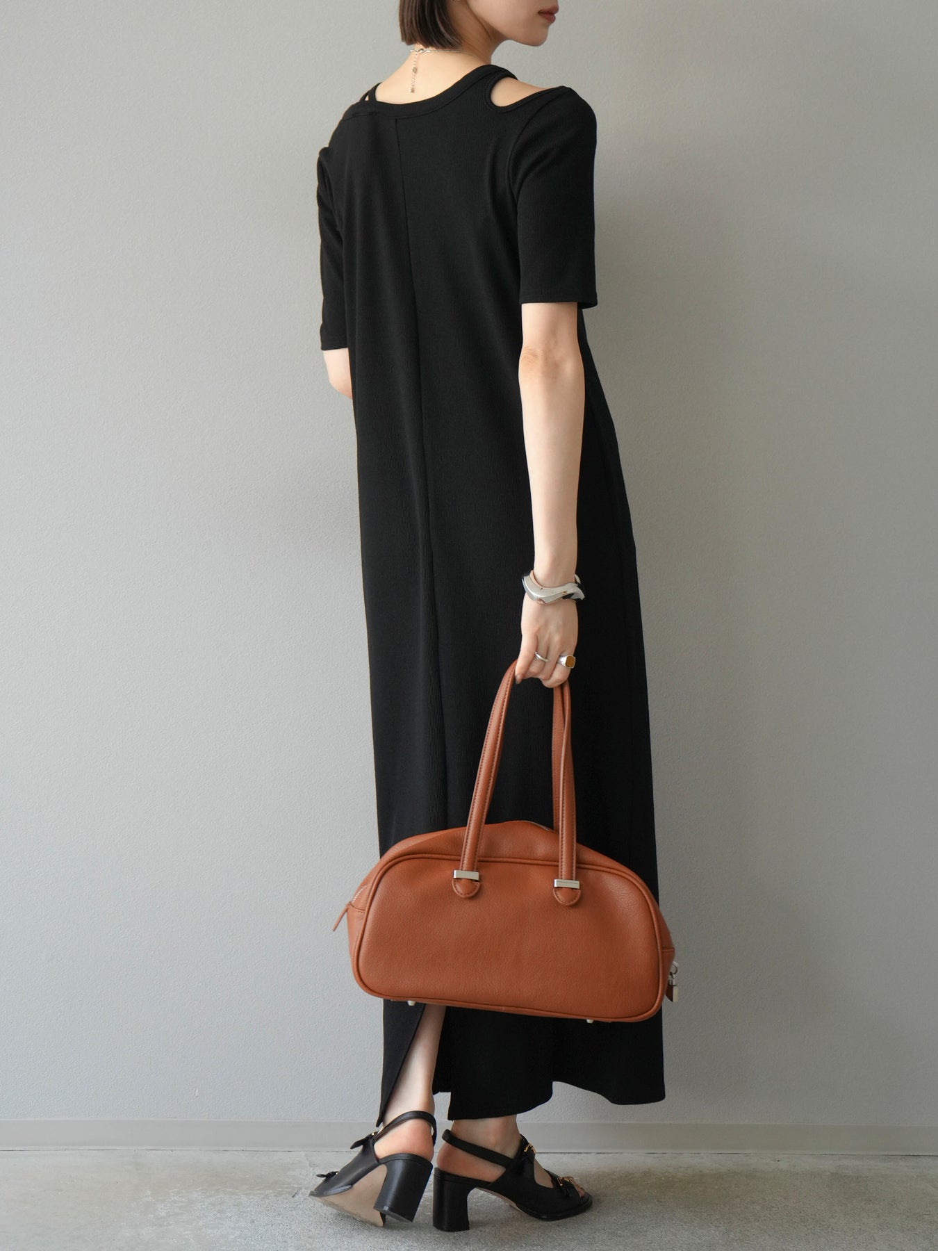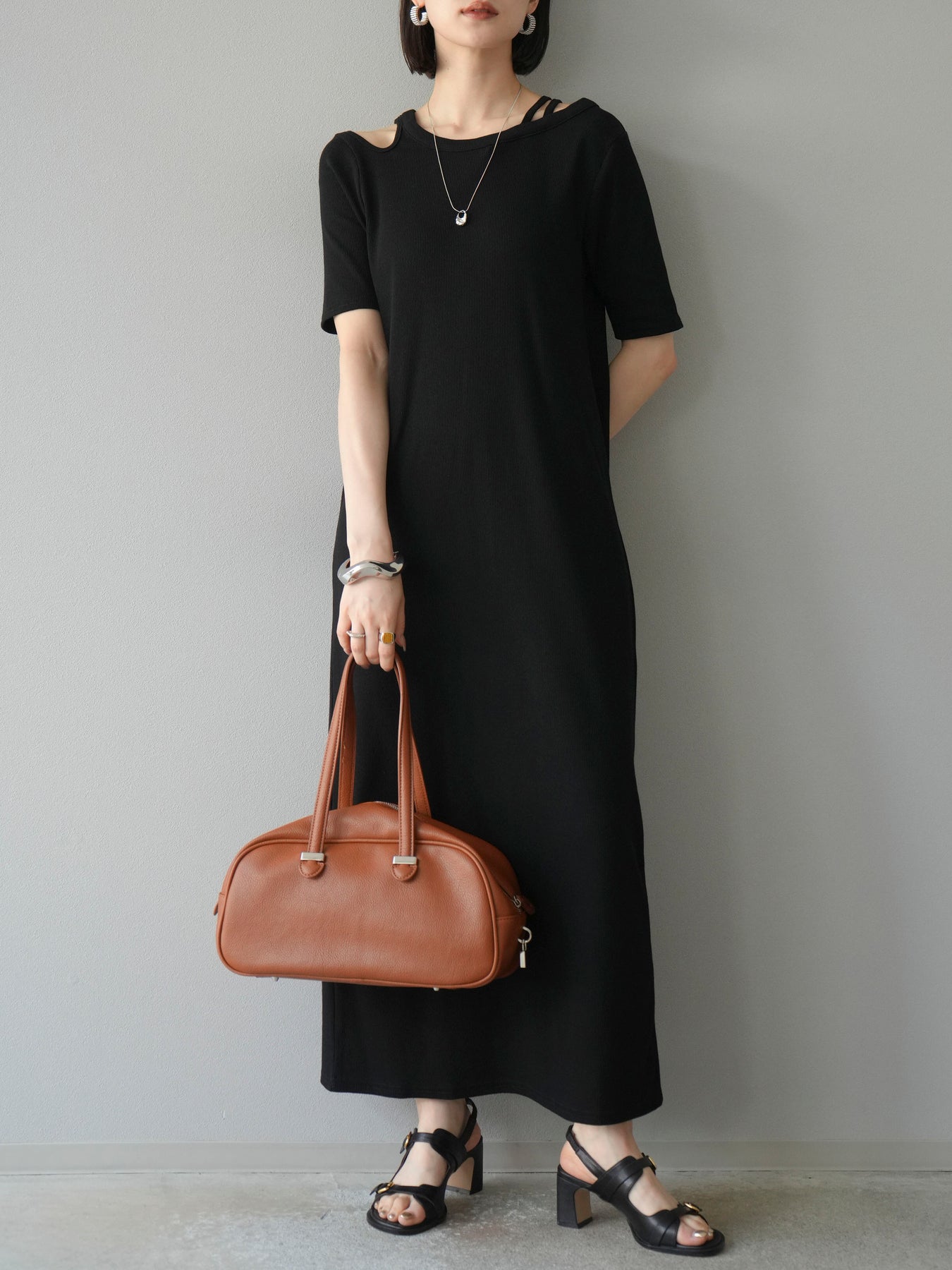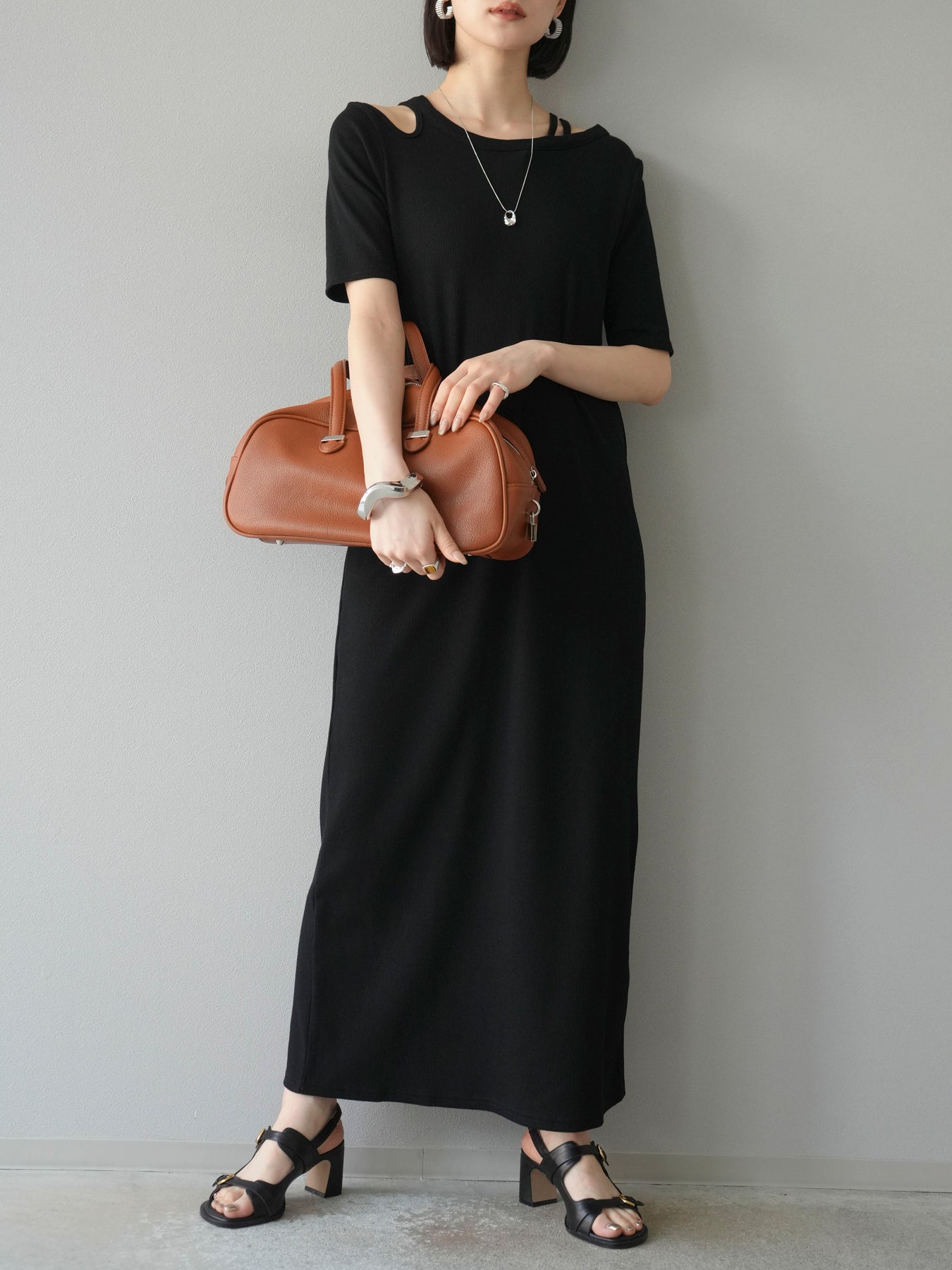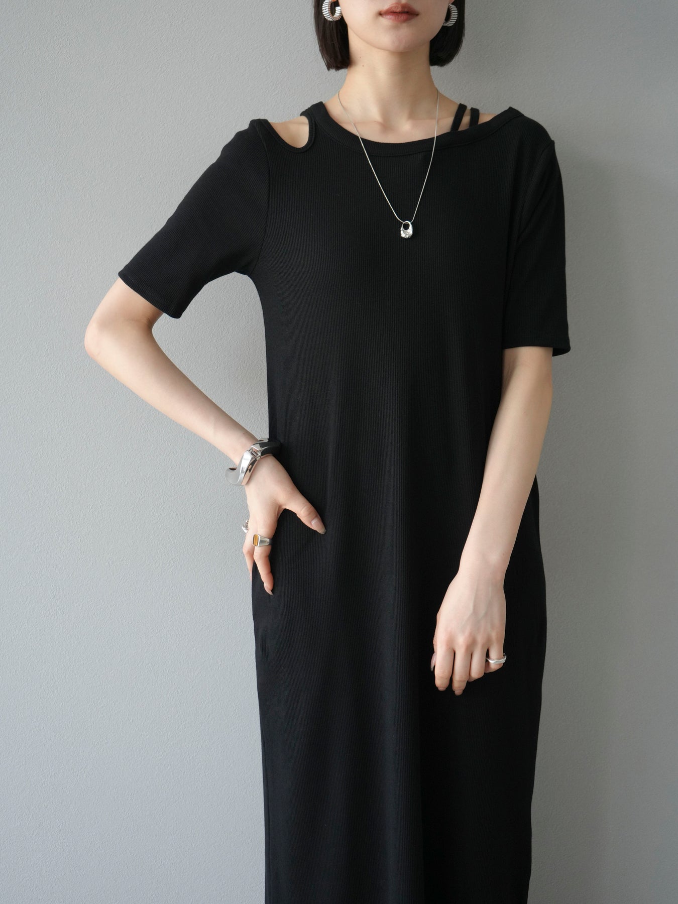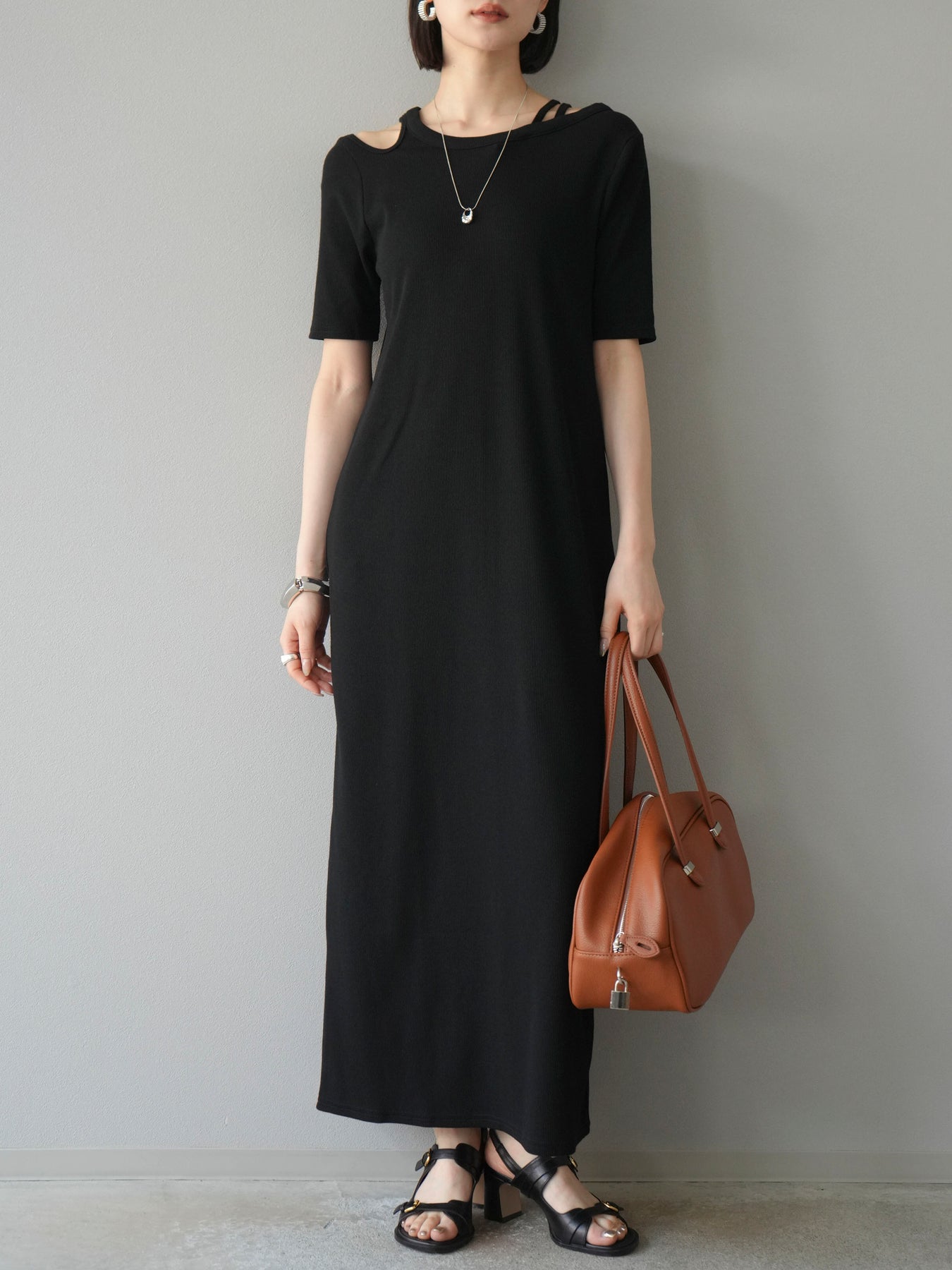 カットアウト×ストラップデザインが目を惹く、デザインネックカットリブワンピース。ベーシックなリブワンピースに、アシンメトリーなネックラインをプラスすることで、シンプルながらもひと癖ある印象に仕上げた1枚です。身体にフィットしすぎない程よいシルエットとストレッチの効いたカット素材で、着心地も快適。さらっと1枚で着るのはもちろん、シャツやジャケットを羽織ってもバランスよく決まる万能アイテム。デイリーからちょっとしたお出かけまで幅広く活躍します。 ※ボトムス、キャミソール(インナー)以外の商品は一律でインナーは付属していません。