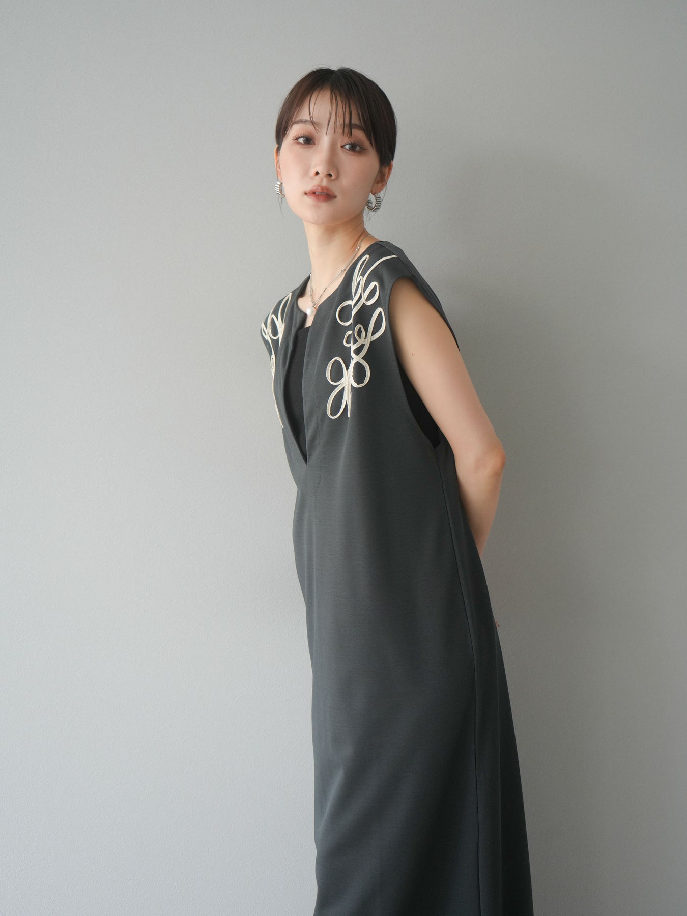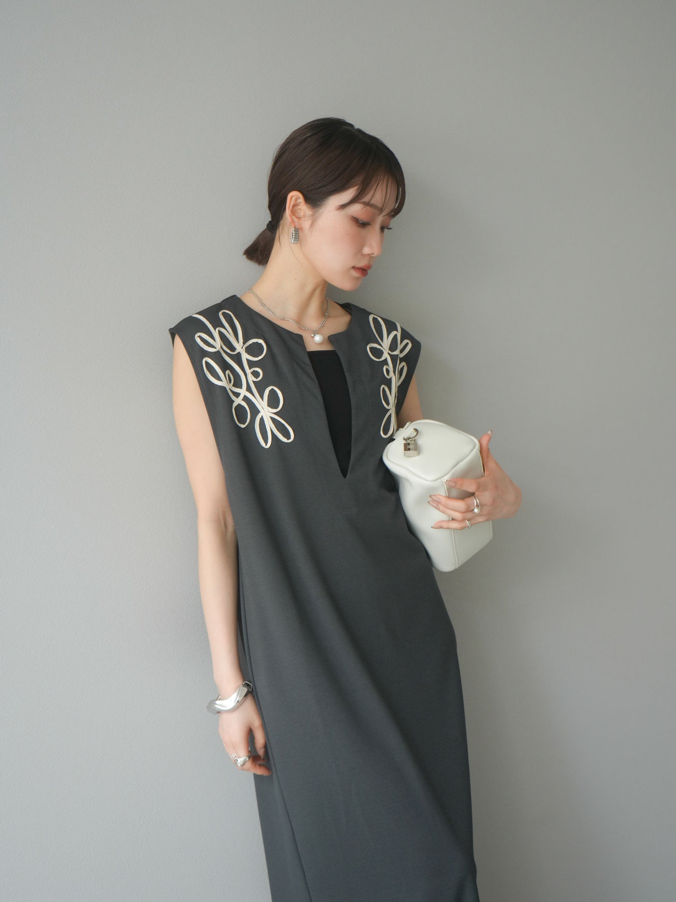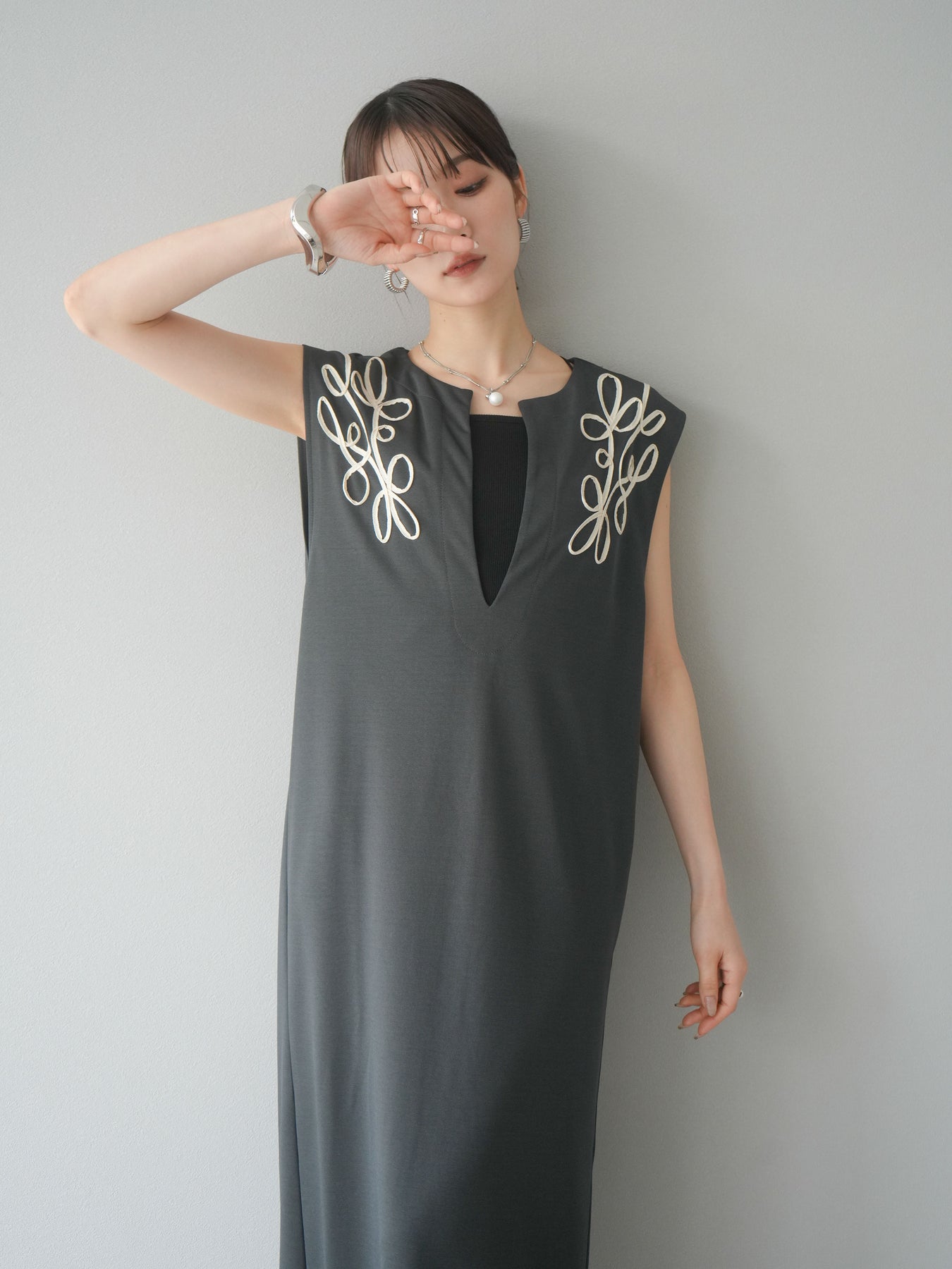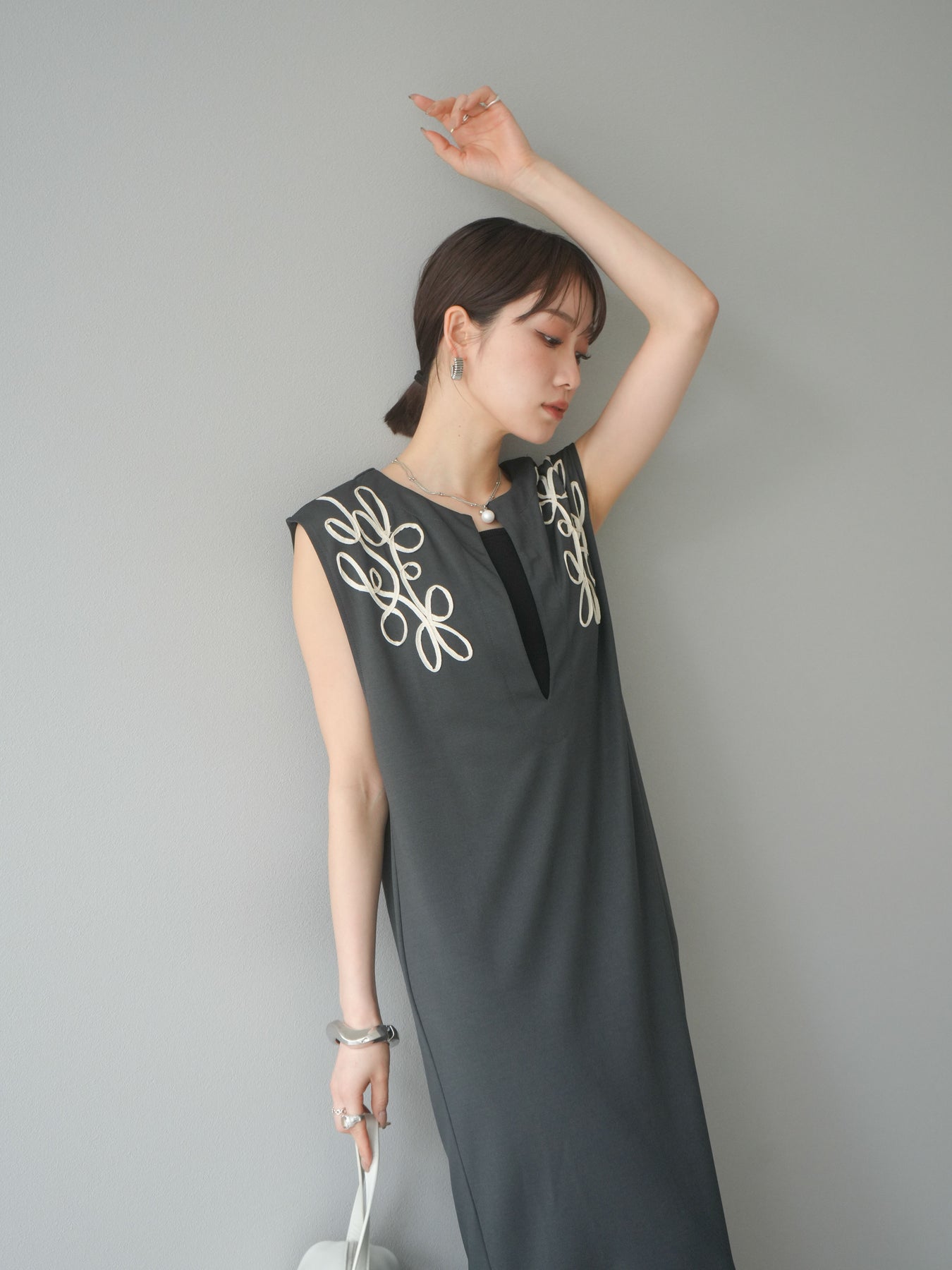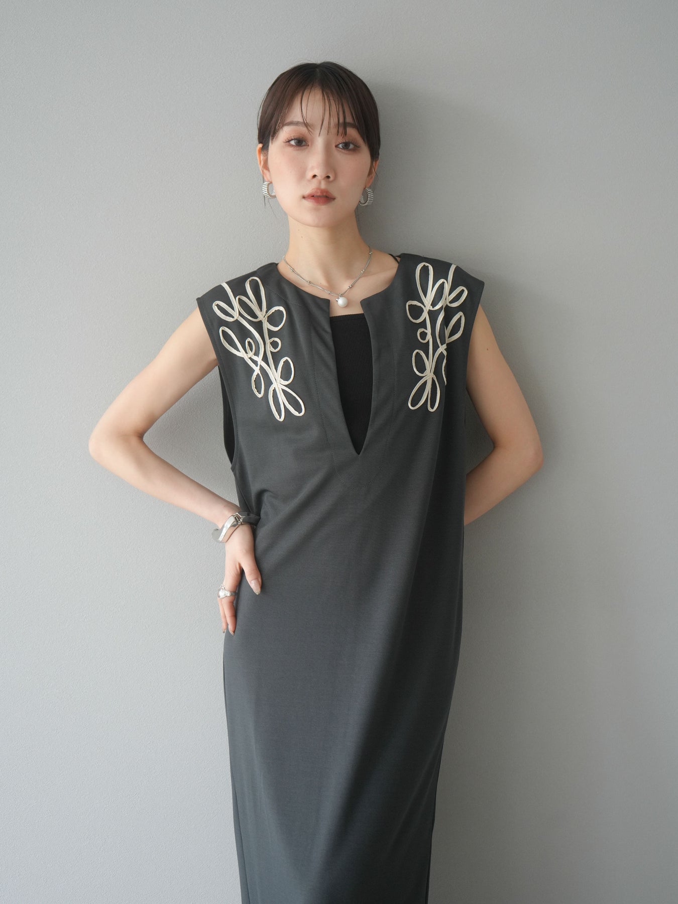 [予約]ライトポンチコード刺繍ワンピース/チャコール