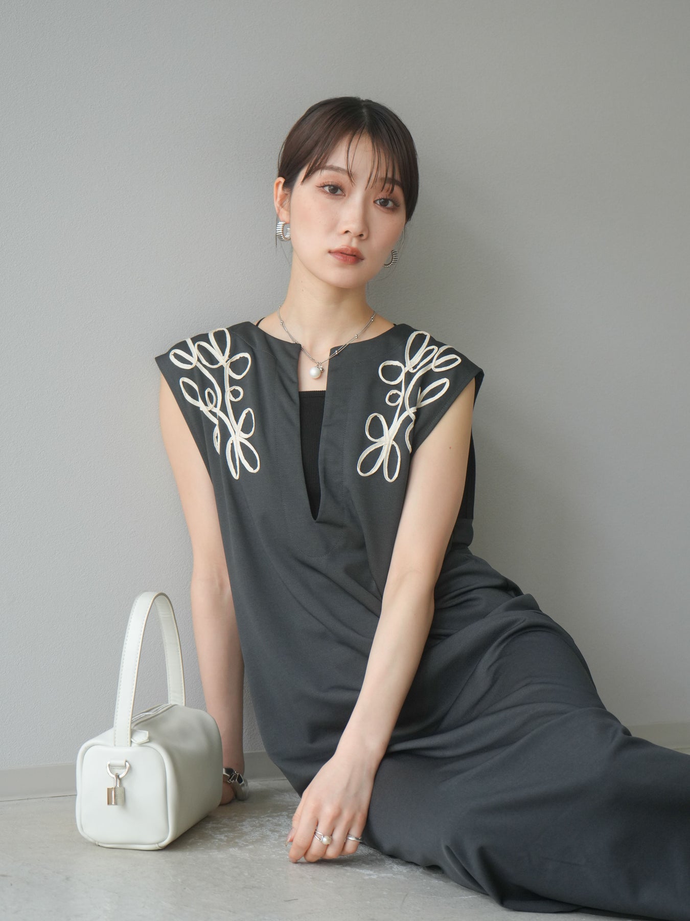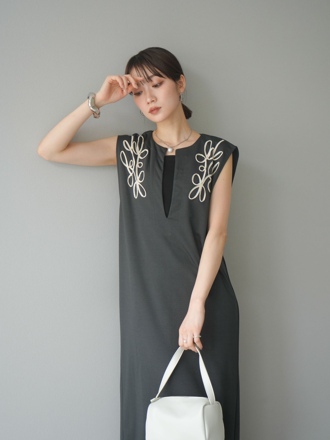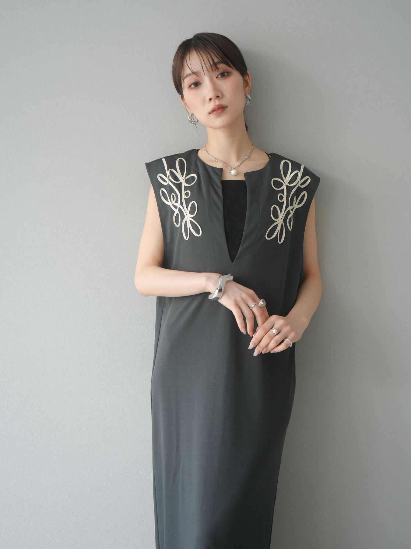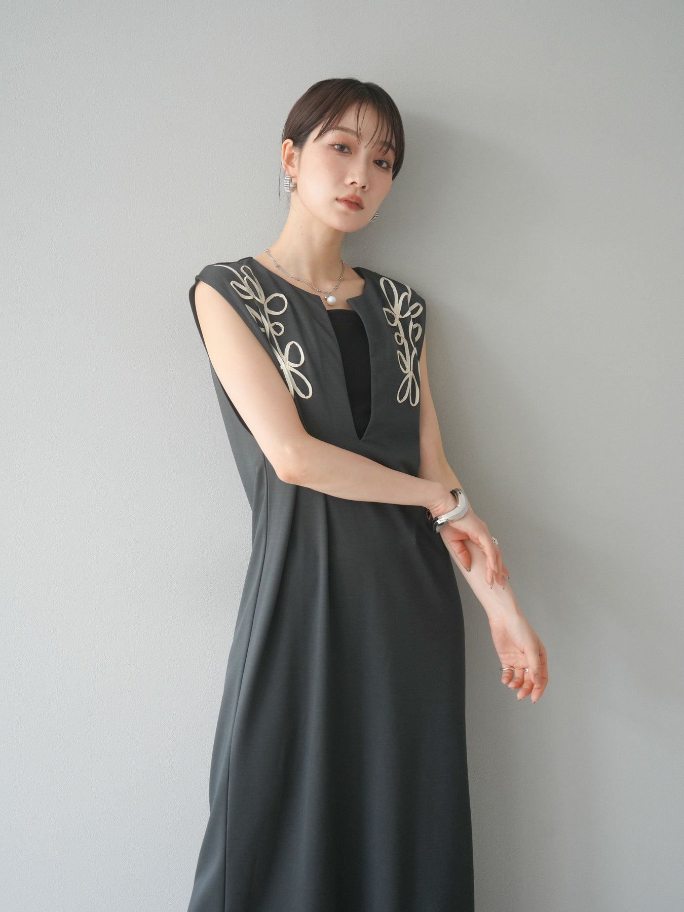 [予約]ライトポンチコード刺繍ワンピース/チャコール