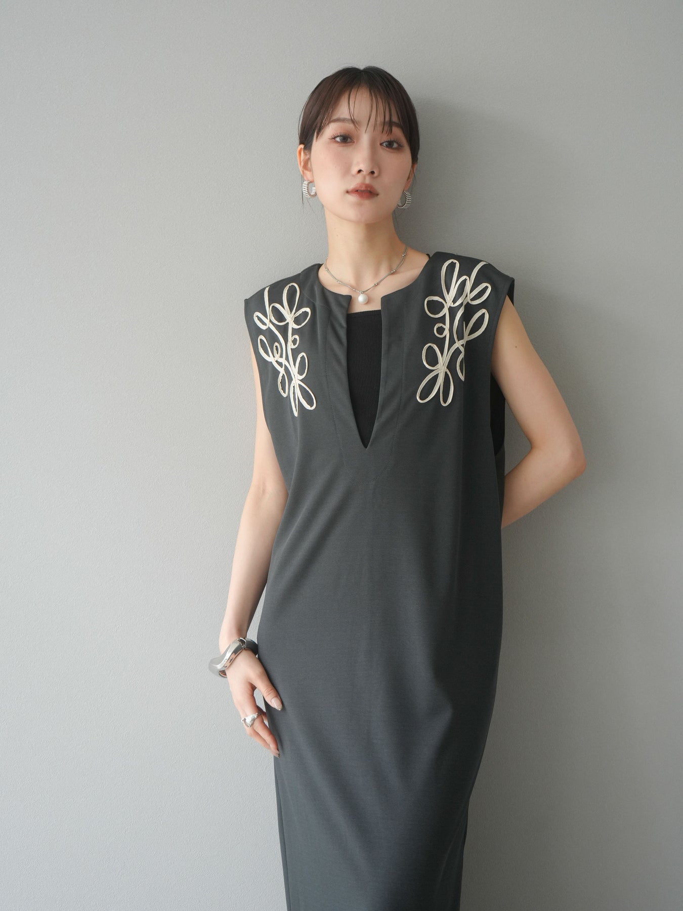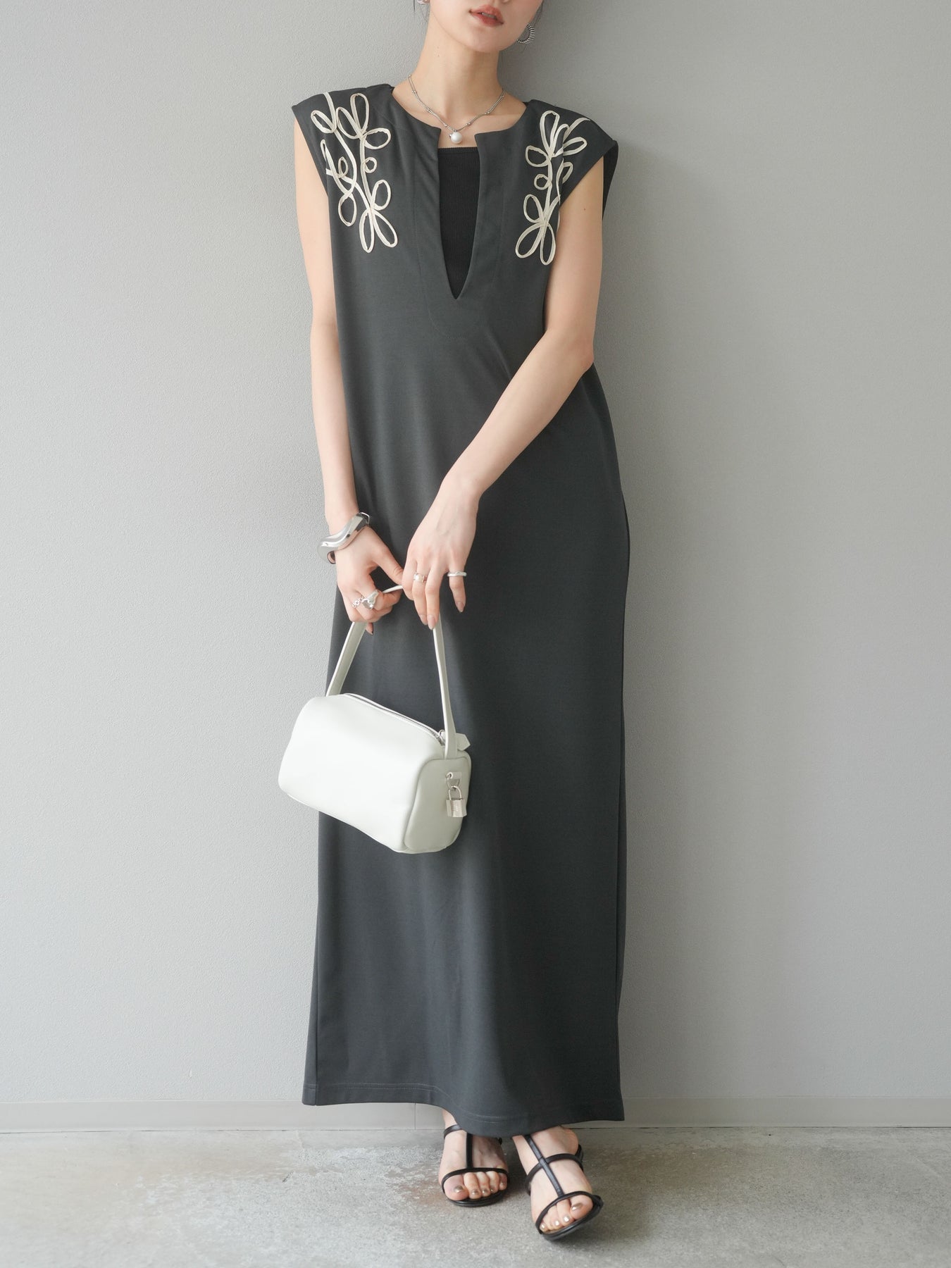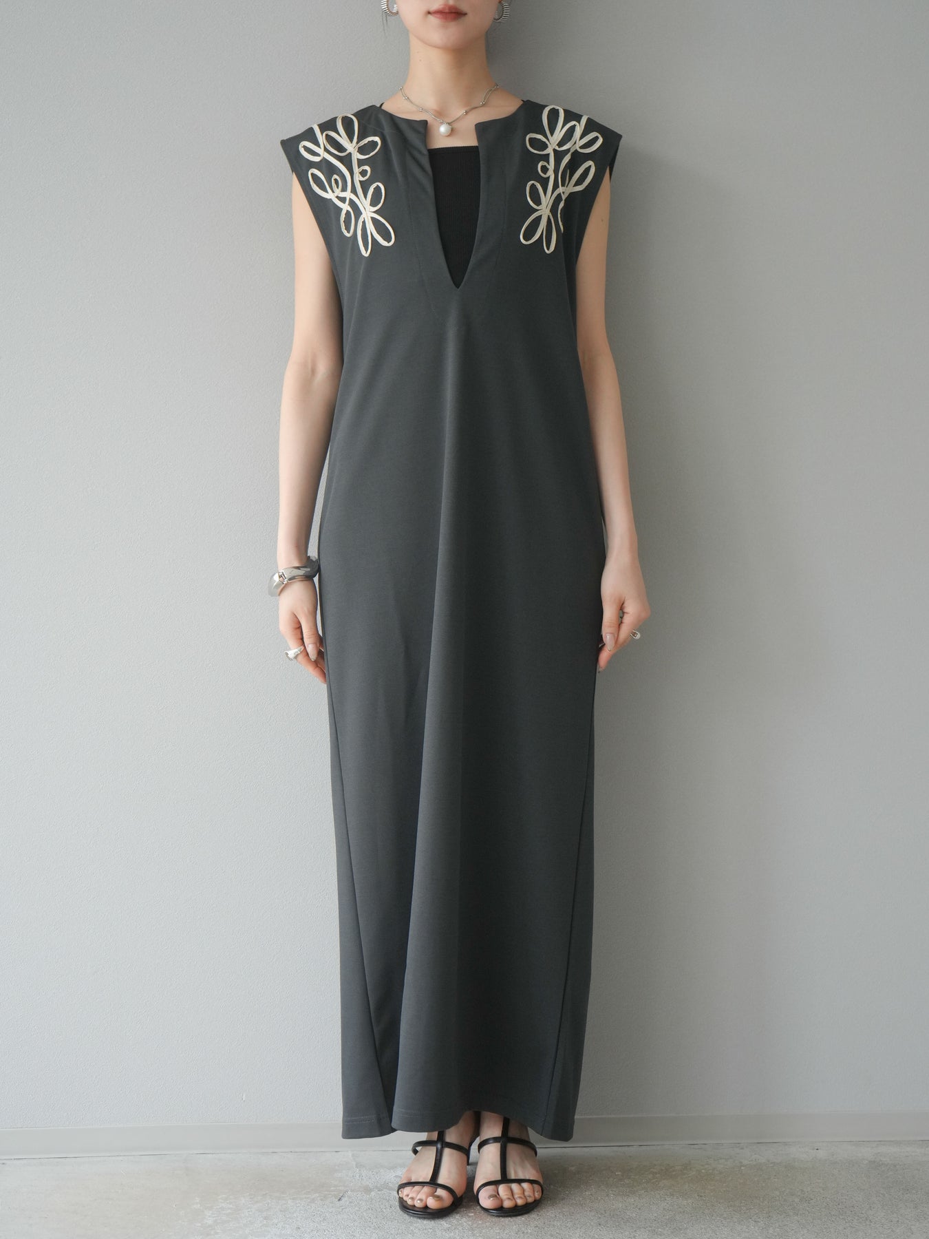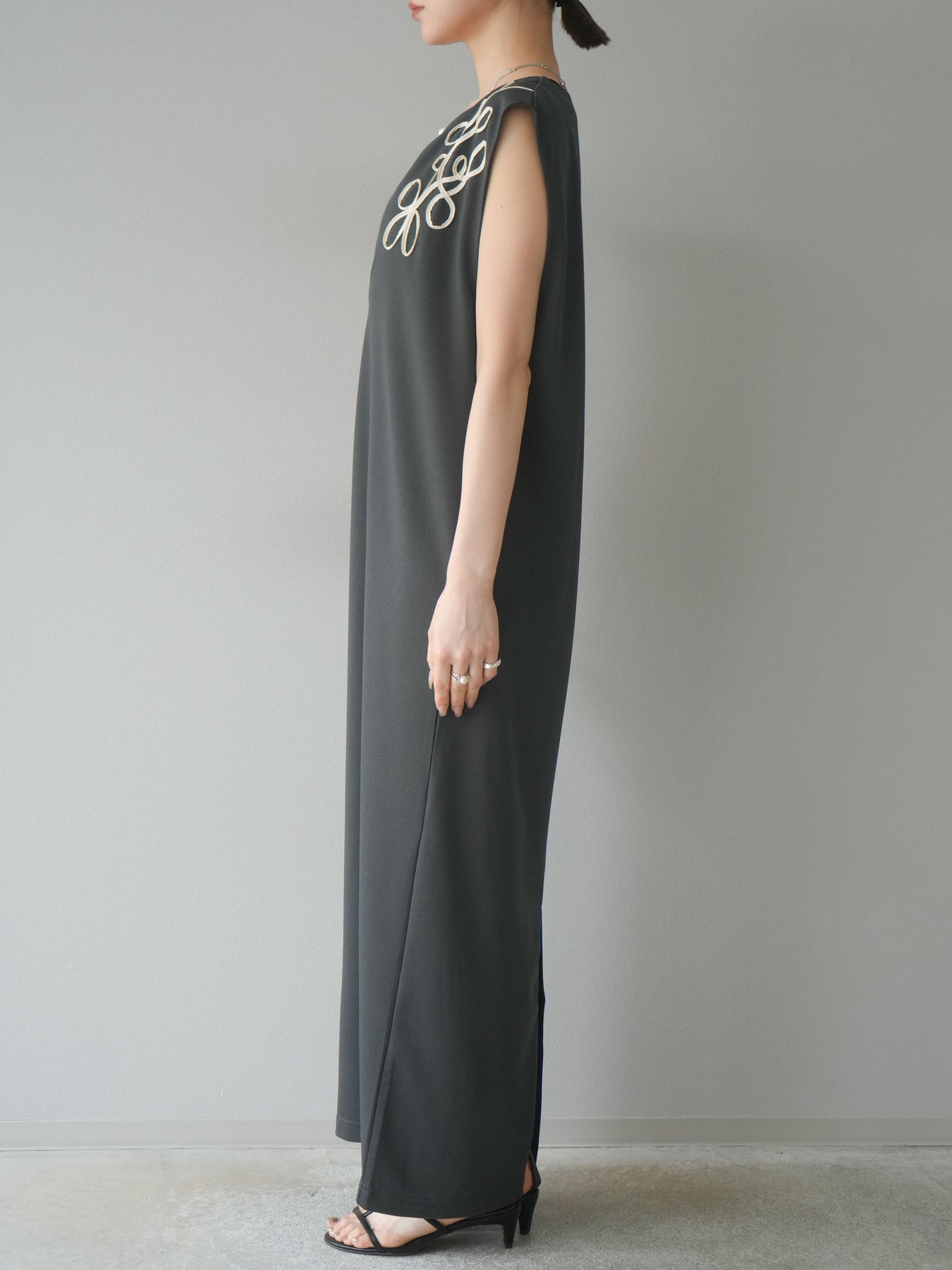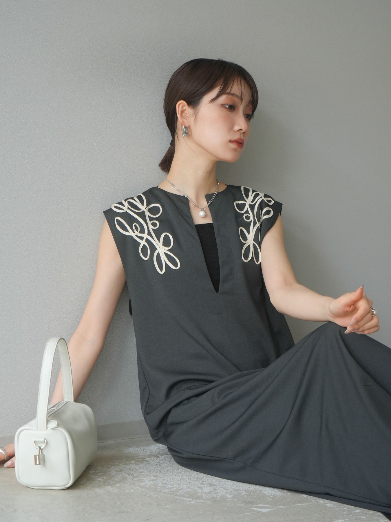 [予約]ライトポンチコード刺繍ワンピース/チャコール