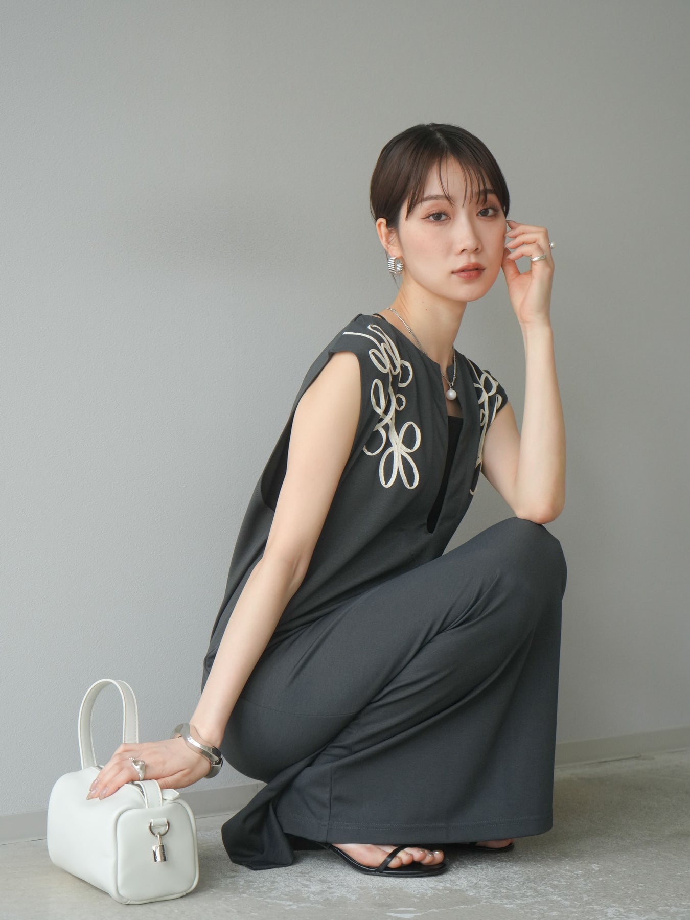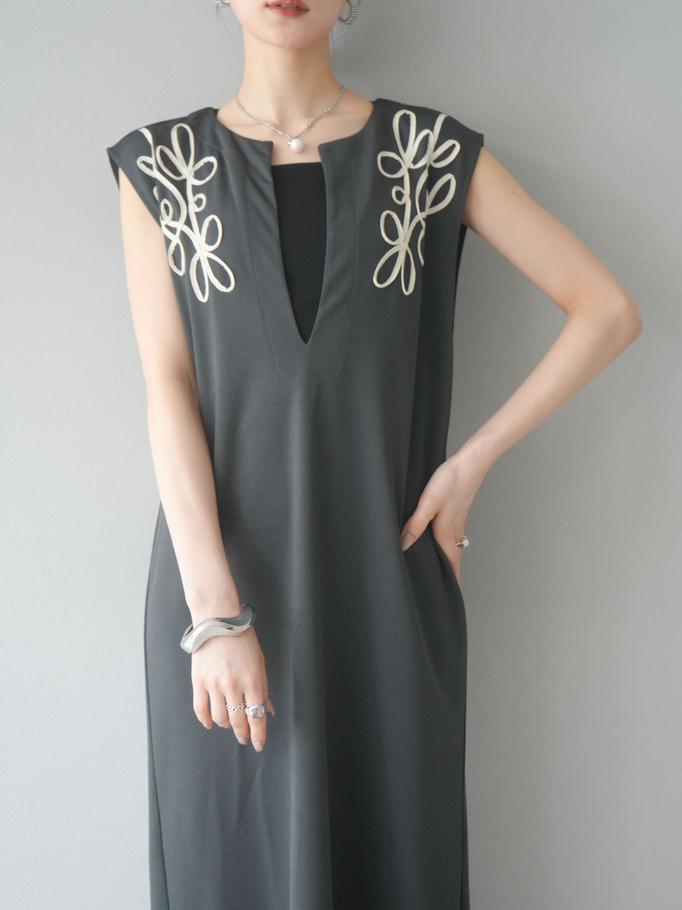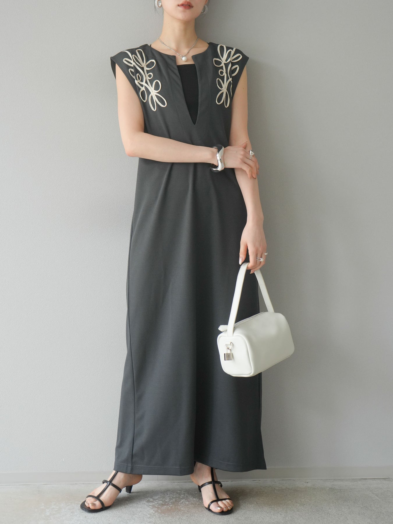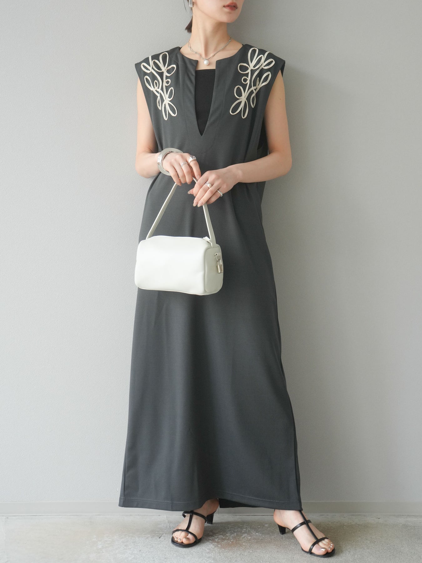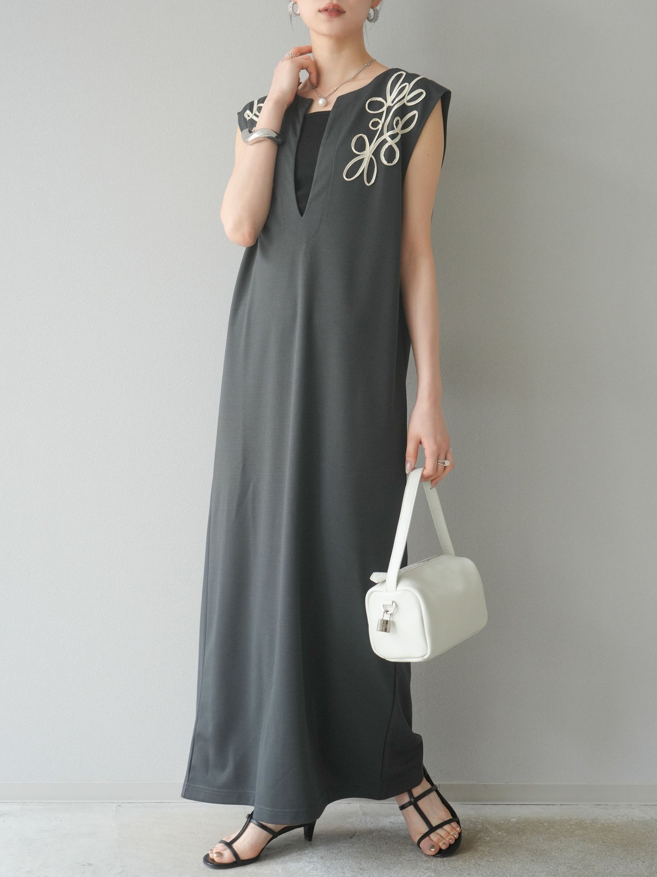 [予約]ライトポンチコード刺繍ワンピース/チャコール