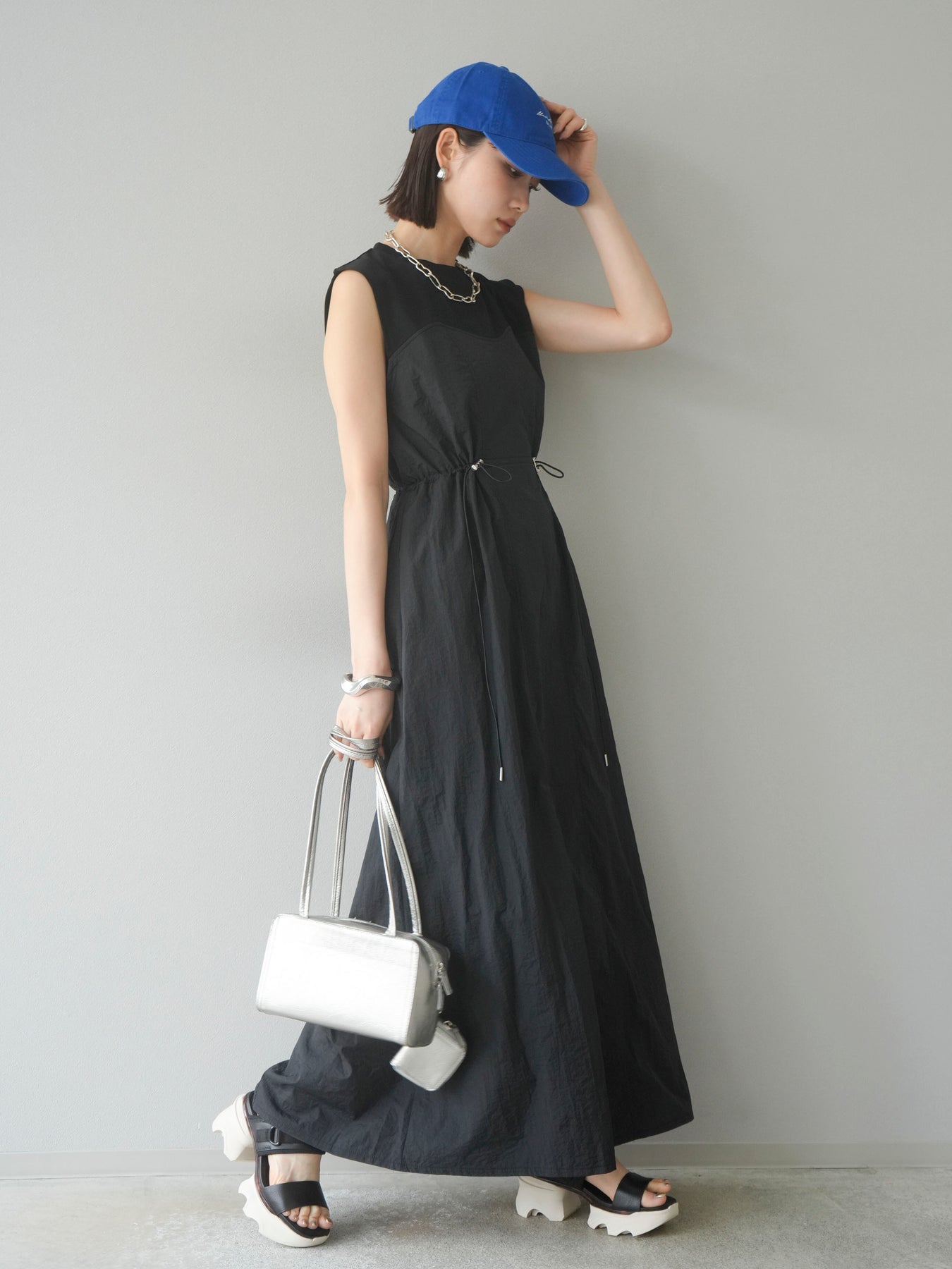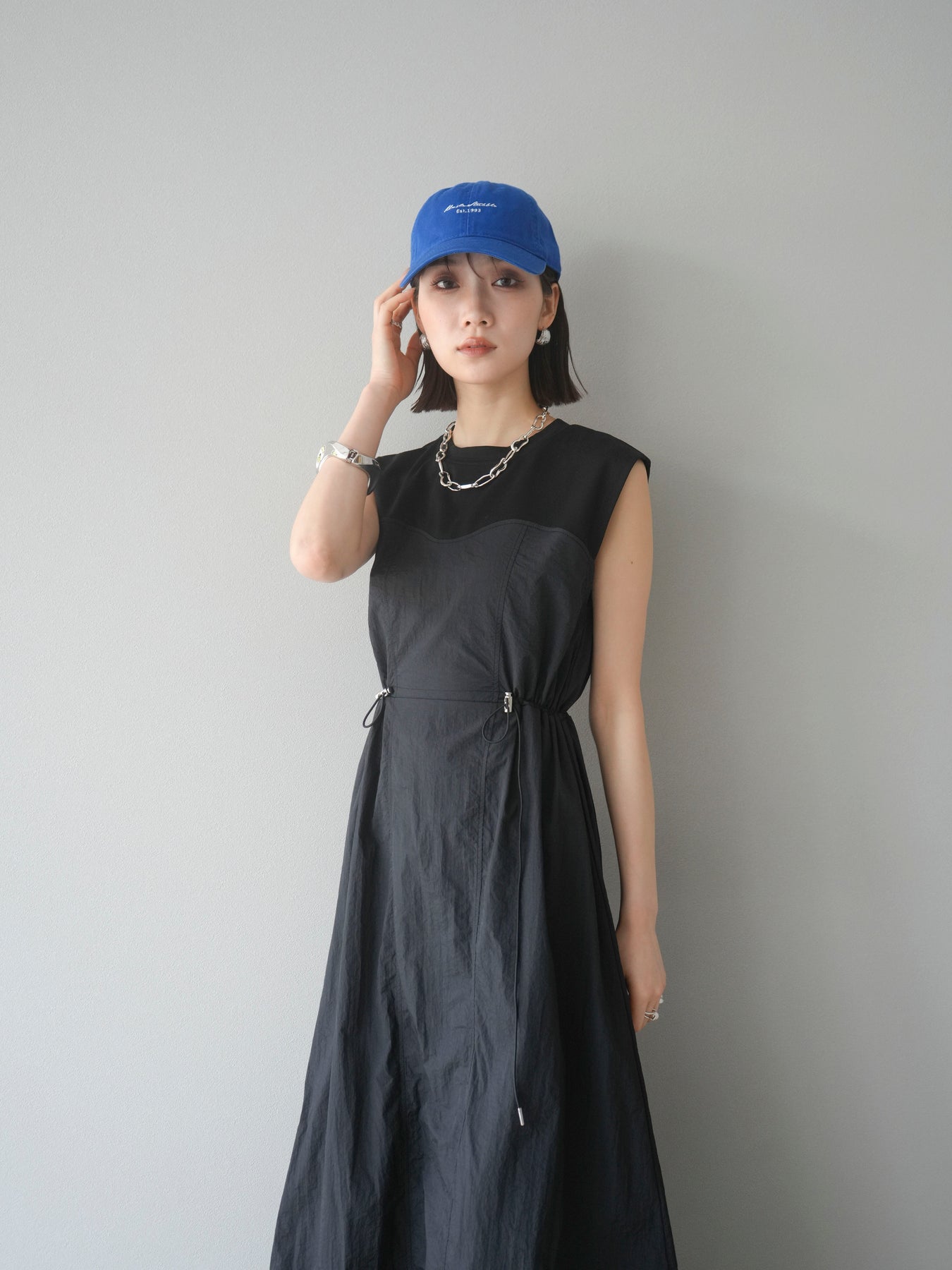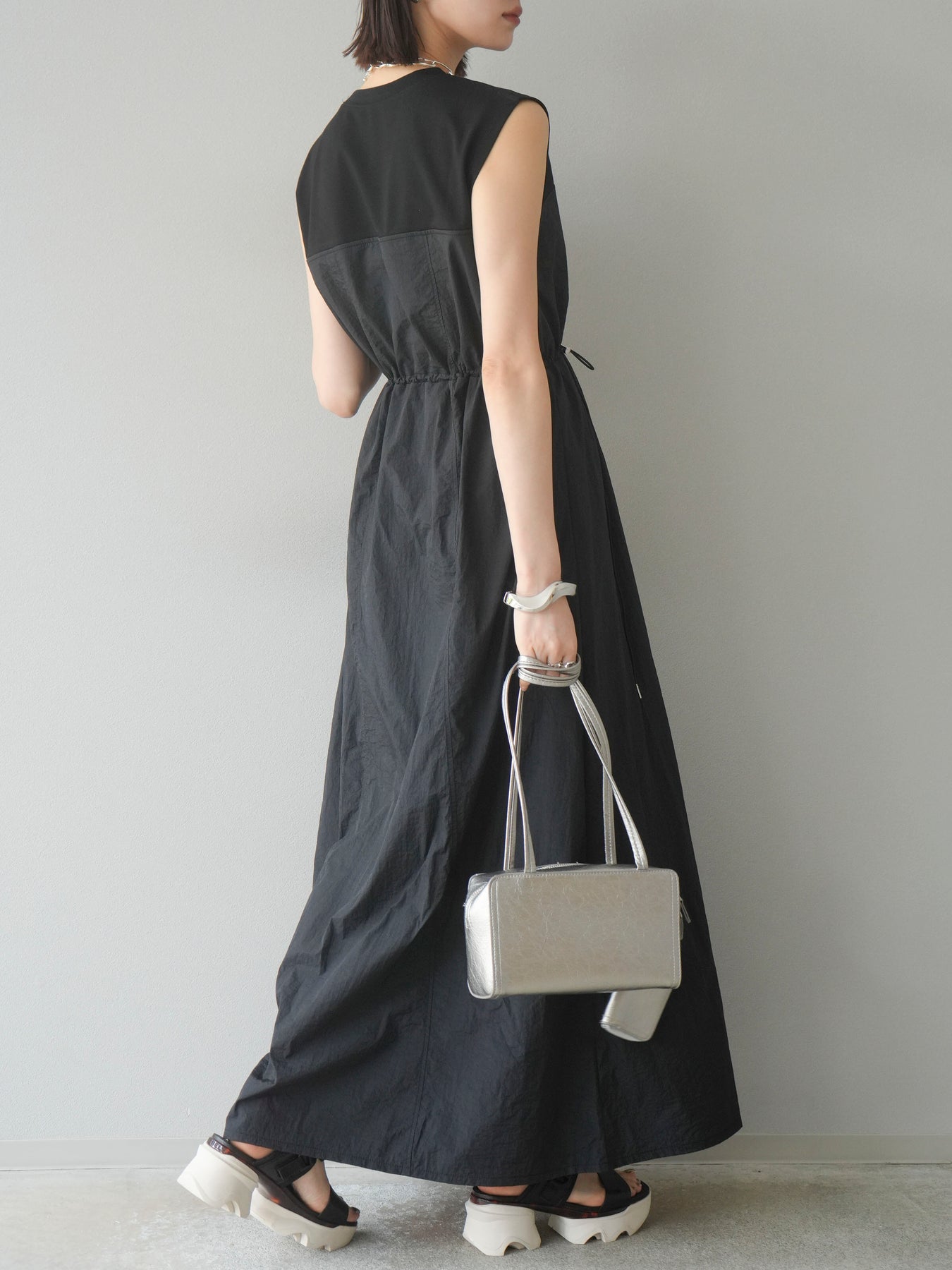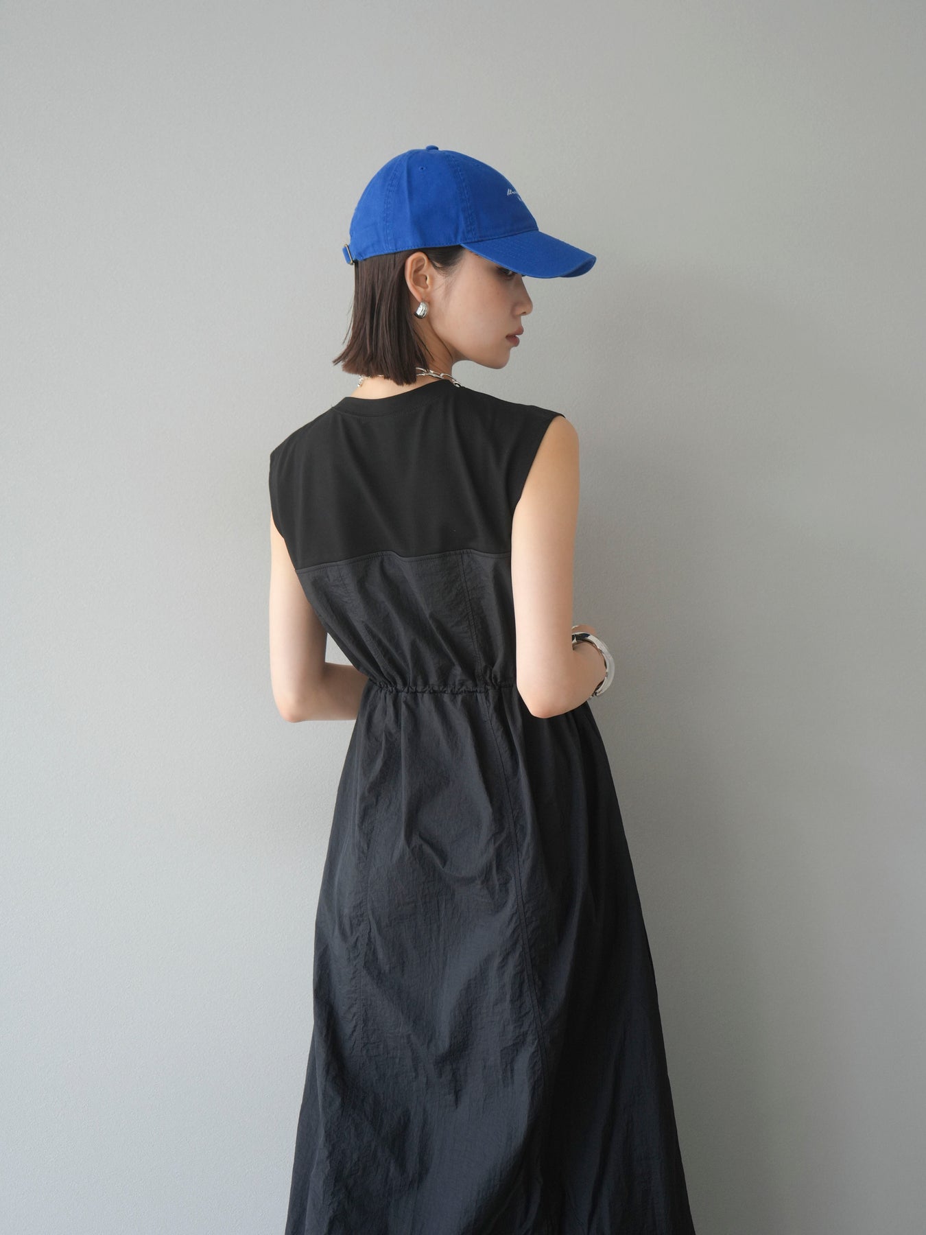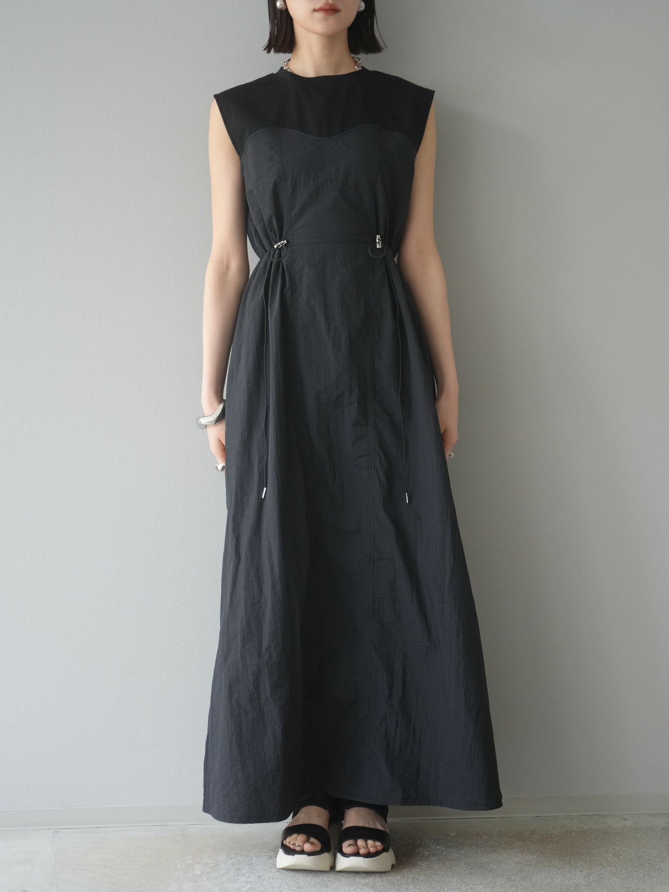 [予約]カットドッキングナイロンワンピース/ブラック