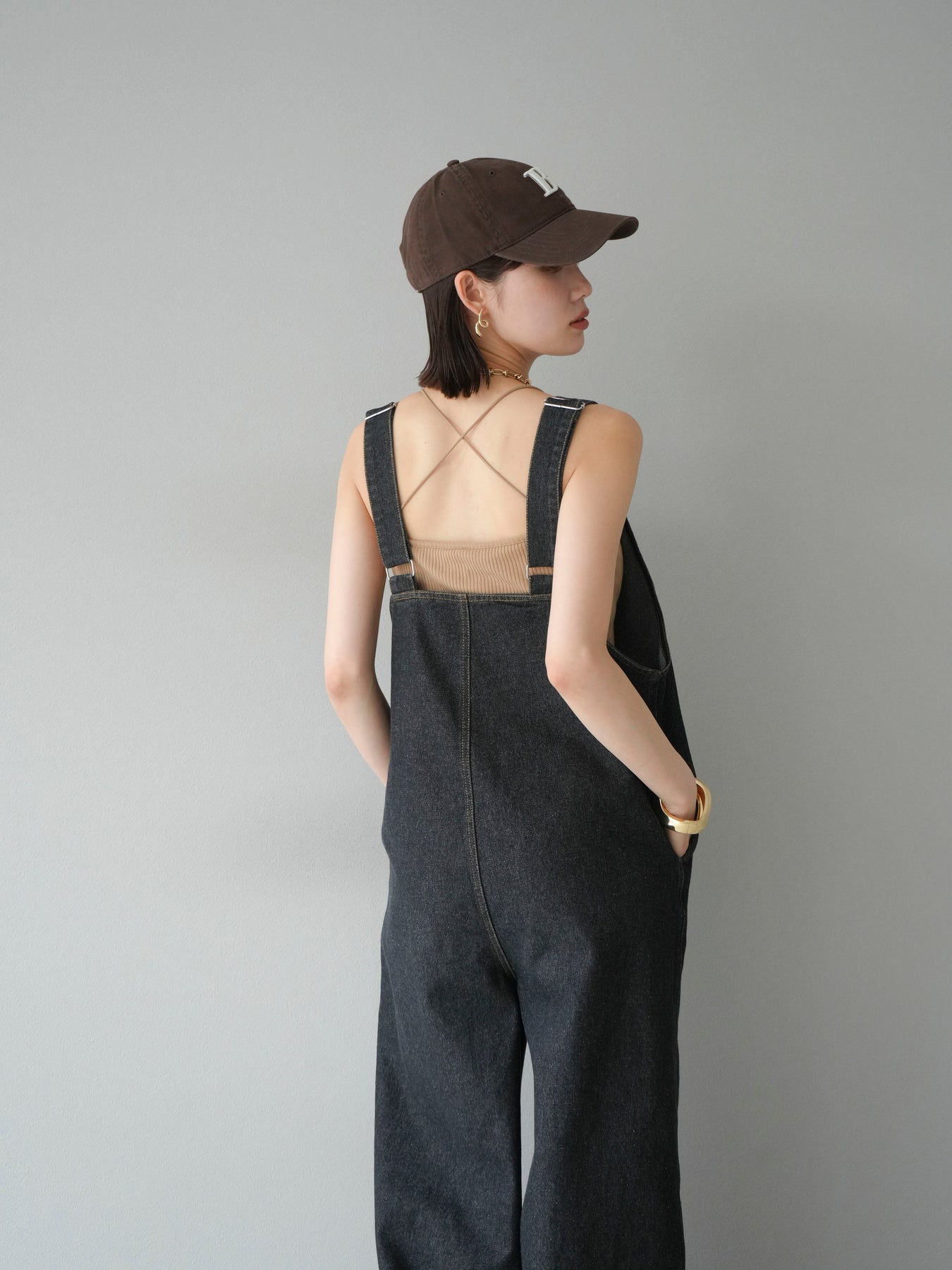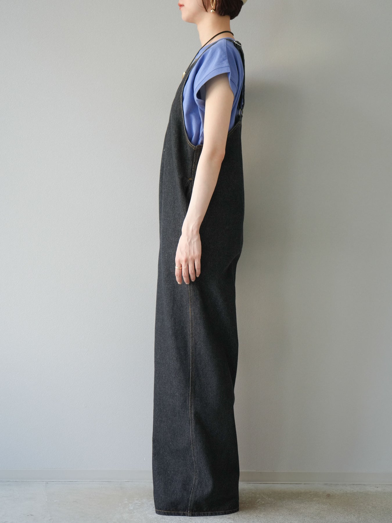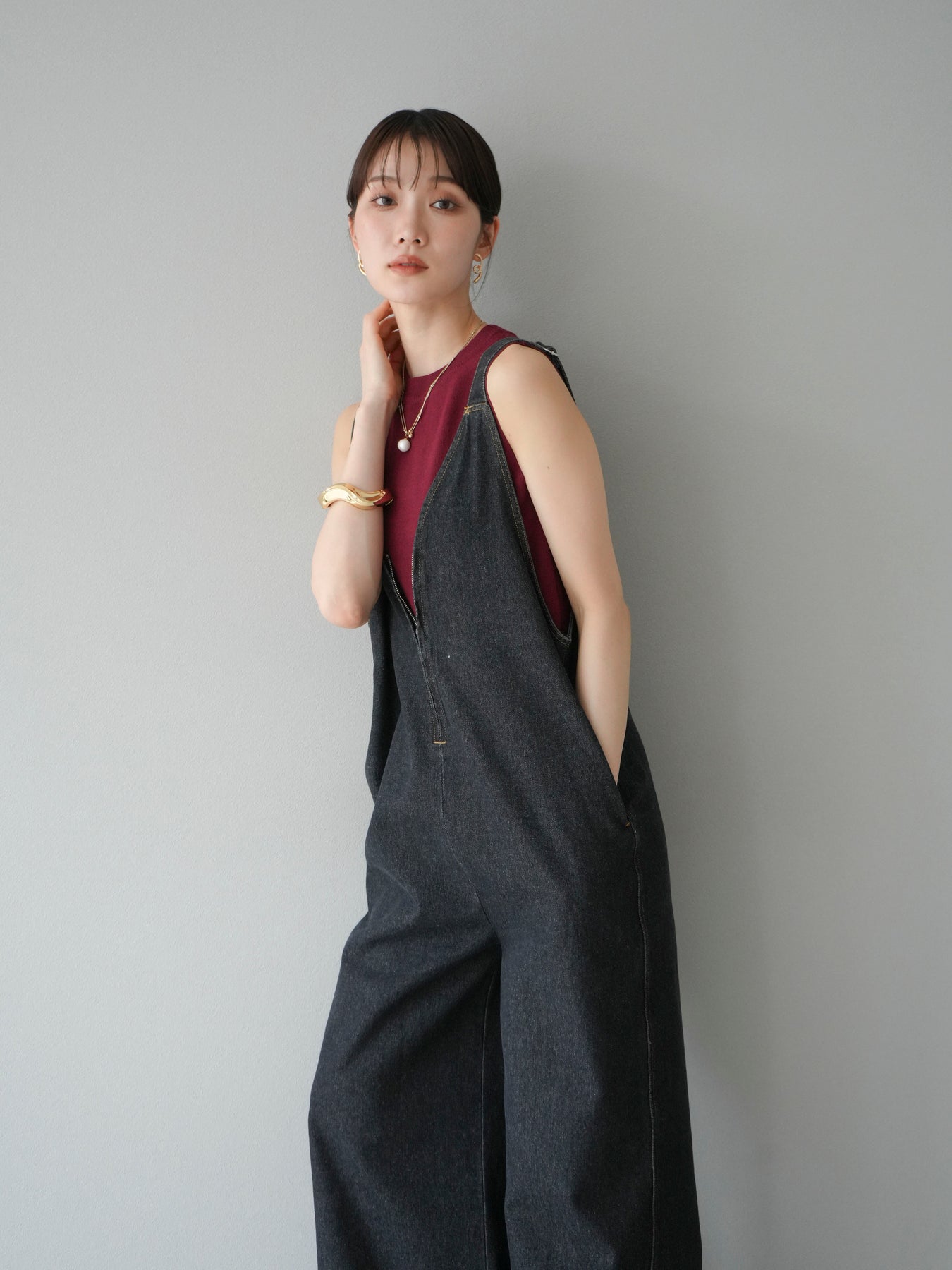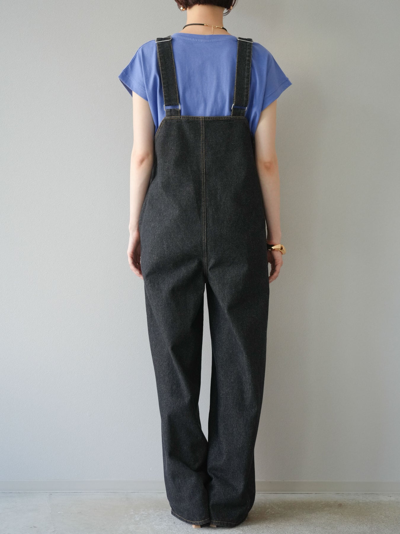 [予約]フロントZIP Vネックデニムサロペット/ブラック