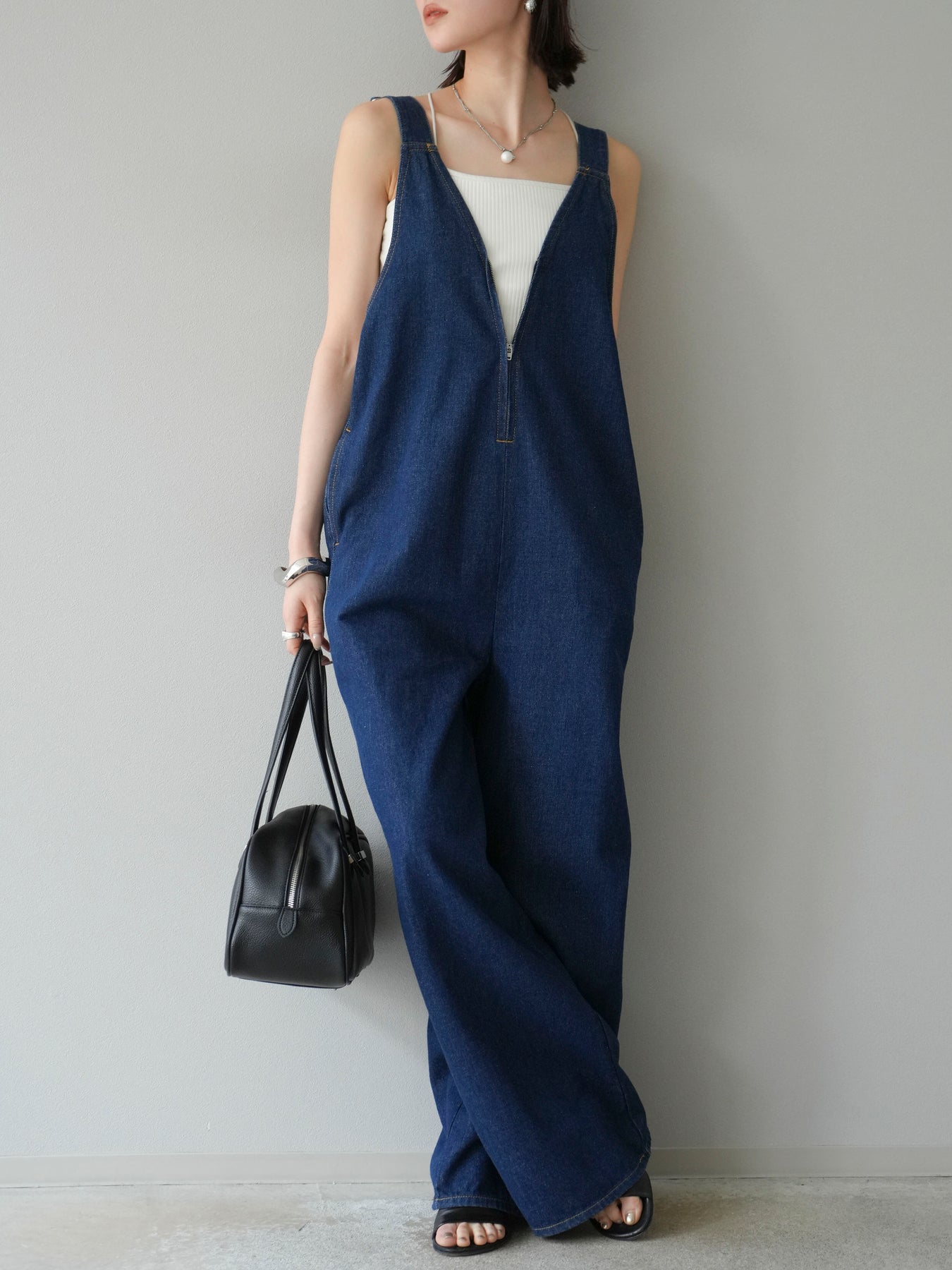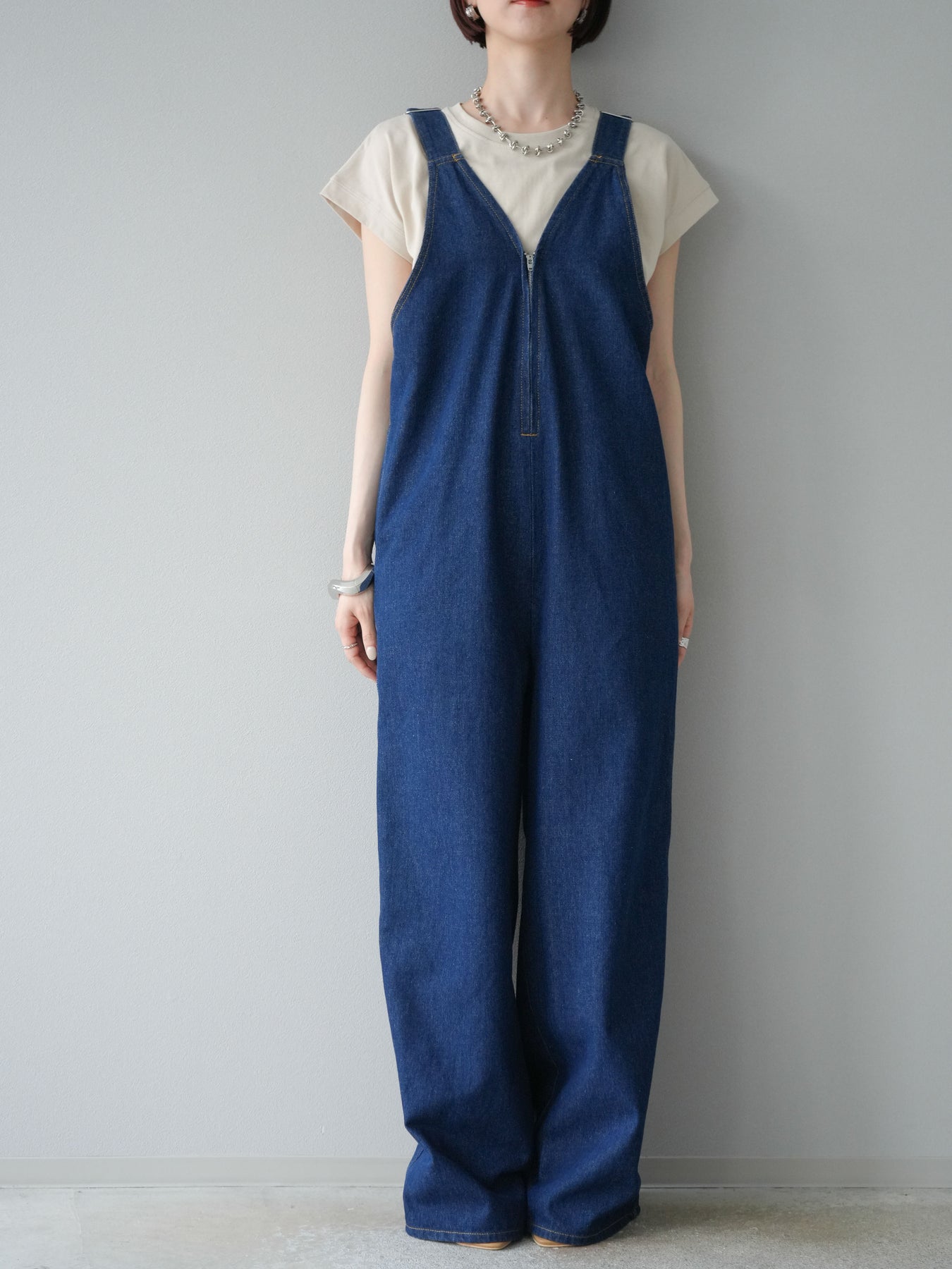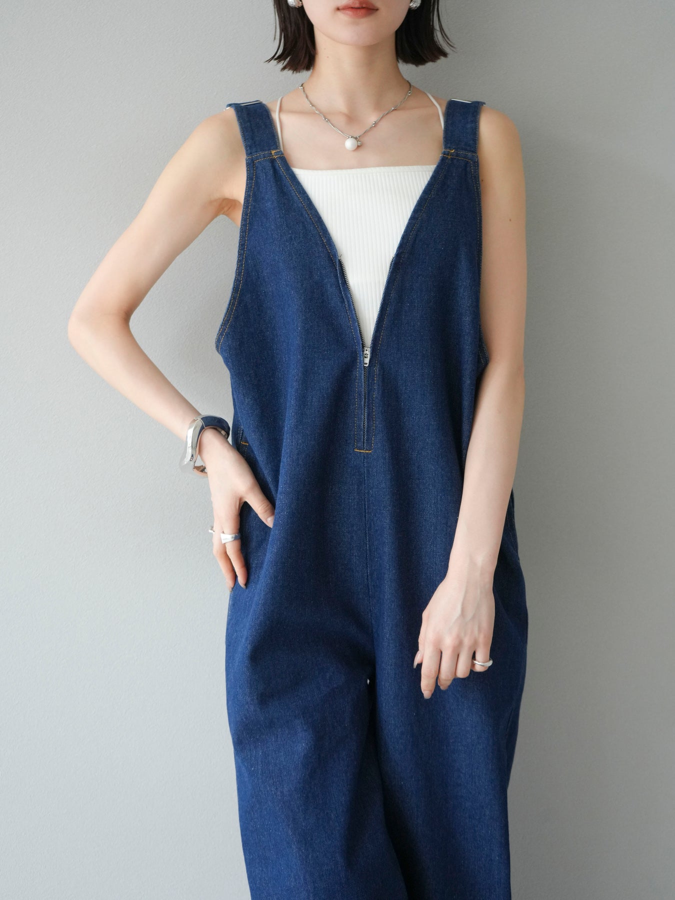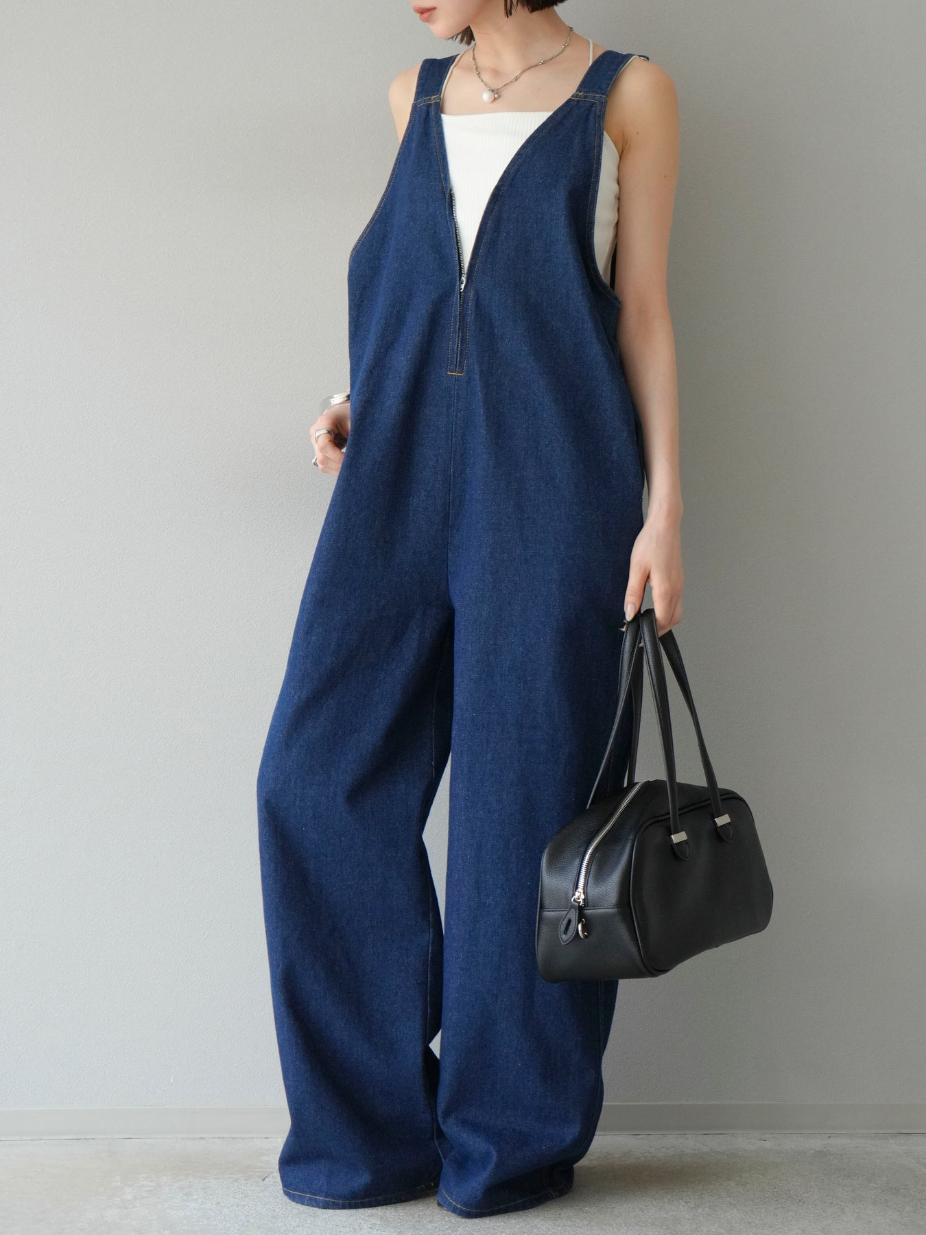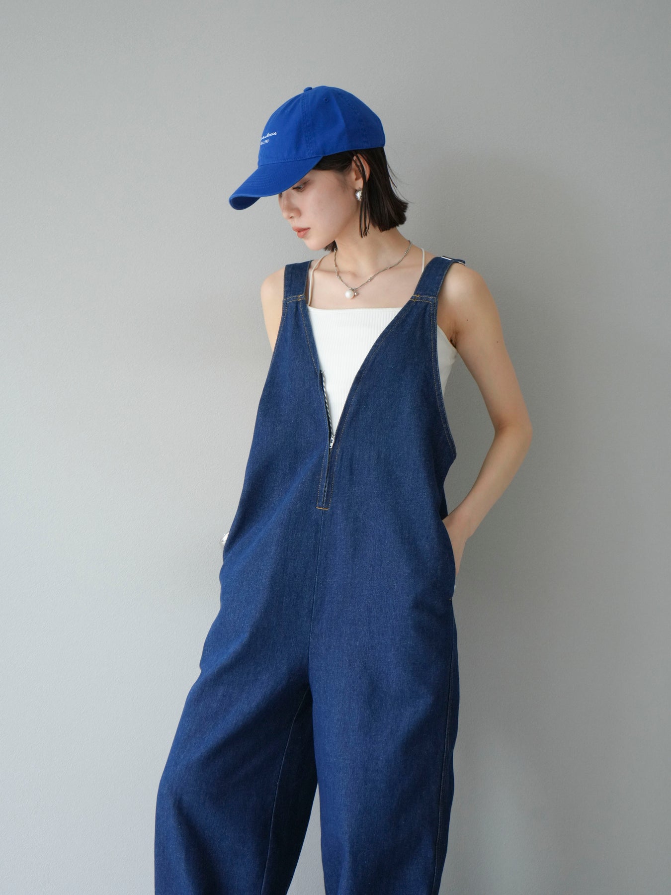 [予約]フロントZIP Vネックデニムサロペット/インディゴ
