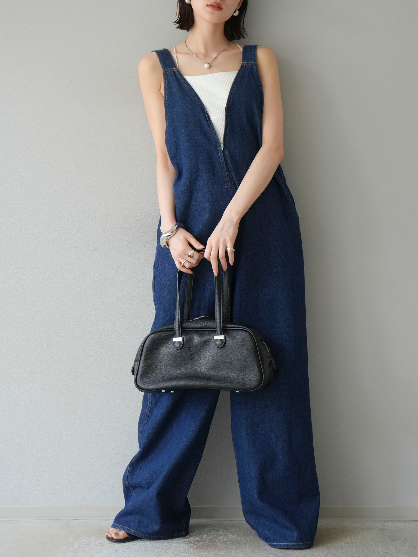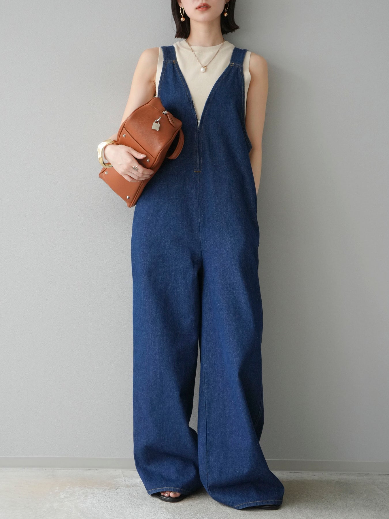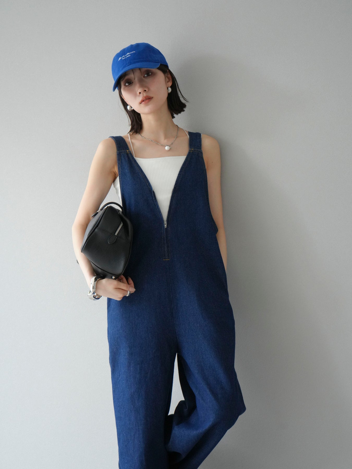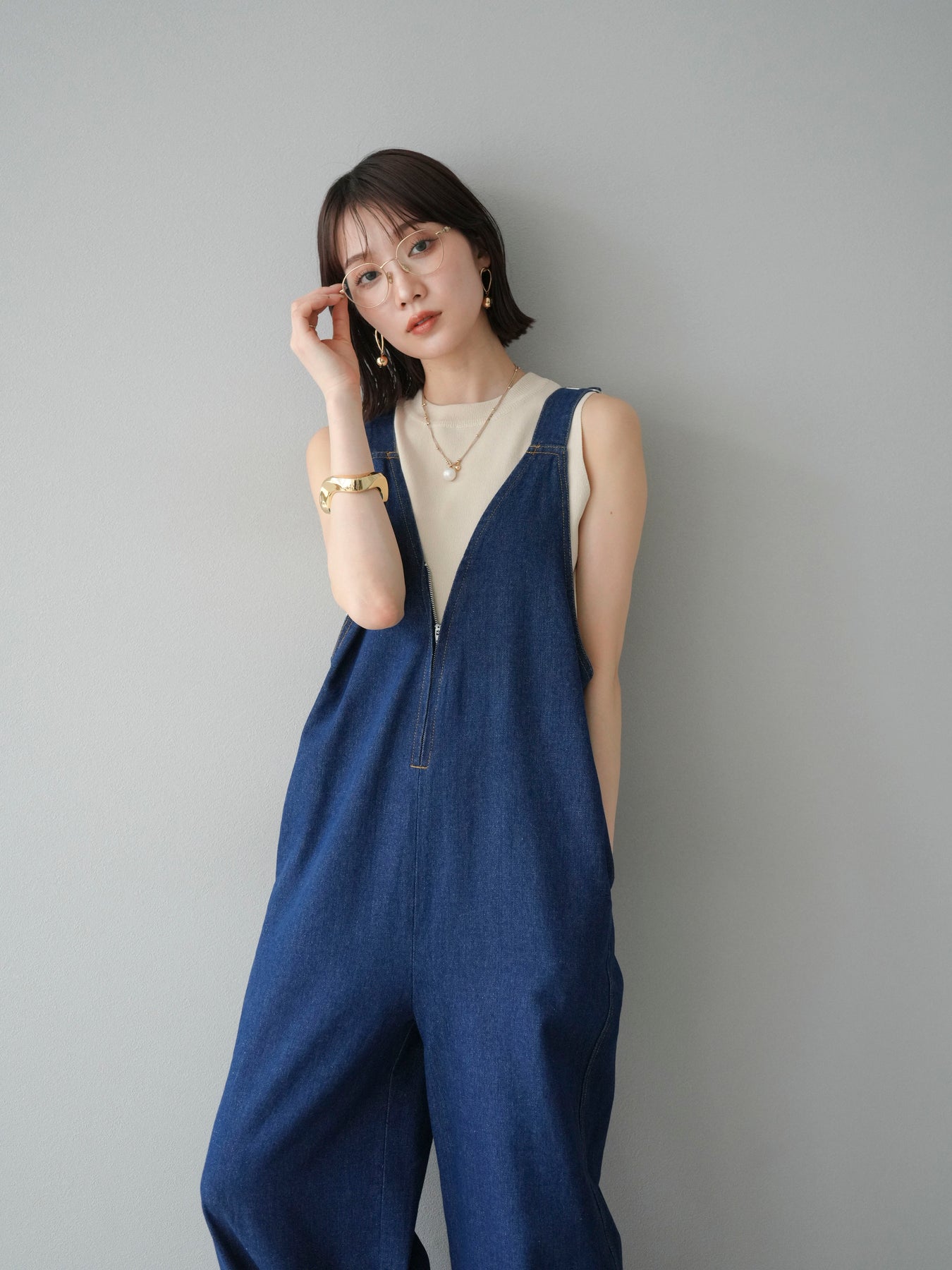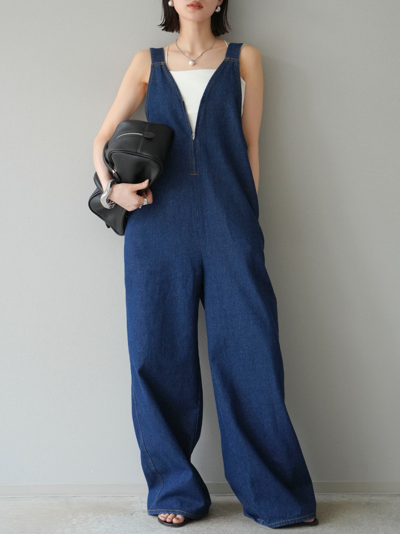[予約]フロントZIP Vネックデニムサロペット/インディゴ