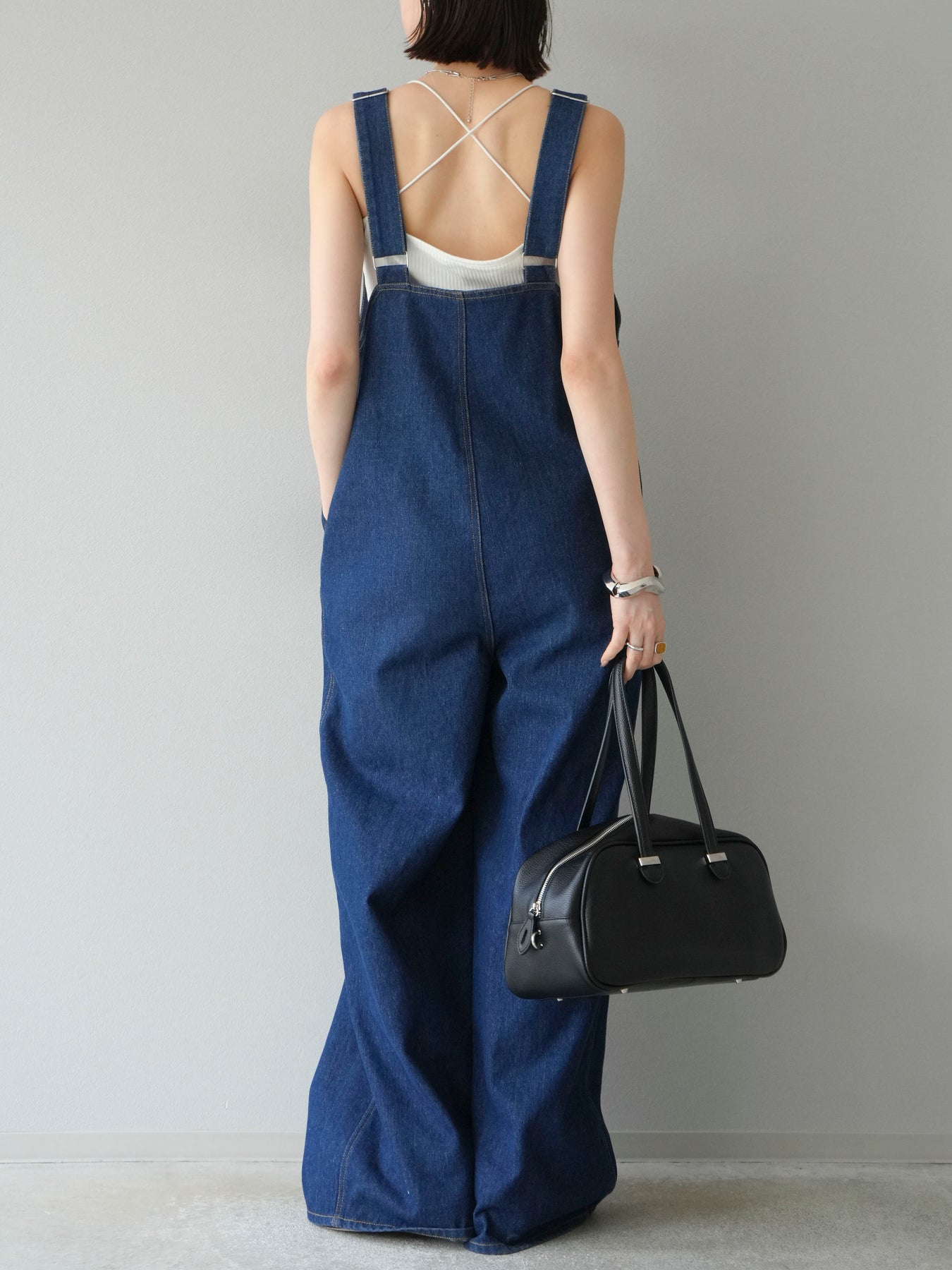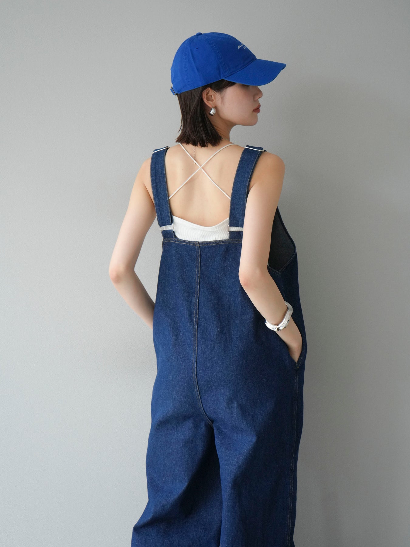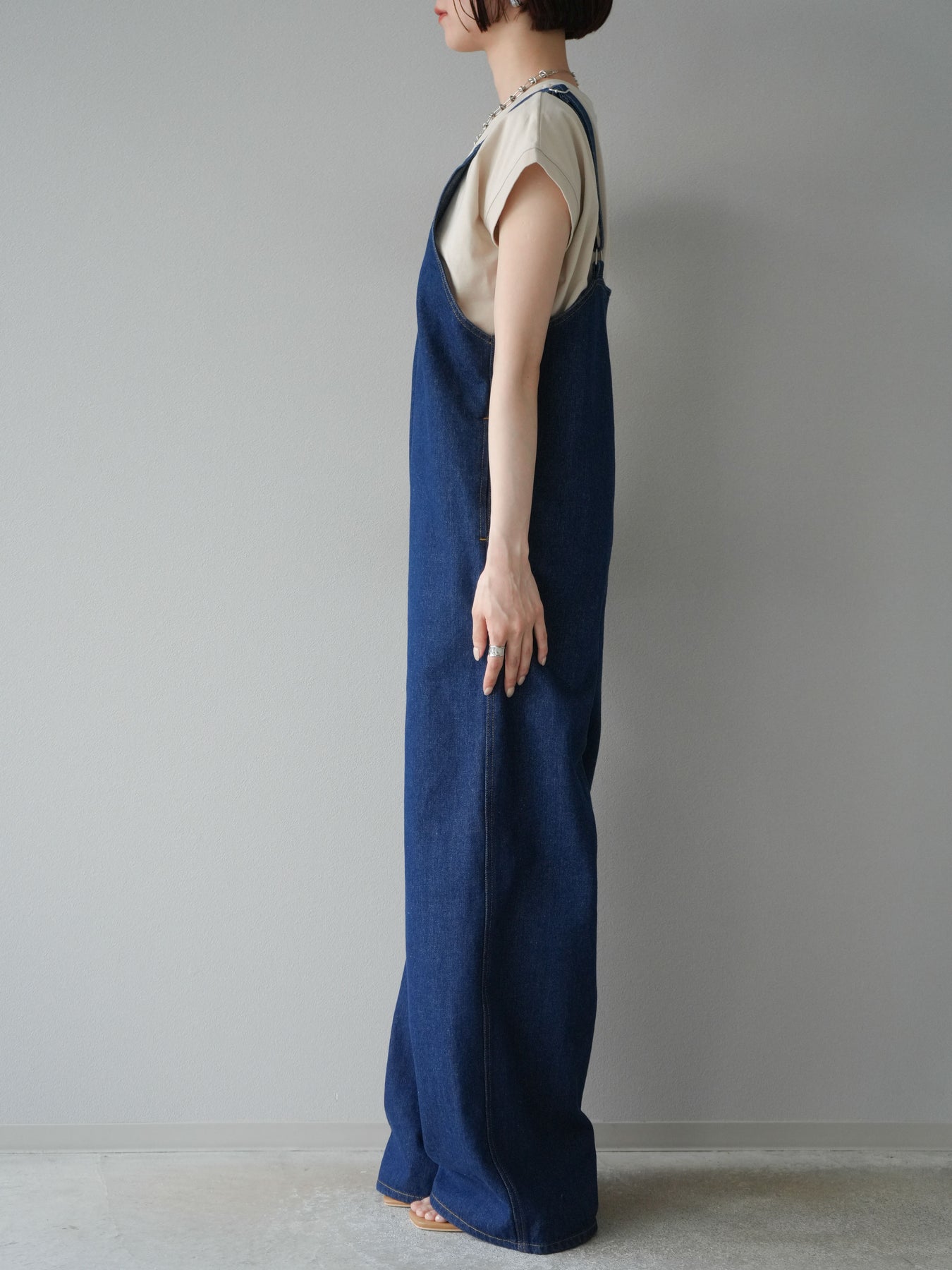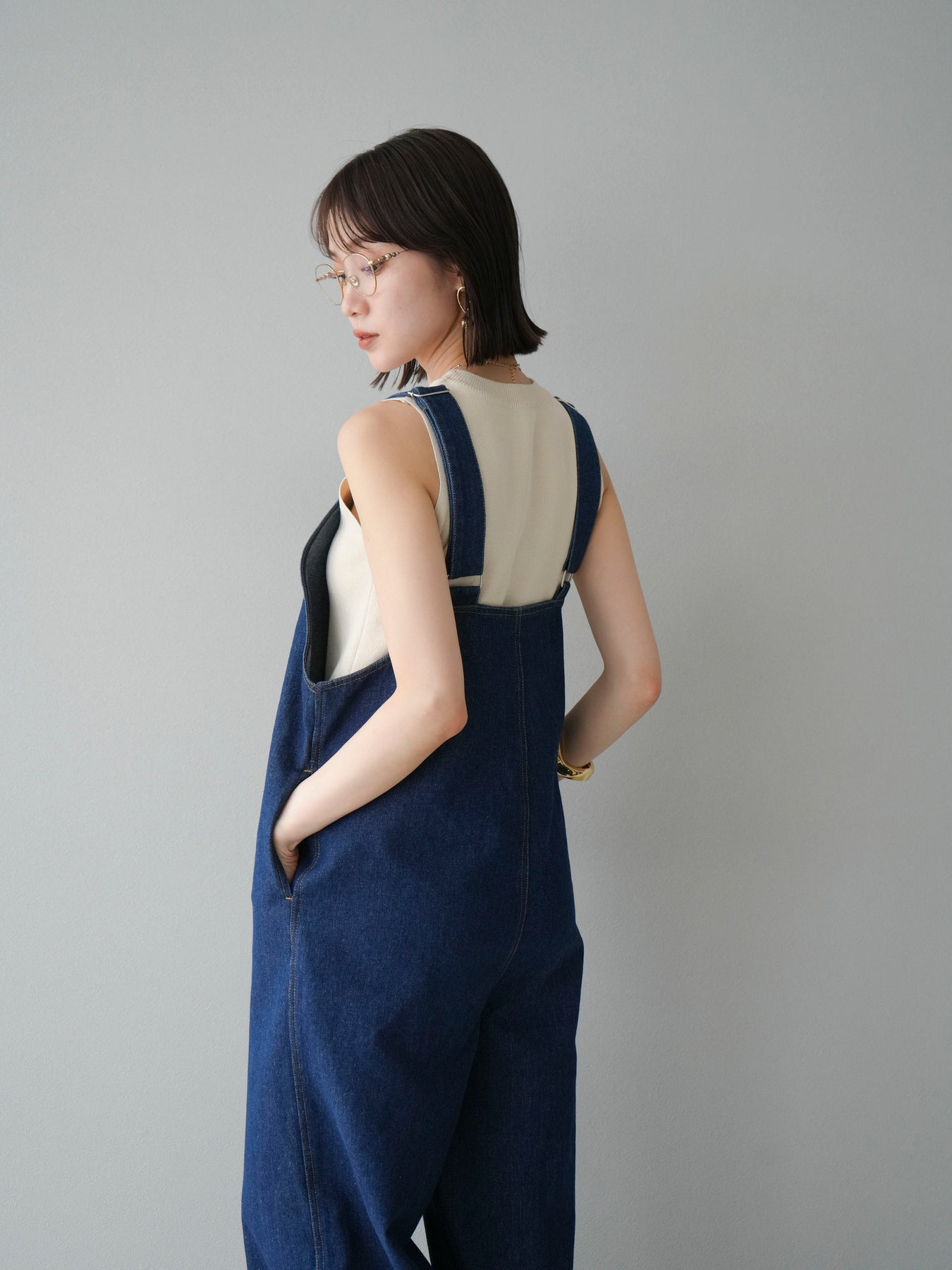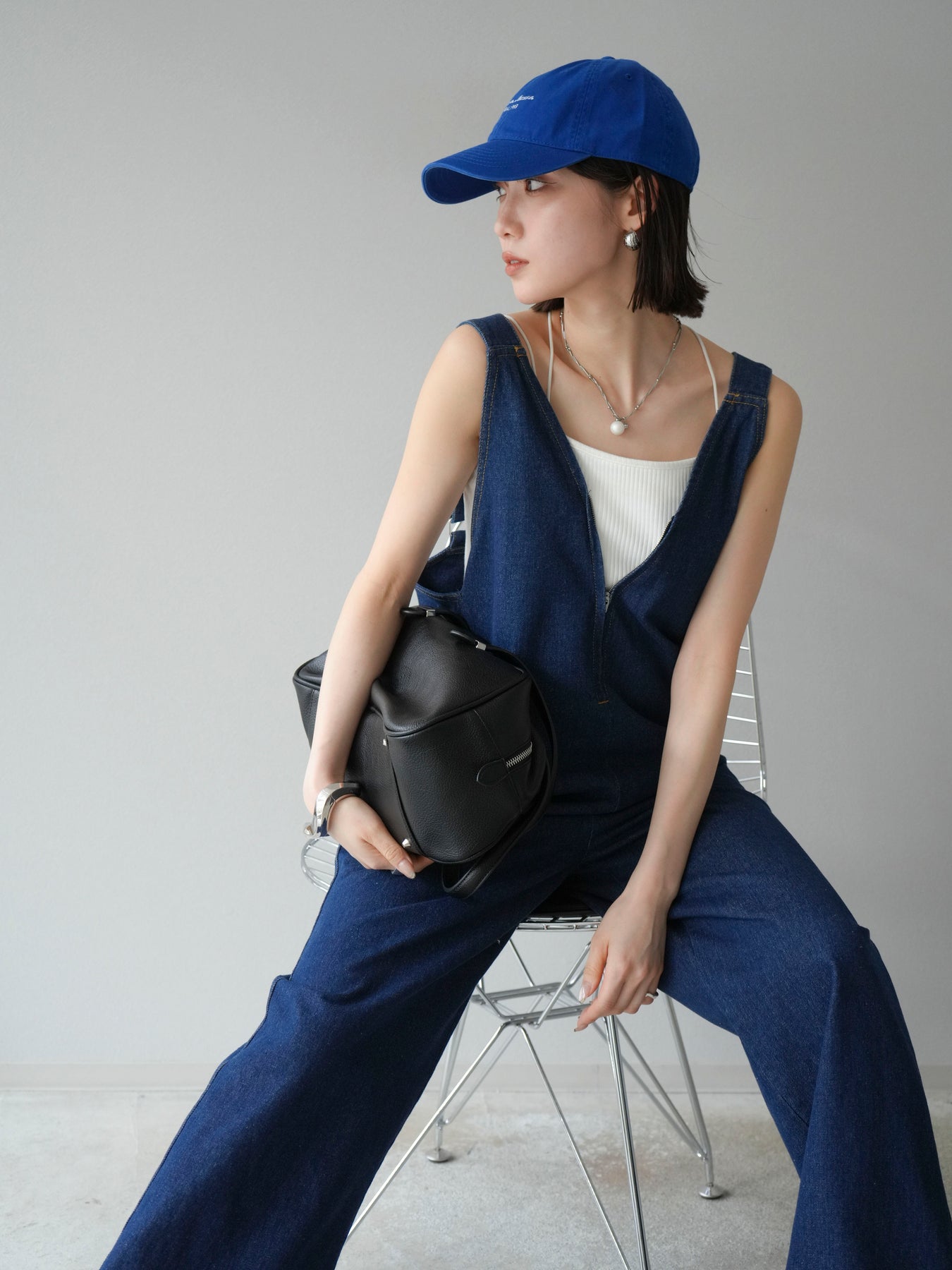 [予約]フロントZIP Vネックデニムサロペット/インディゴ