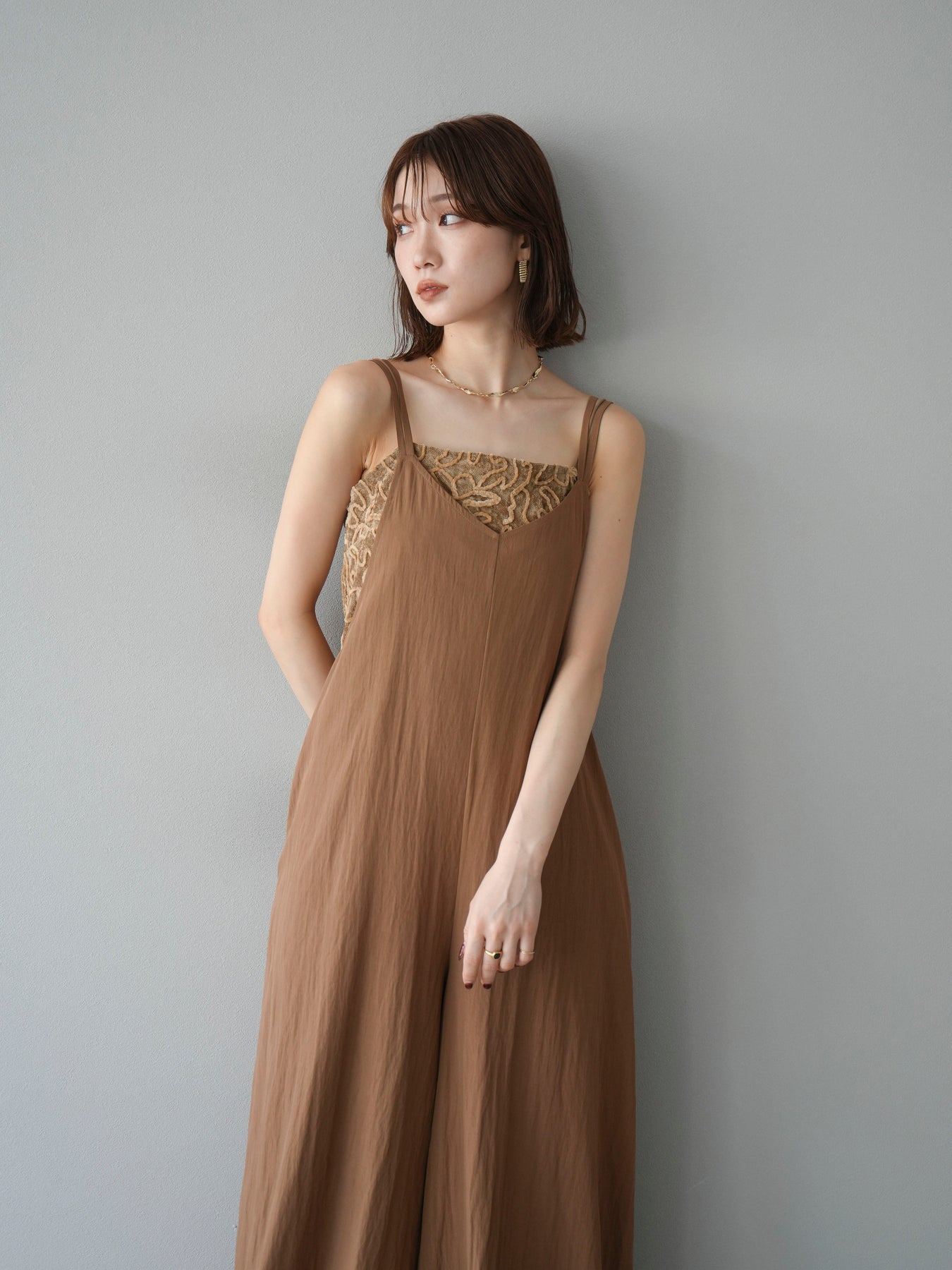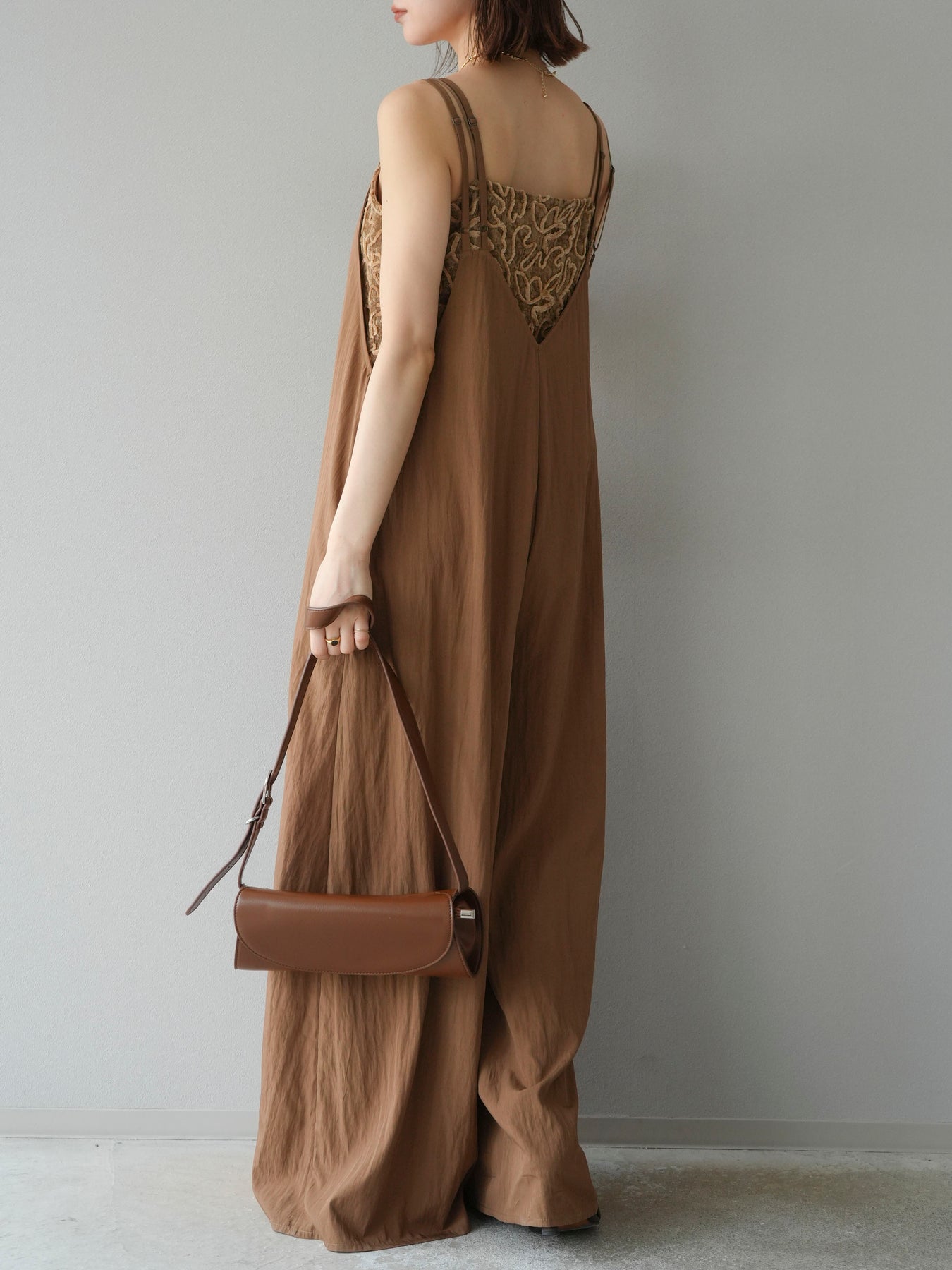 【M】バスト94cm ウエスト118cm 股上66cm(肩紐除く) 股下65cm わたり39cm 肩紐27cm~47cm(調節可能) 裏地なし 透け感なし 伸縮性なし サイドポケットあり