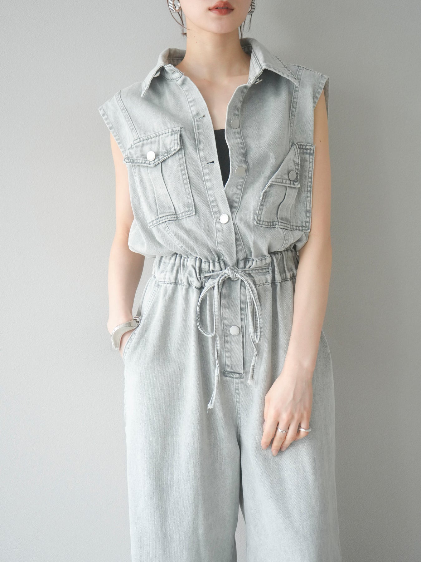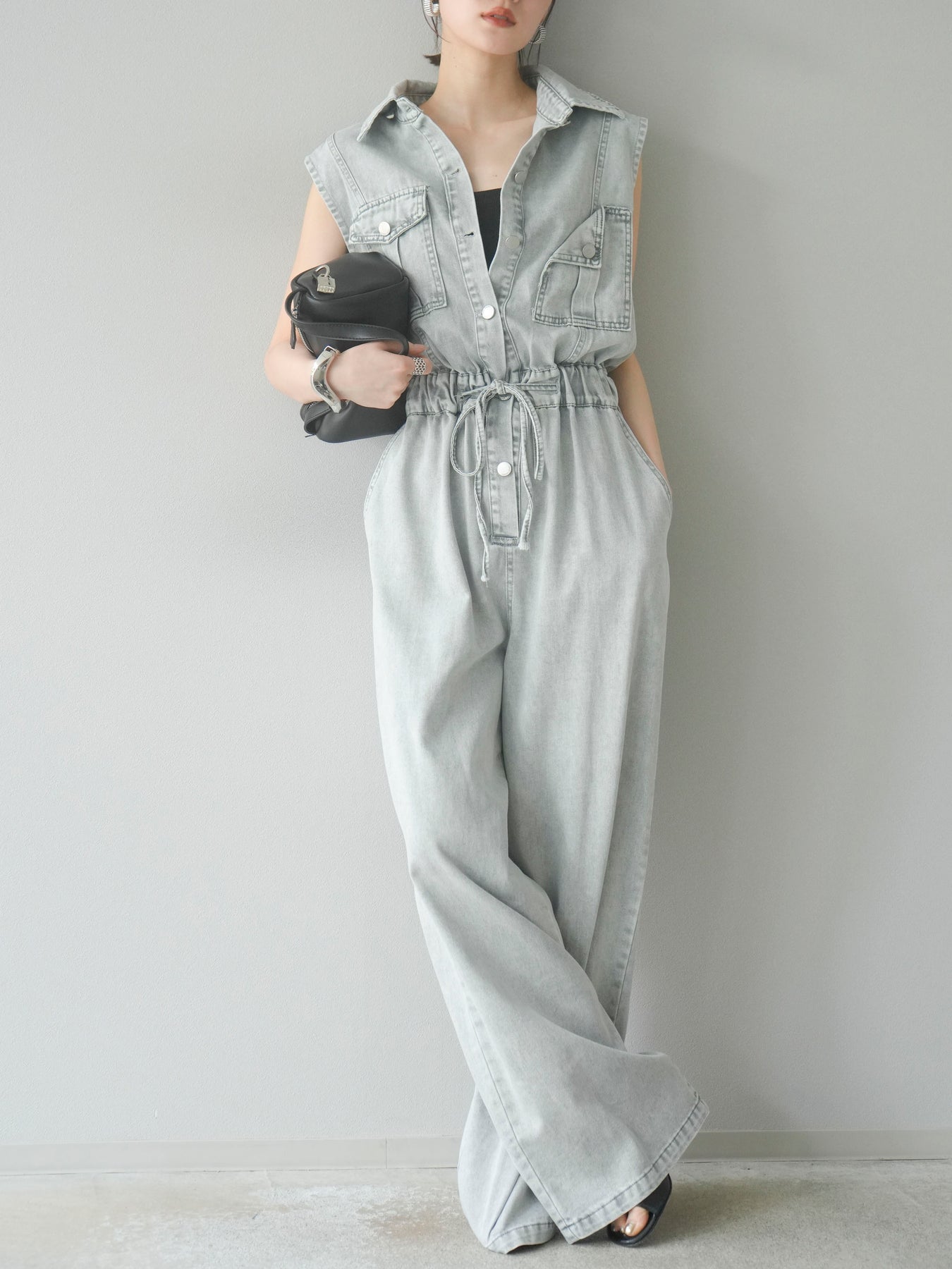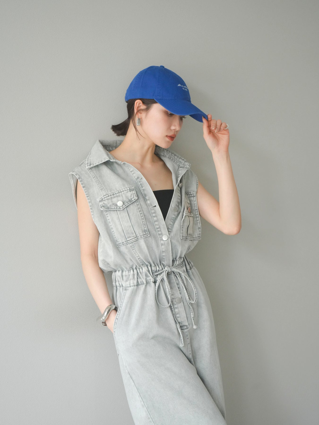 フロントのフラップポケットがアクセントになった、カジュアルさとスタイルアップ効果を両立するデニムオールインワン。ウエストはドローストリング仕様で、自分好みのシルエットに調整可能。すっきりとしたノースリーブとロング丈のバランスが、縦ラインを強調してスタイル良く見せてくれます。柔らかなデニム素材で着心地も良く、1枚でサマになる主役級アイテム。カジュアルにもキレイめにも着まわせる万能オールインワンです。 ※ボトムス、キャミソール(インナー)以外の商品は一律でインナーは付属していません。