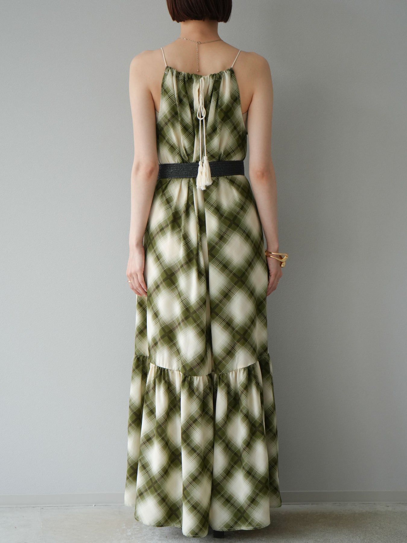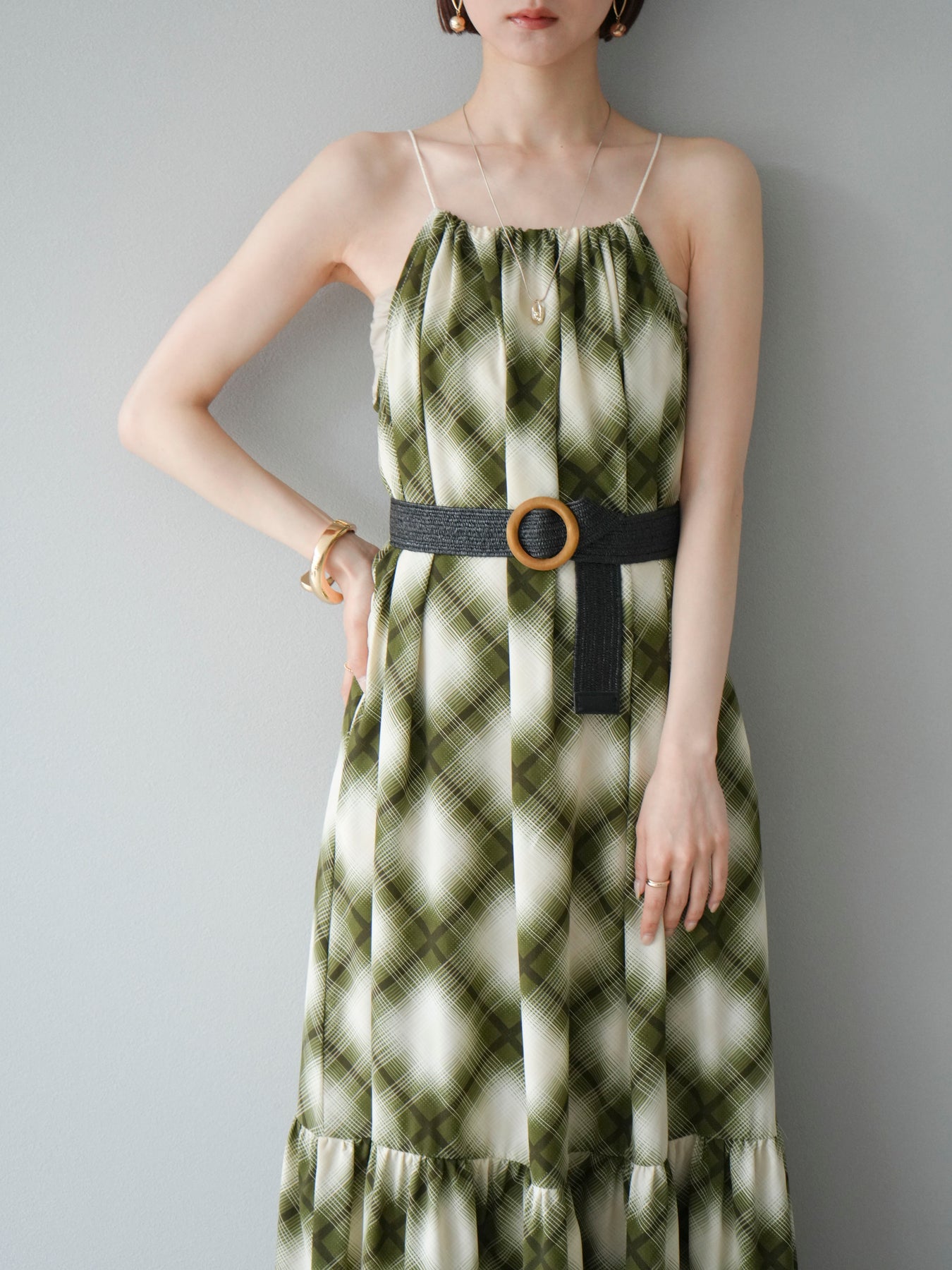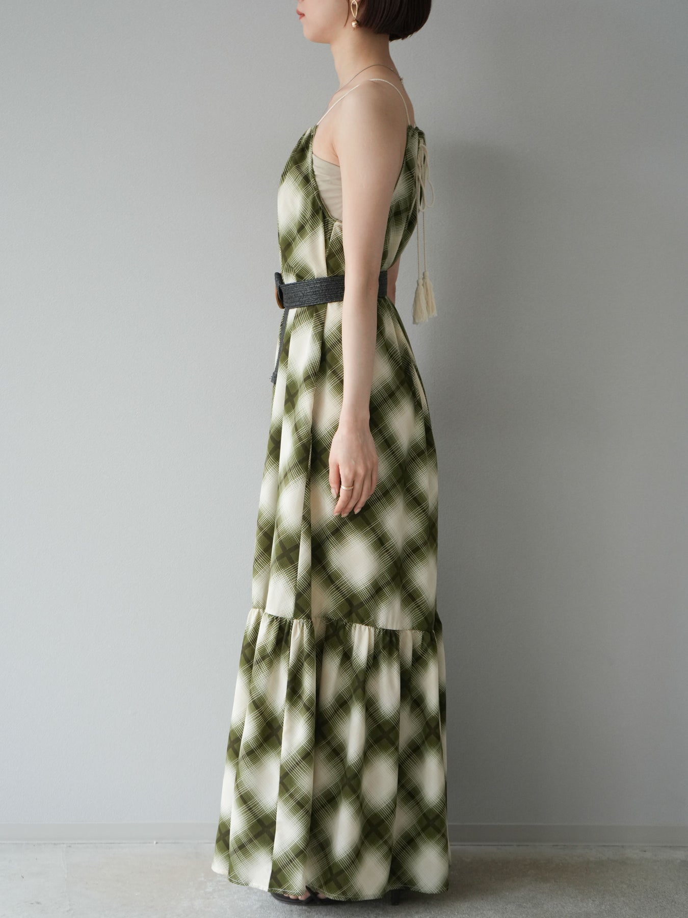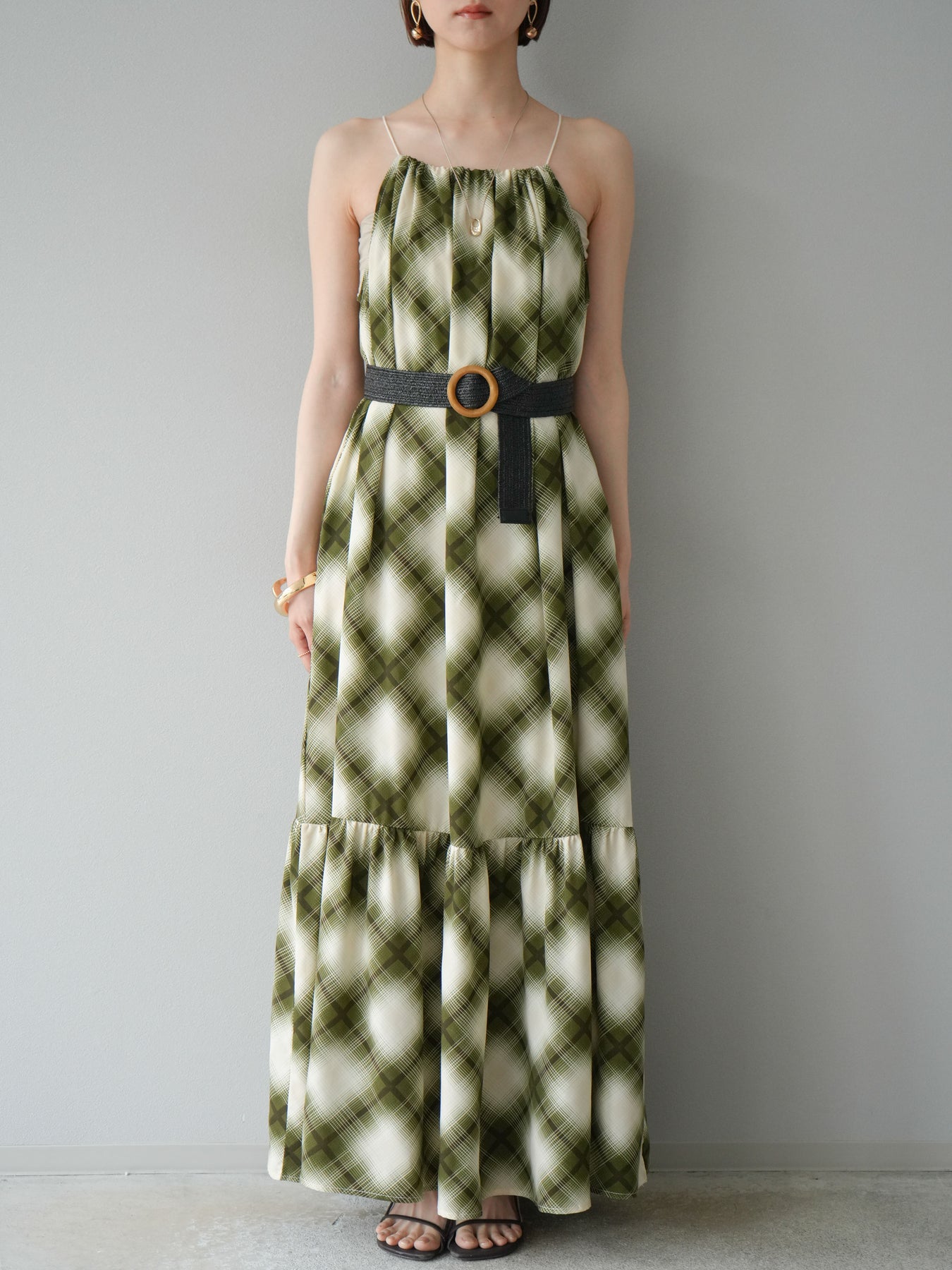 [予約]ベルト付チェックノースリーブワンピース/グリーン