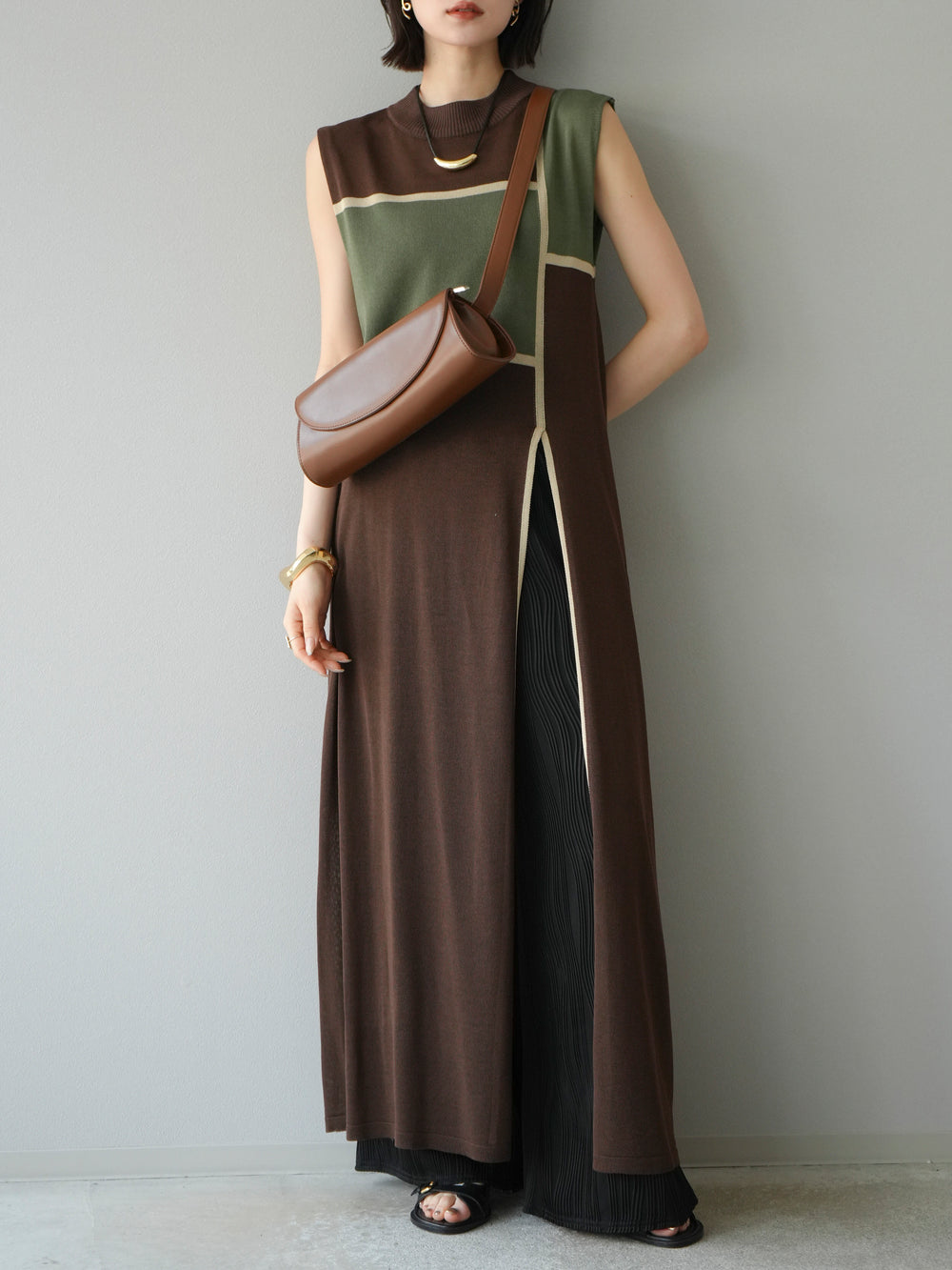 [予約]ウェーブパイピングキャミワンピース/ブラウン
