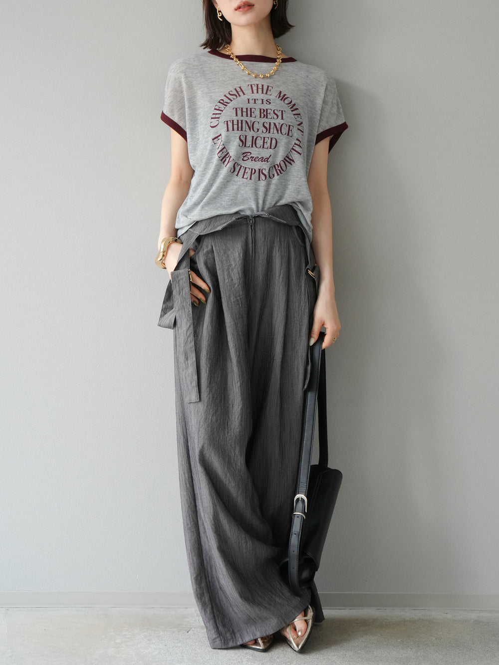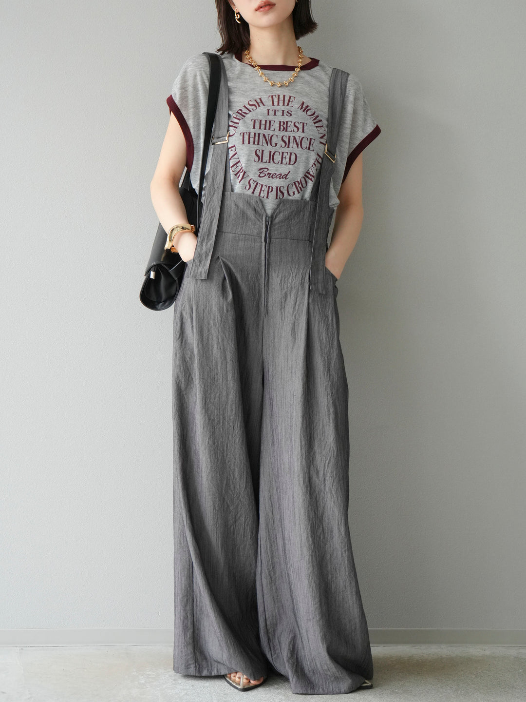 [予約]ストリングデザインハイウエストサロペット/チャコール