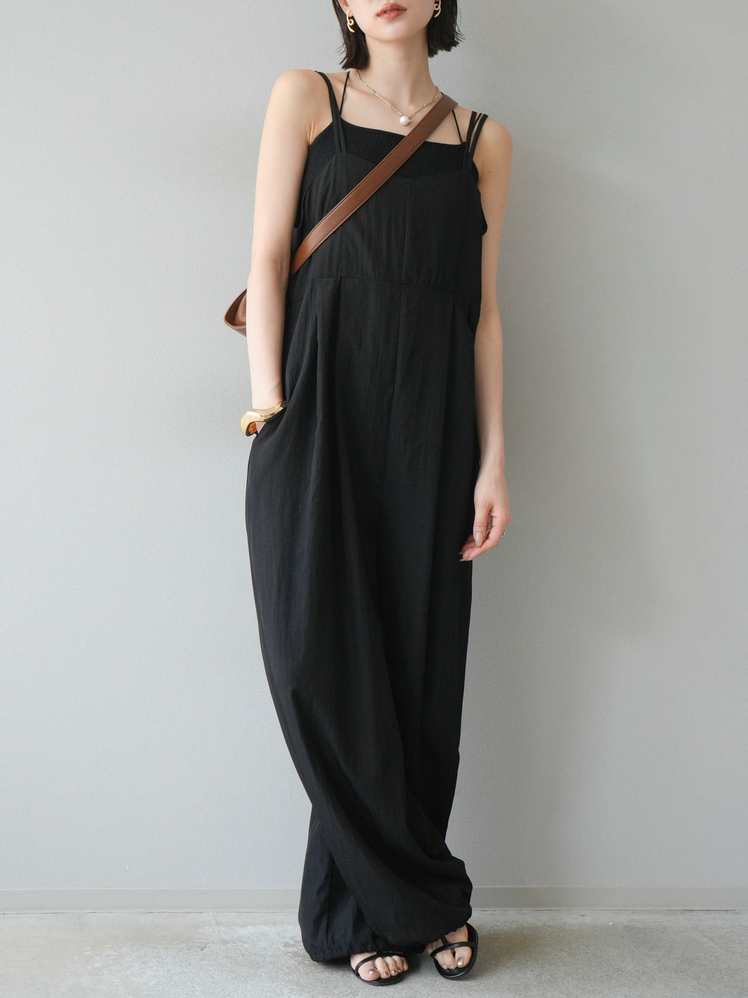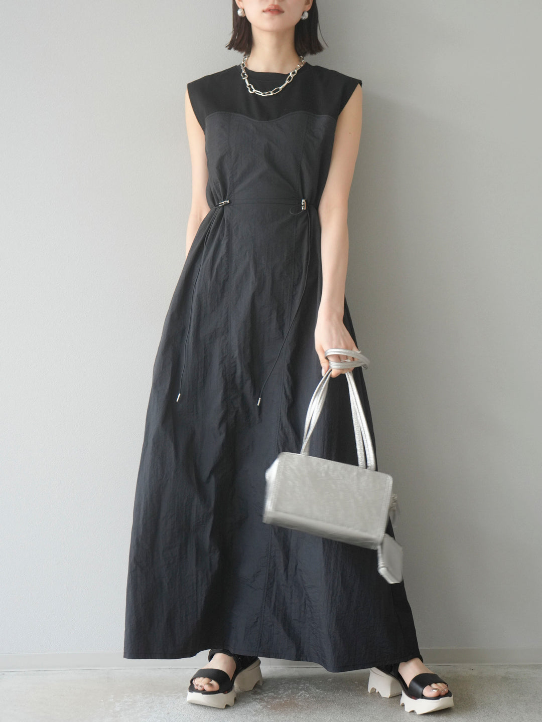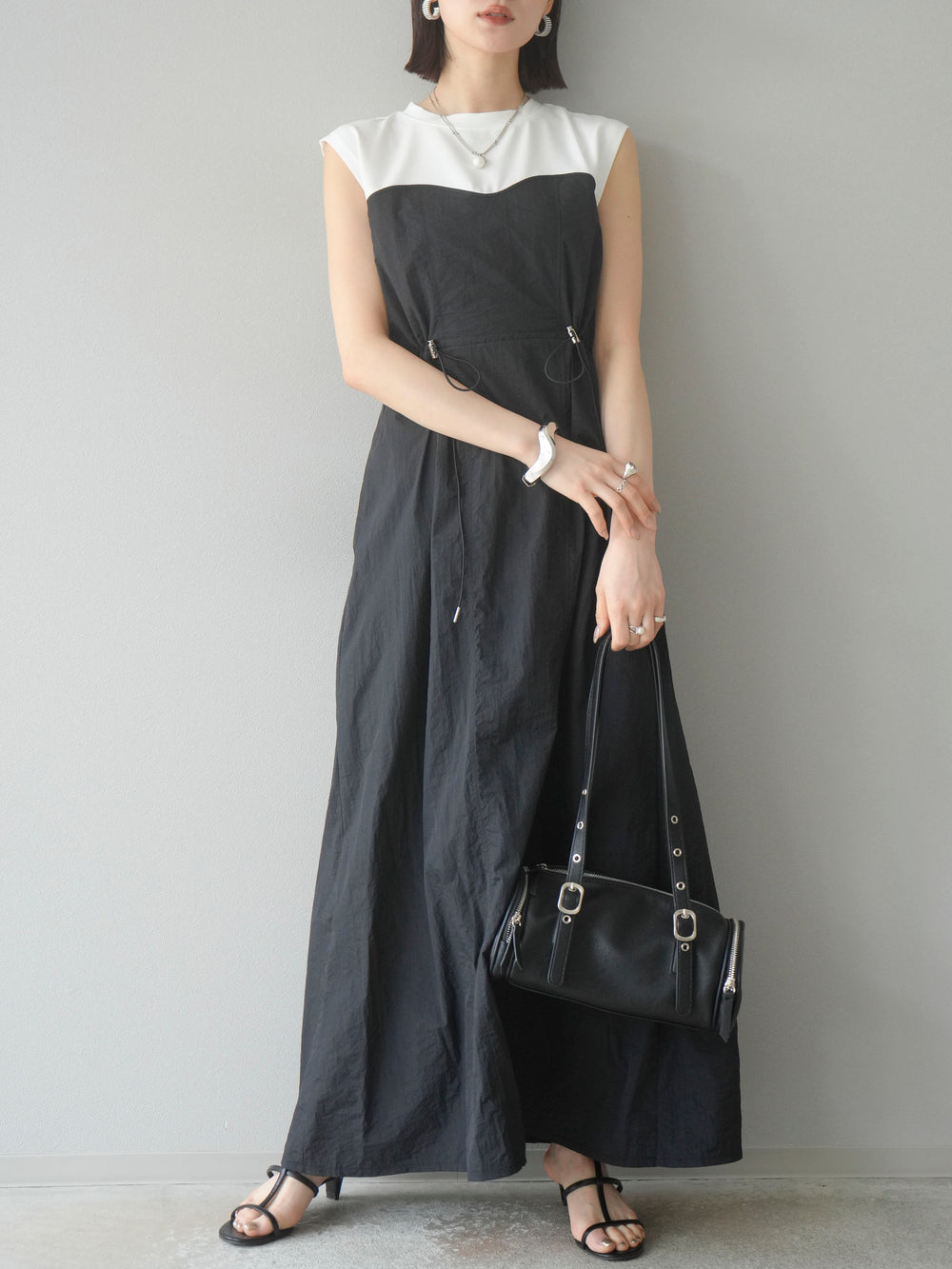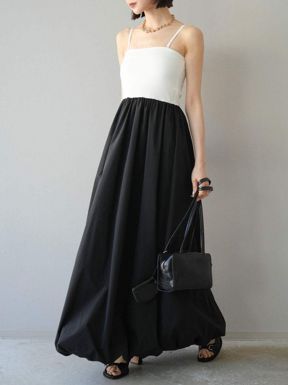 [予約]異素材ドッキングカップ付ベアキャミバルーンワンピース/オフブラック
