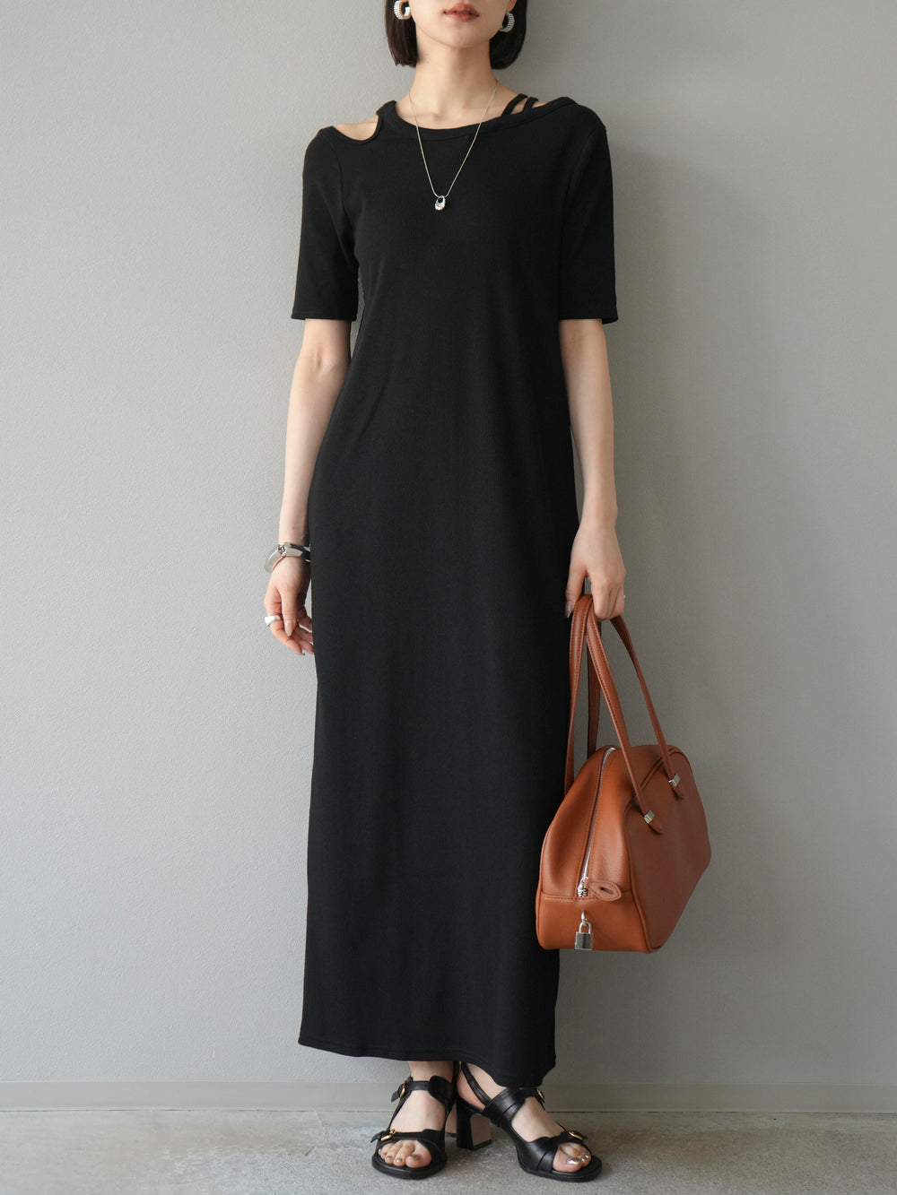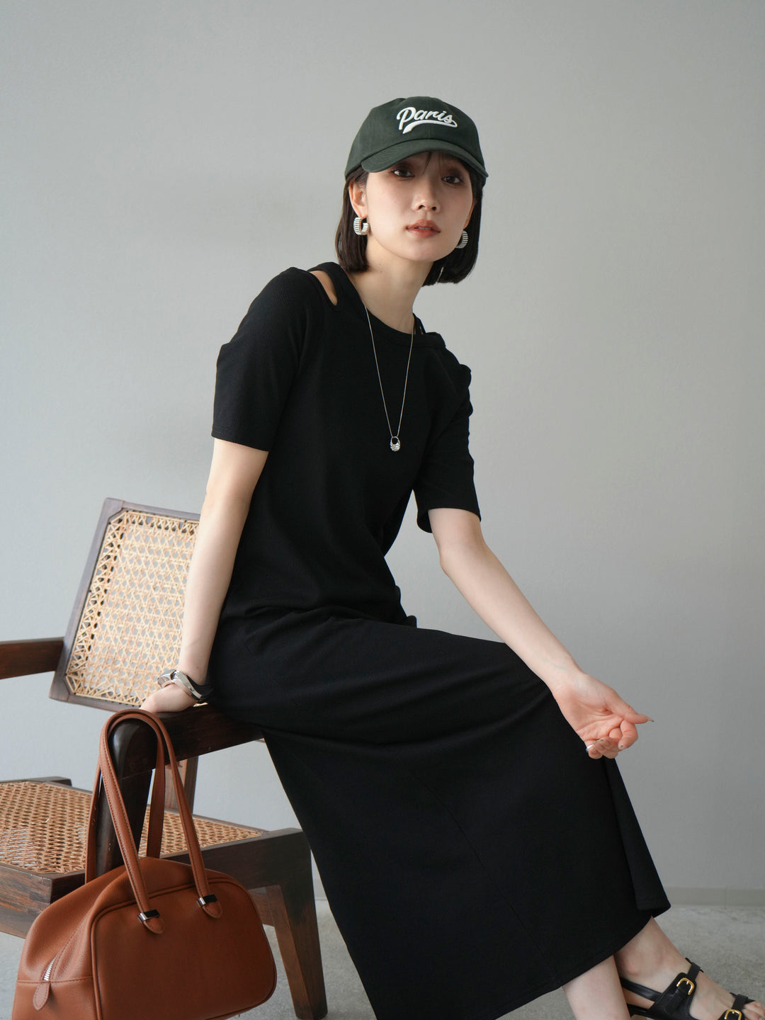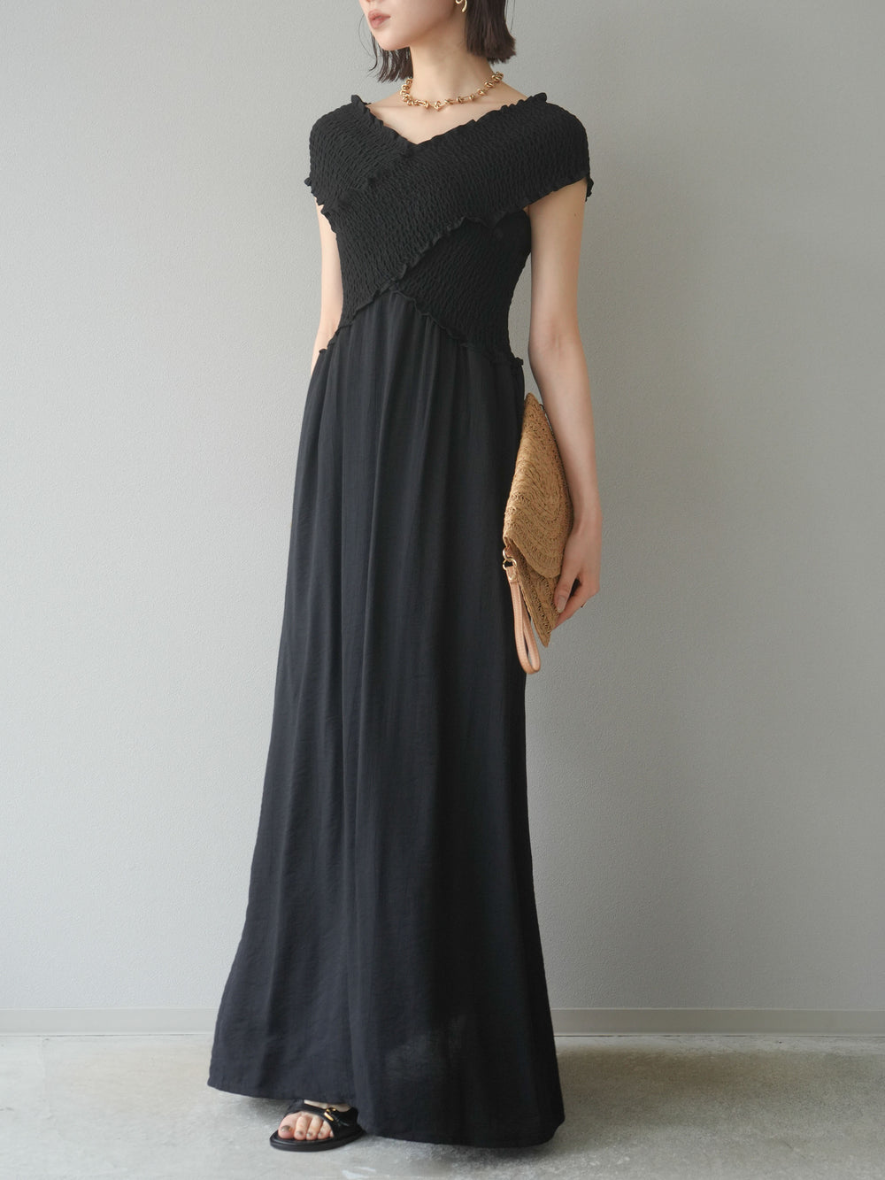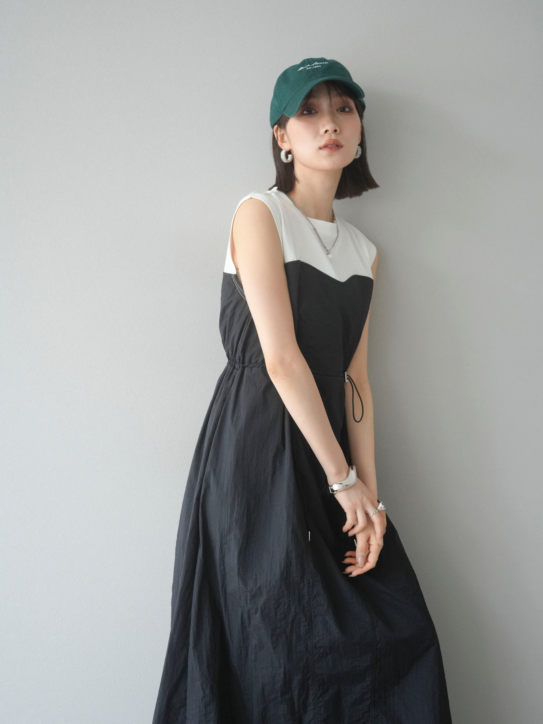 [予約]異素材ドッキングカップ付ベアキャミバルーンワンピース/オフブラック