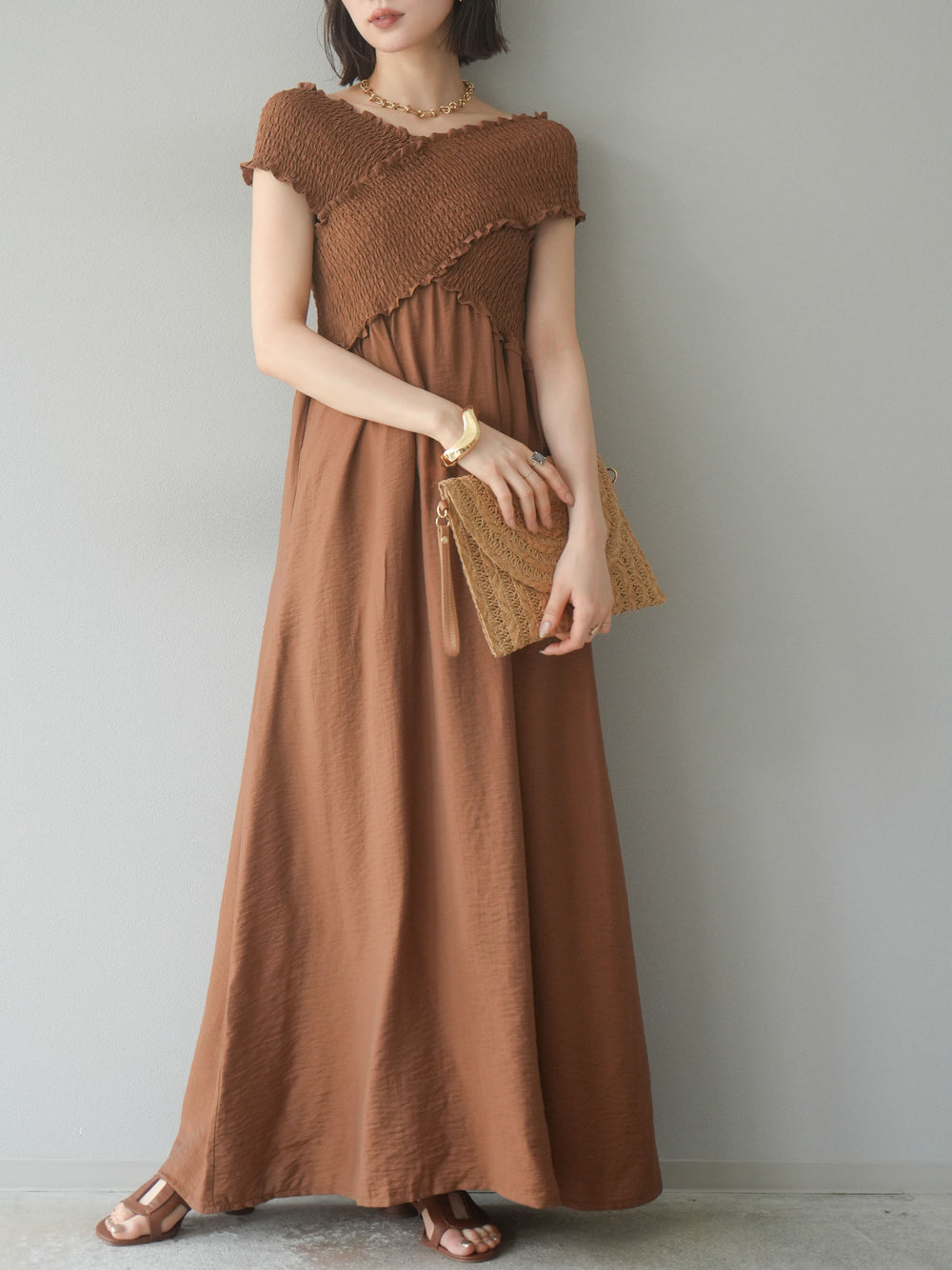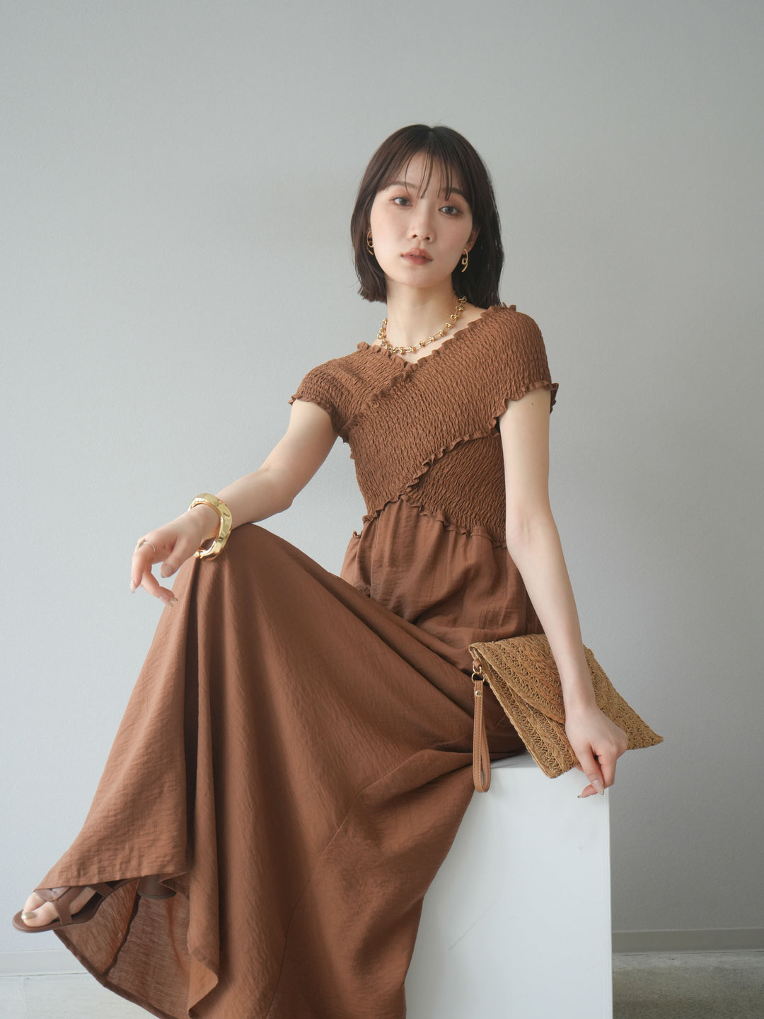 [予約]2WAYネップメッシュワンピース/ブラウン