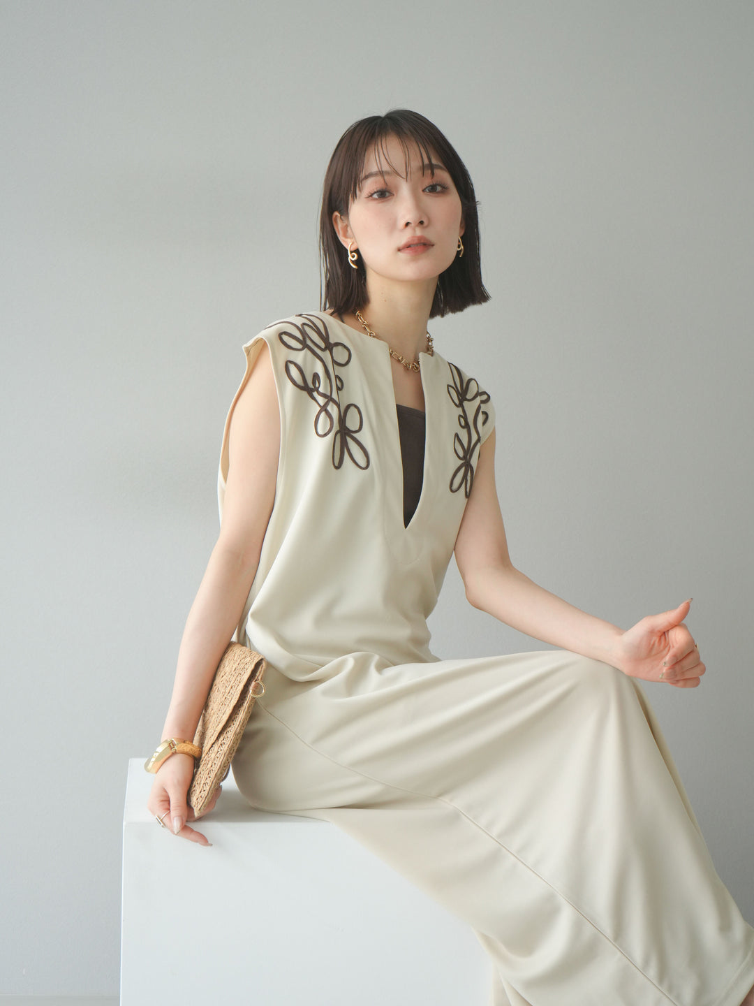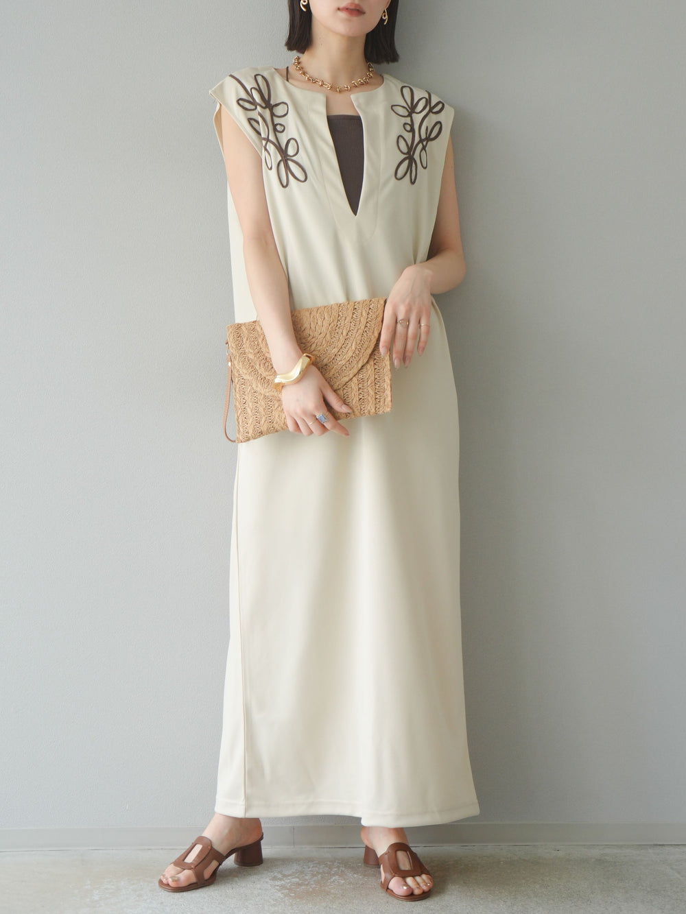 [予約]ライトポンチコード刺繍ワンピース/アイボリー