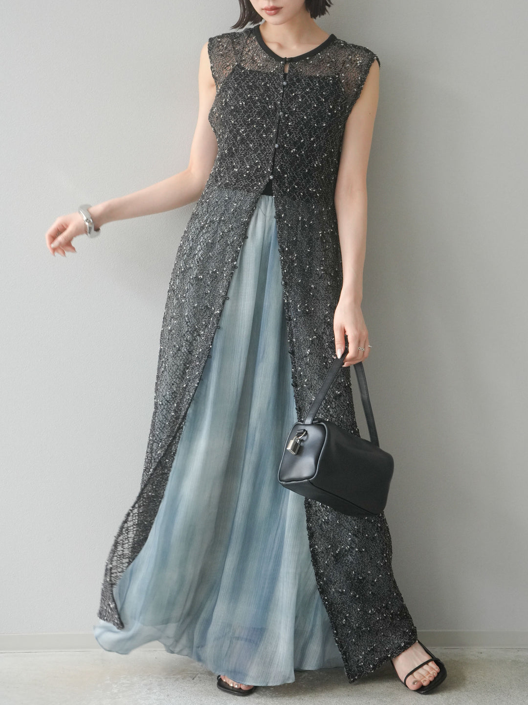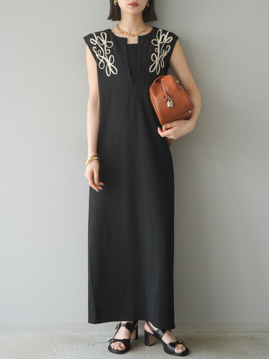 [予約]ライトポンチコード刺繍ワンピース/ブラック
