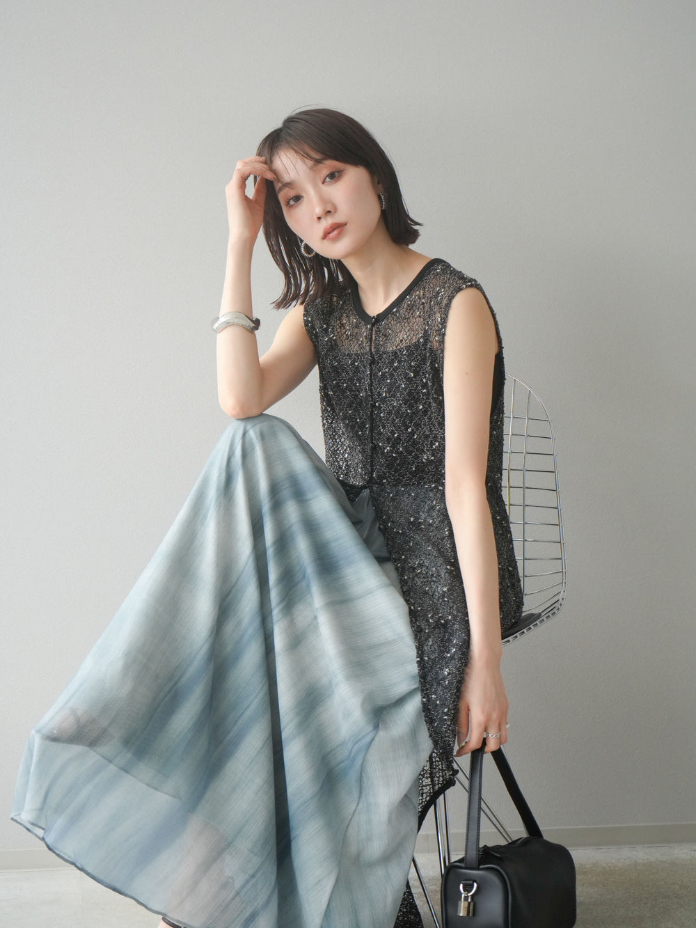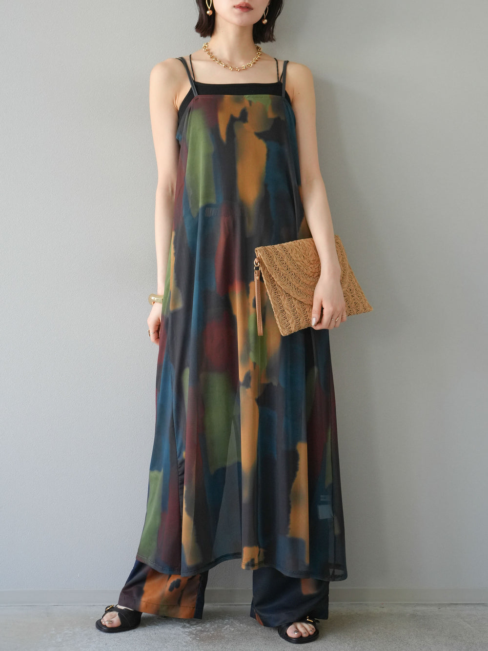 [予約]水彩アートシアーキャミワンピース/チャコール