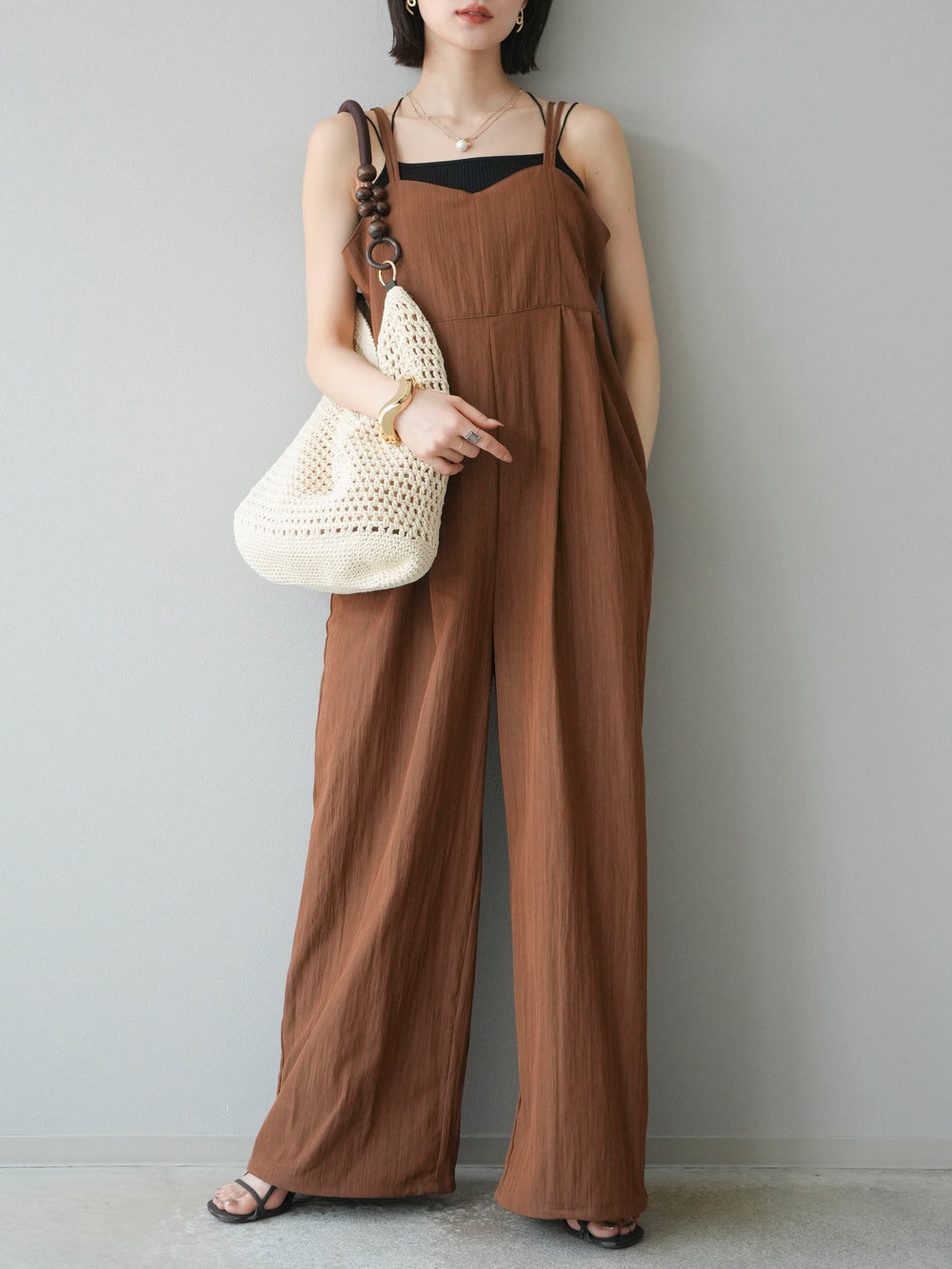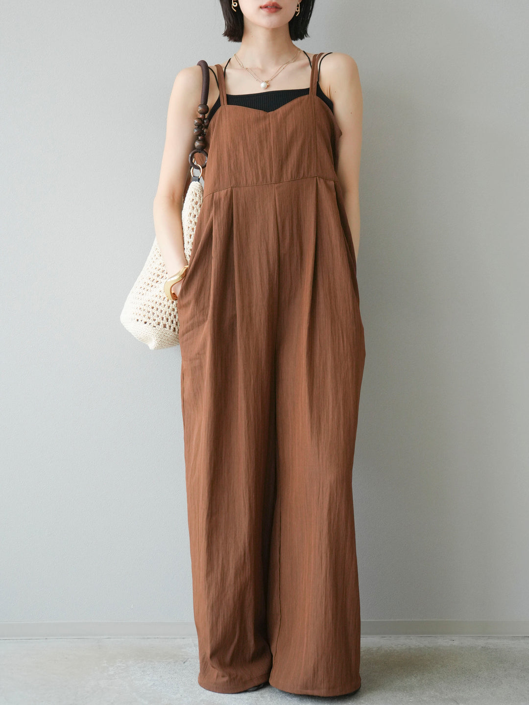 [予約]リネンライクビスチェデザインサロペット/ブラウン