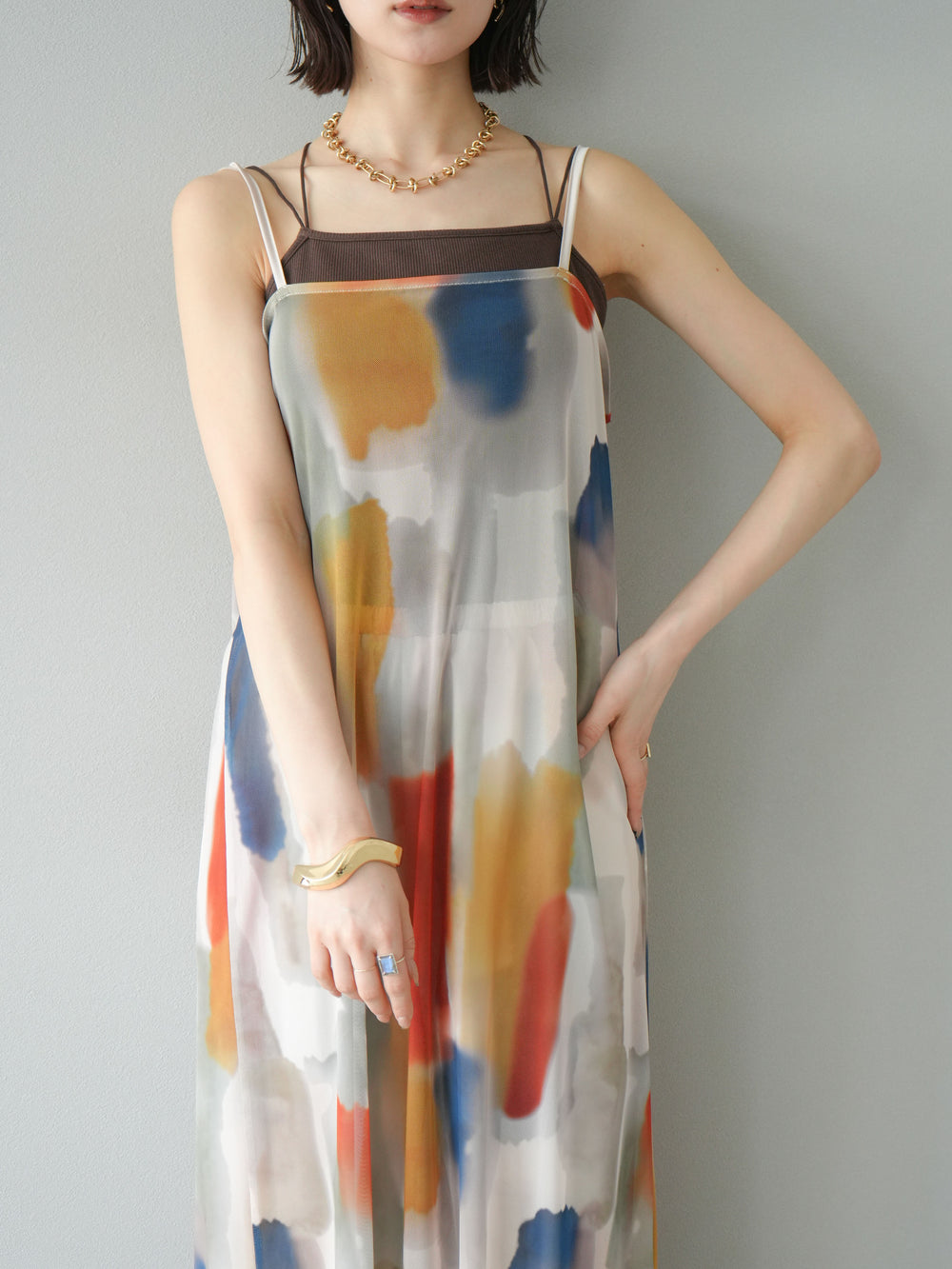 [予約]水彩アートシアーキャミワンピース/エクリュ