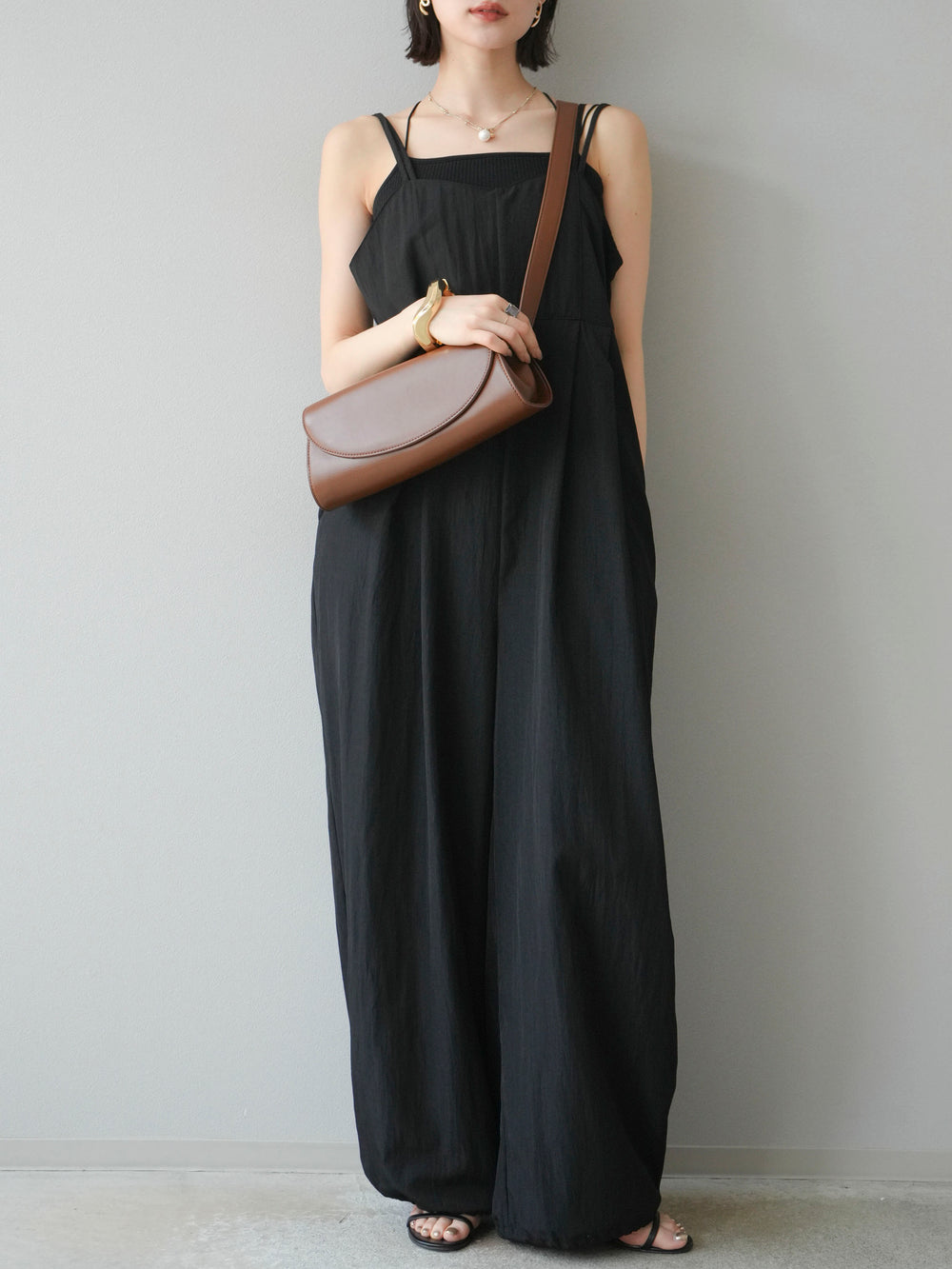 [予約]リネンライクビスチェデザインサロペット/ブラック