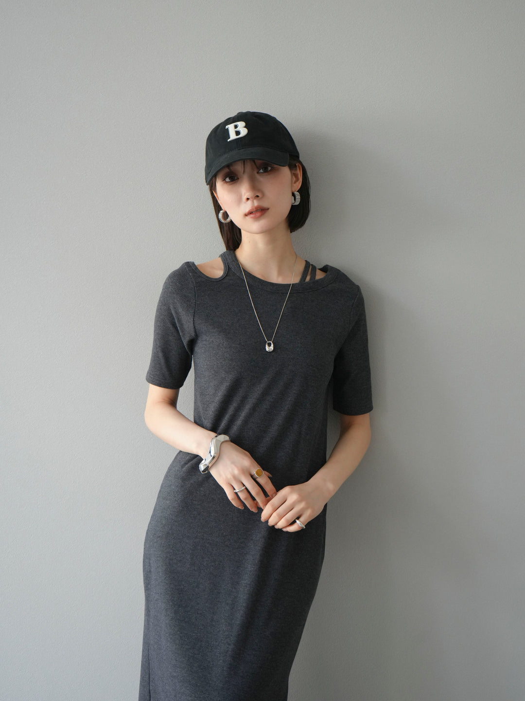 [予約]ライトポンチコード刺繍ワンピース/チャコール