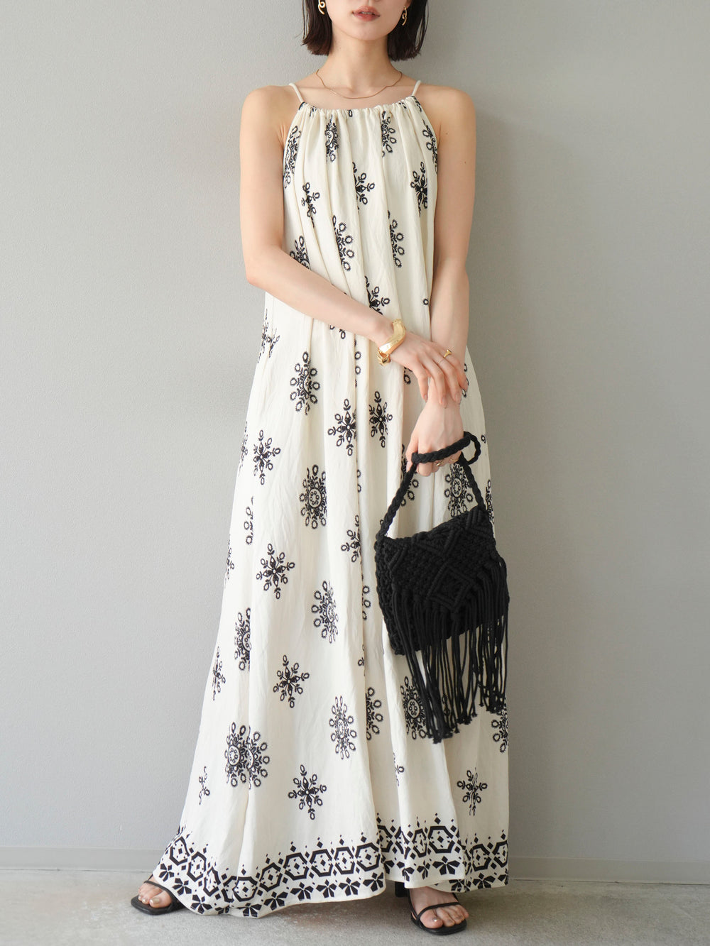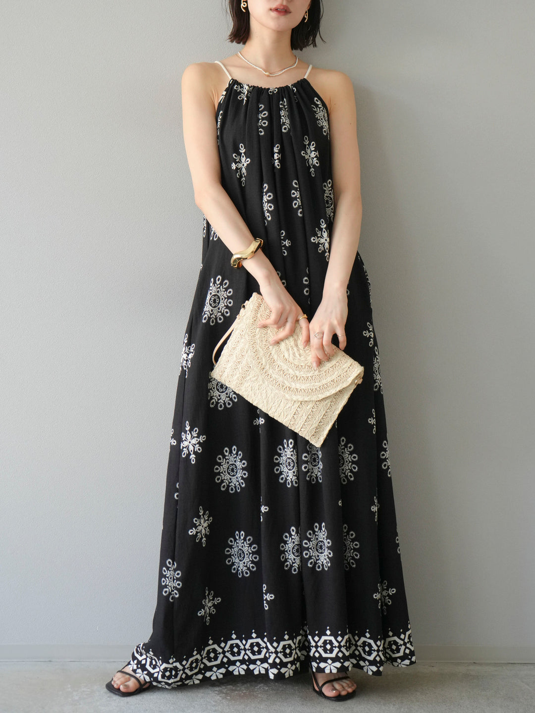 [予約]エスニック柄キャミワンピース/ブラック