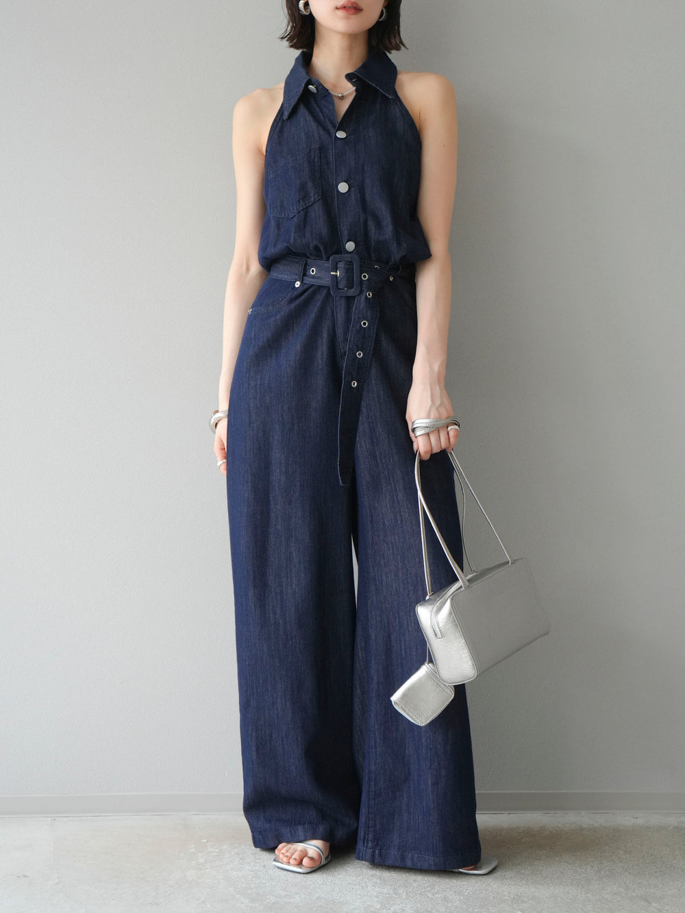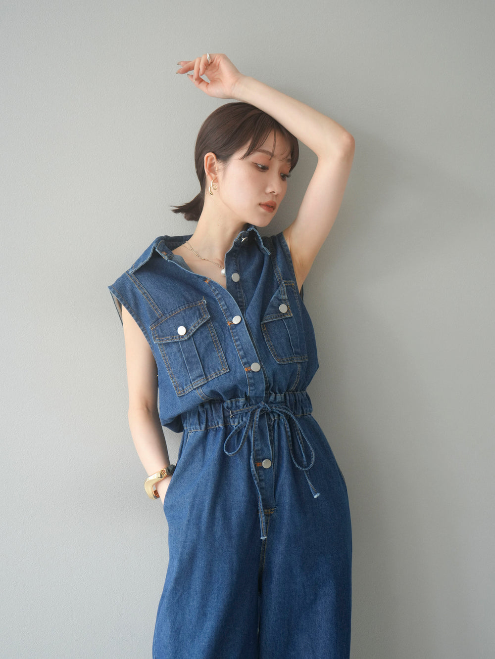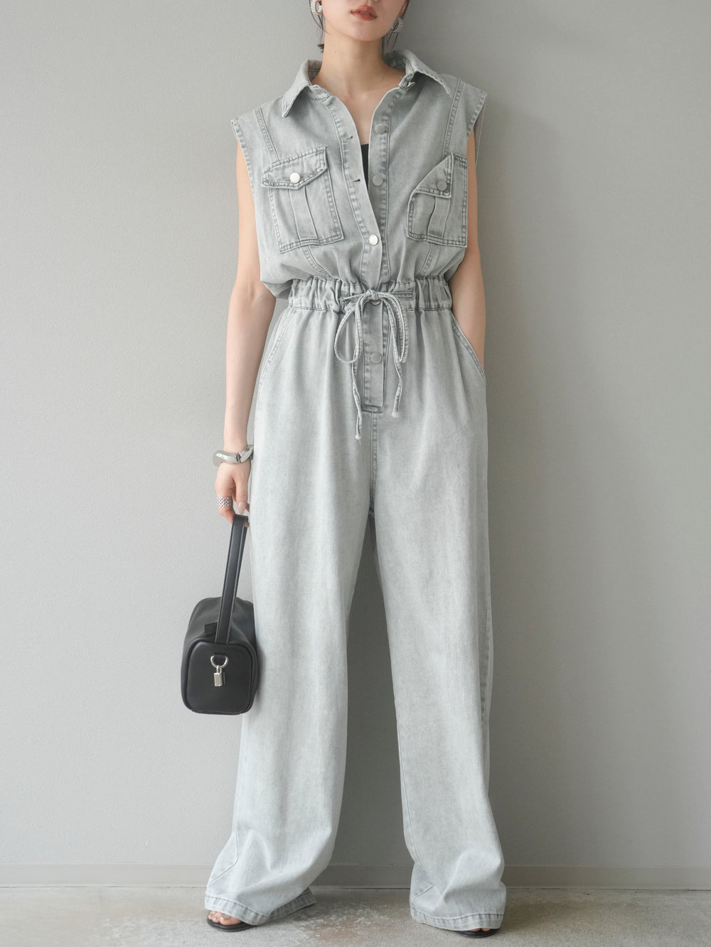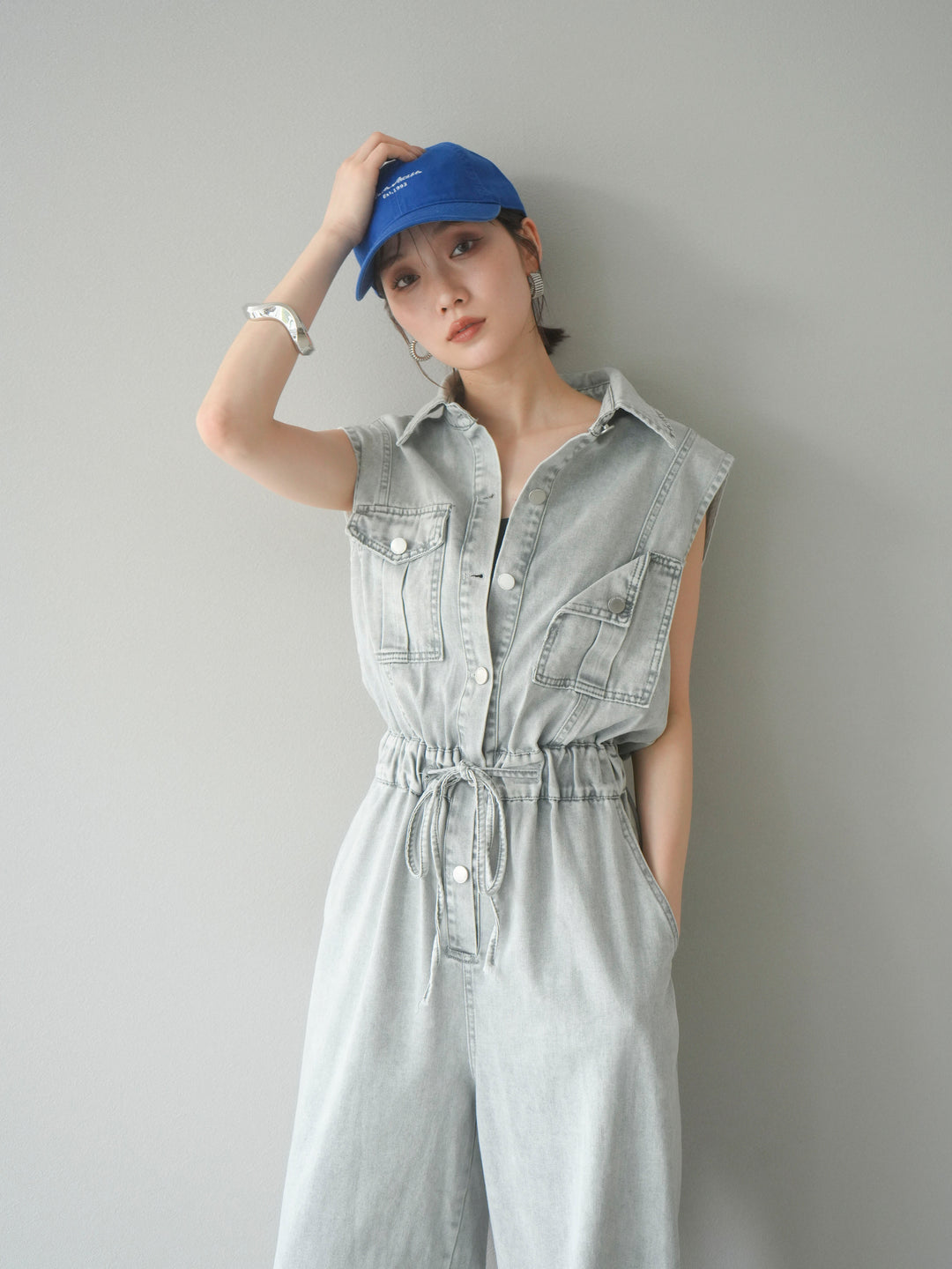 [予約]ポケットデザインデニムオールインワン/グレー