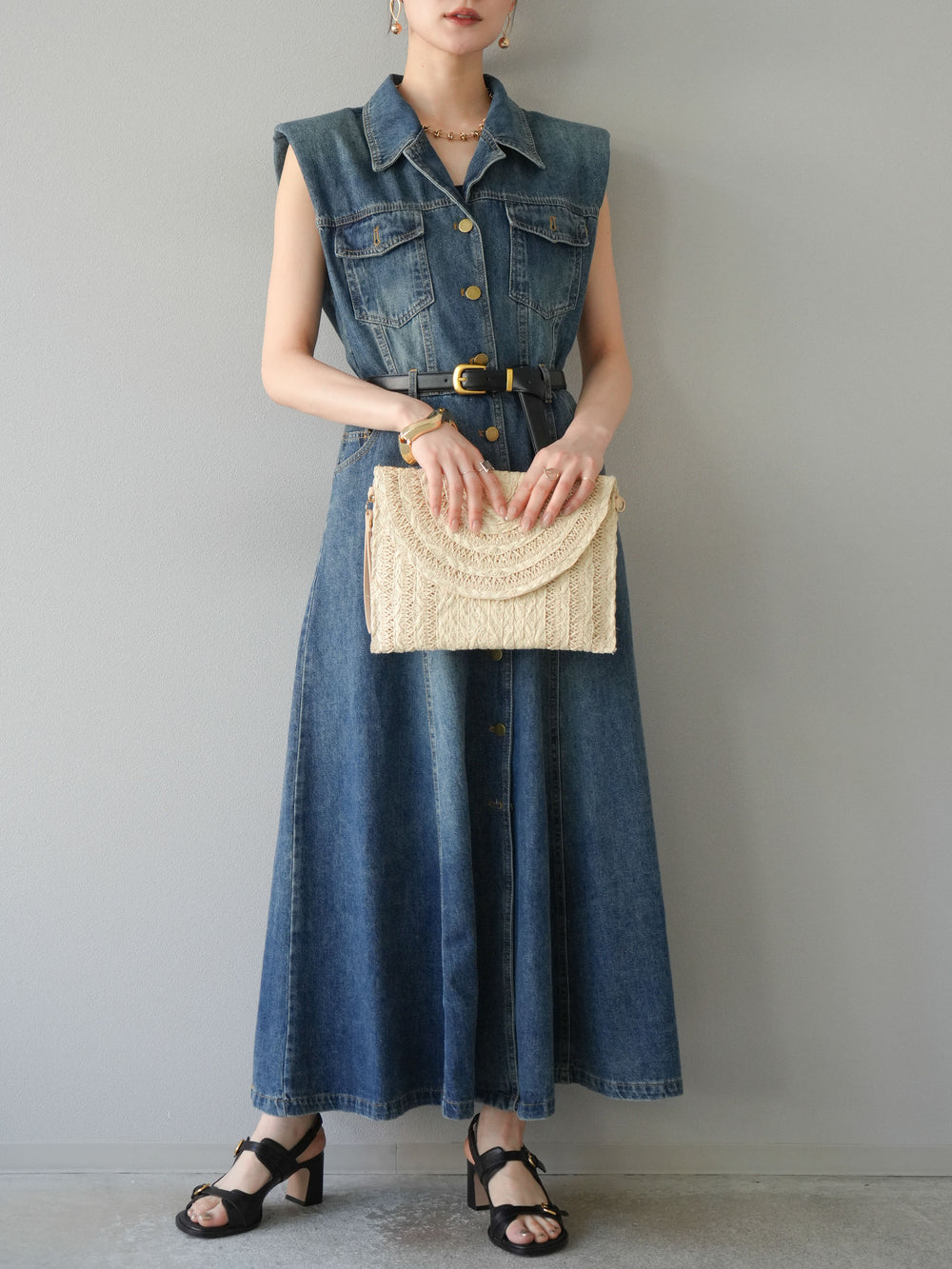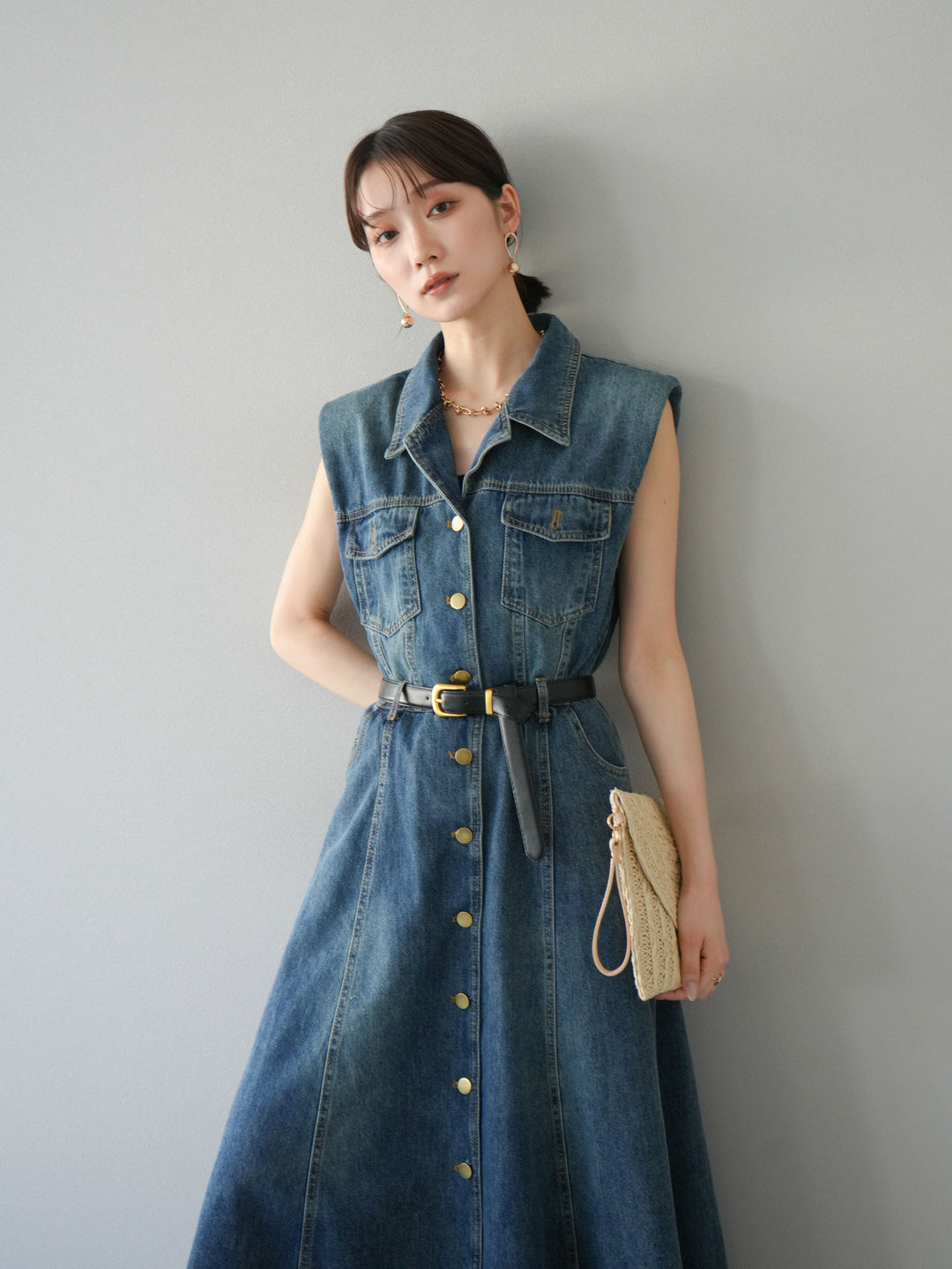 [予約]ベルト付デニムシャツデザインワンピース/ブルー