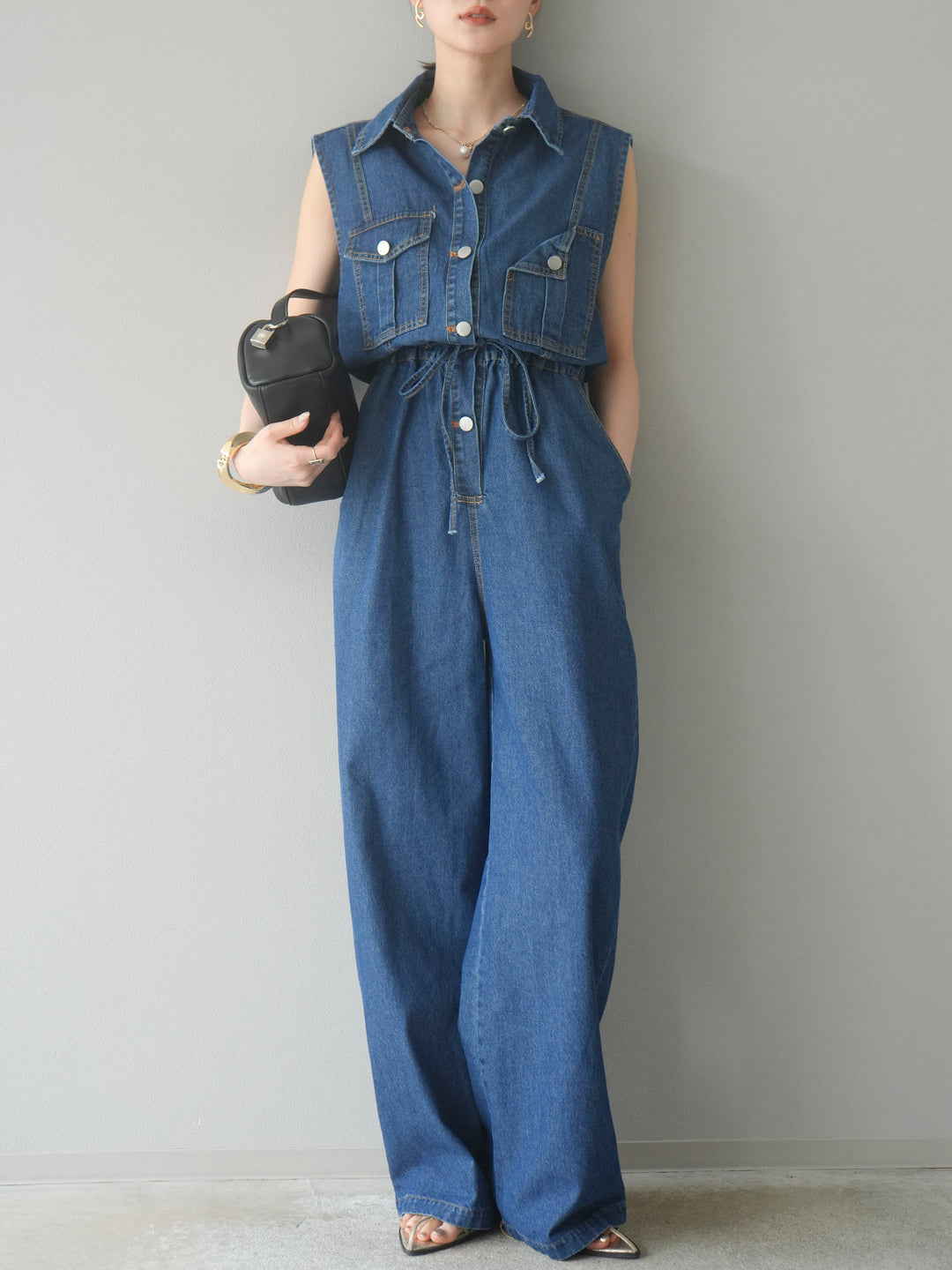 [予約]ポケットデザインデニムオールインワン/ブルー