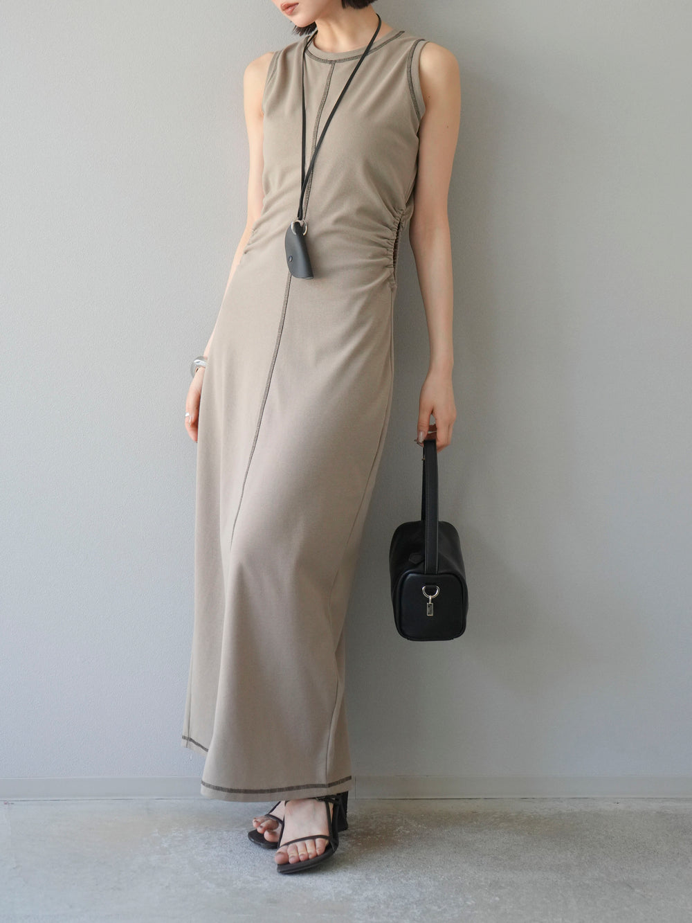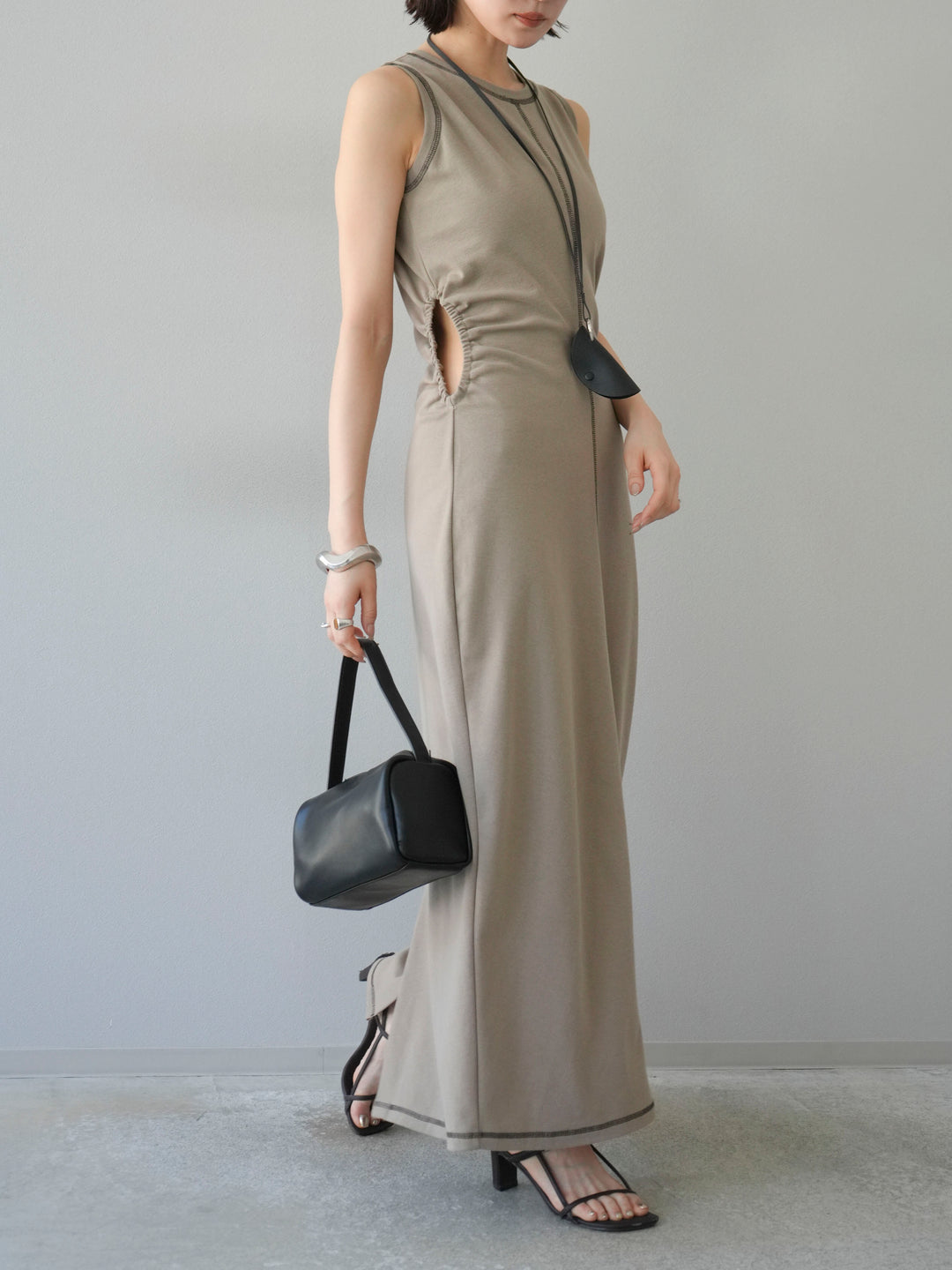 [予約]ウエストオープンステッチカットワンピース/ブラック