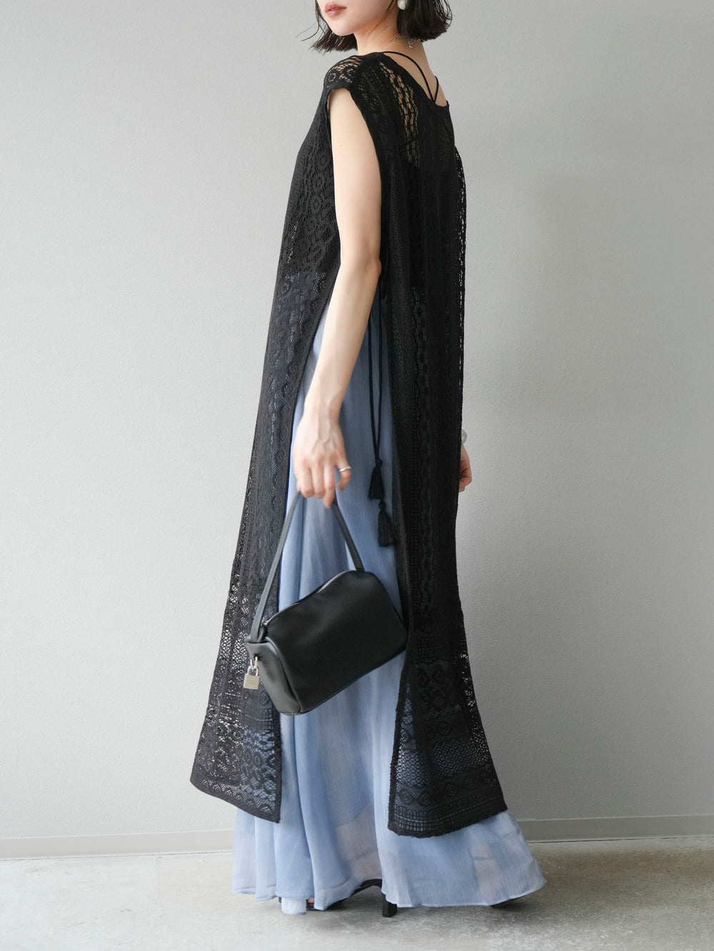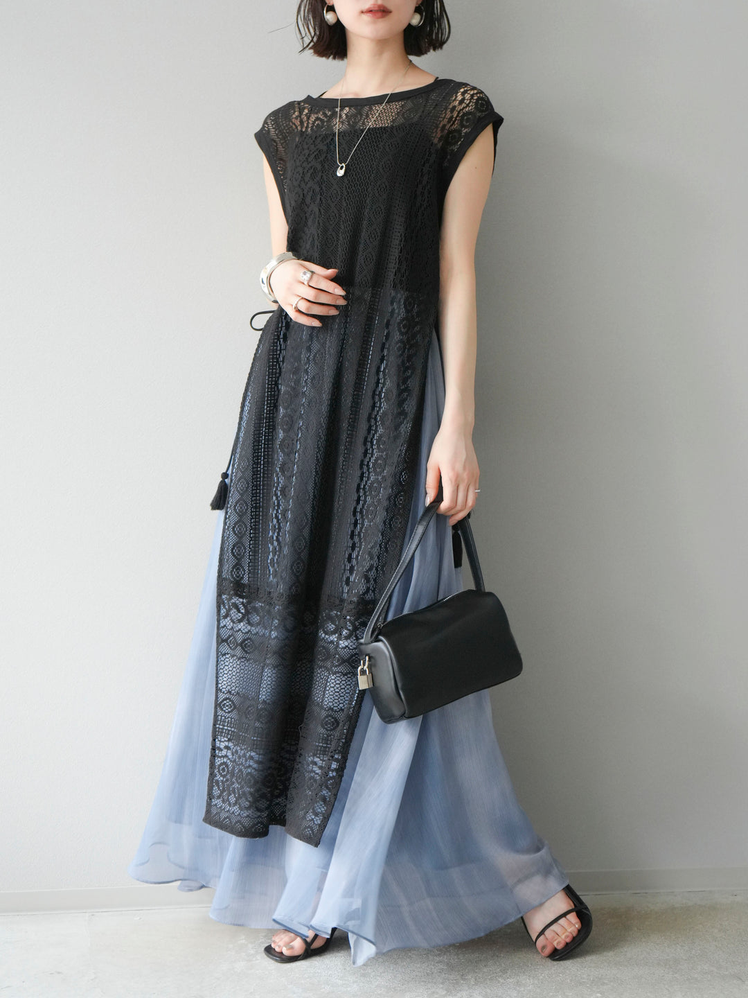 [予約]インド製レースレイヤードワンピース/ブラック