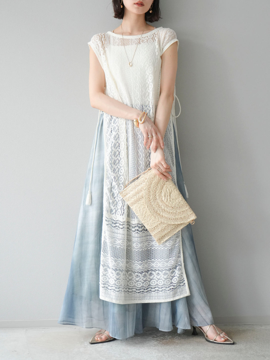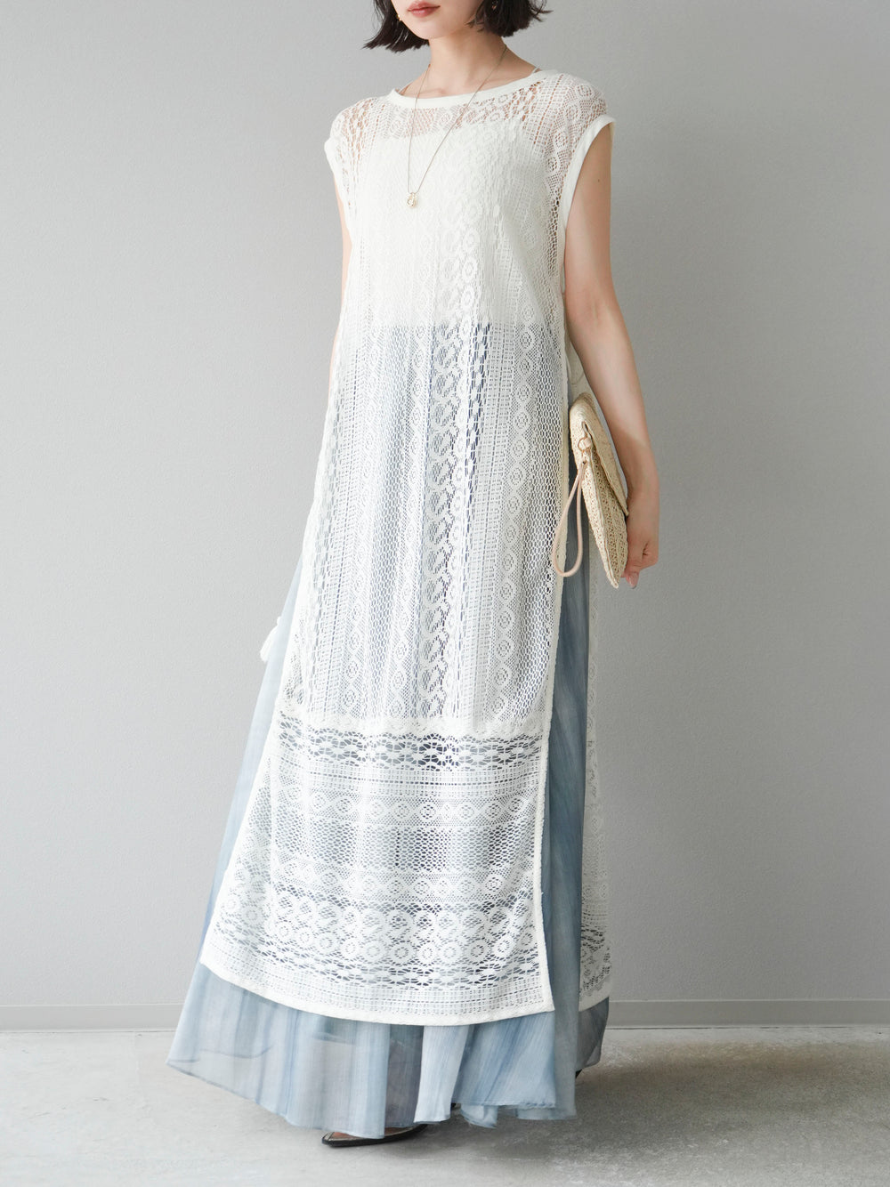 [予約]インド製レースレイヤードワンピース/オフ