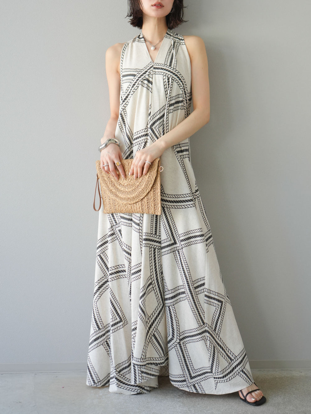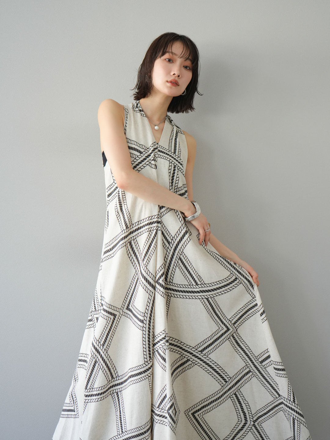 [予約]ロープ柄リネンタッチワンピース/アイボリー