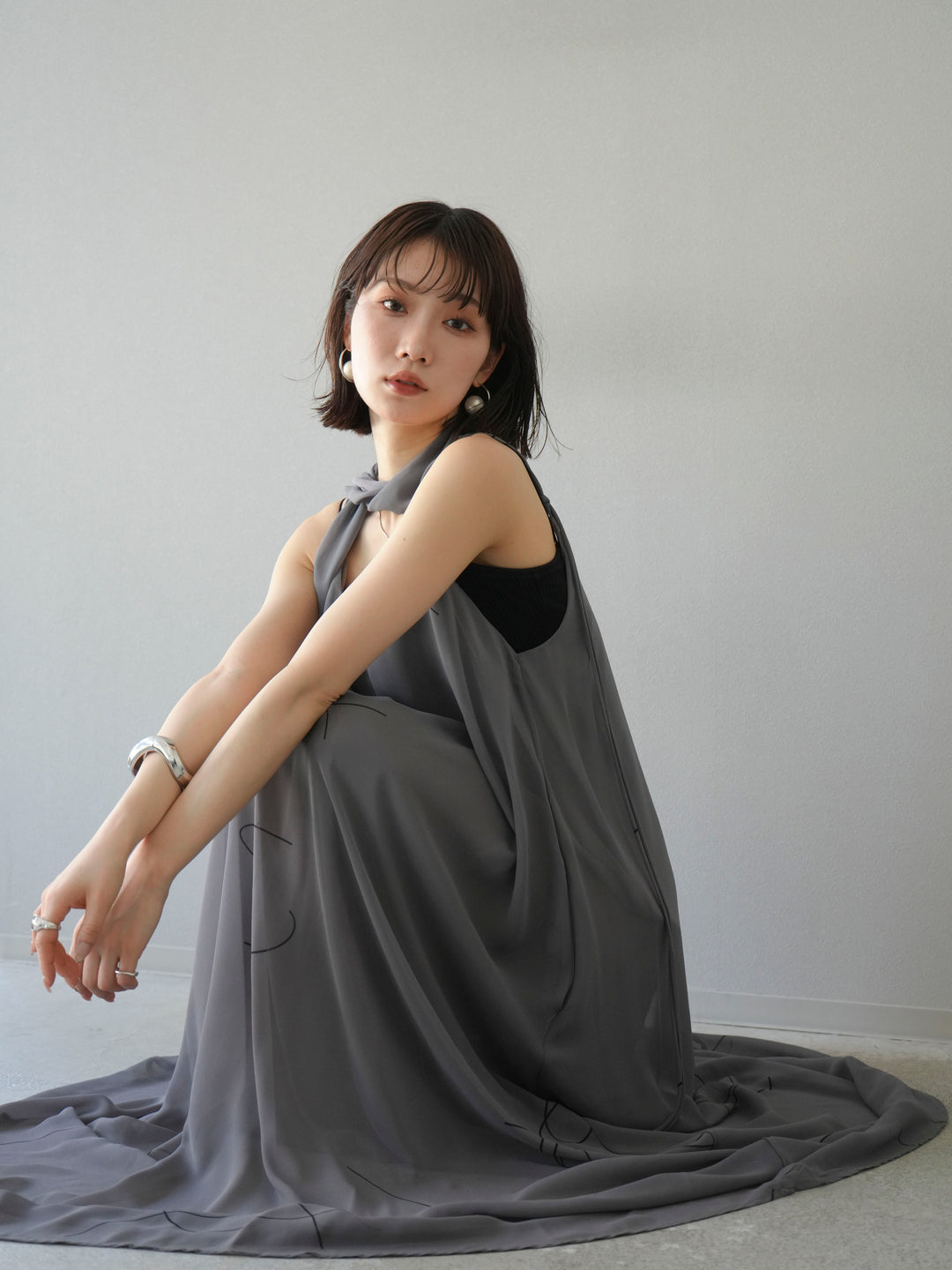 [予約]ペンタッチシフォンキャミワンピース/グレー