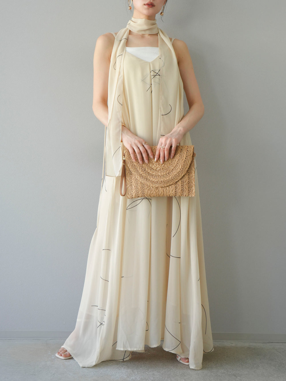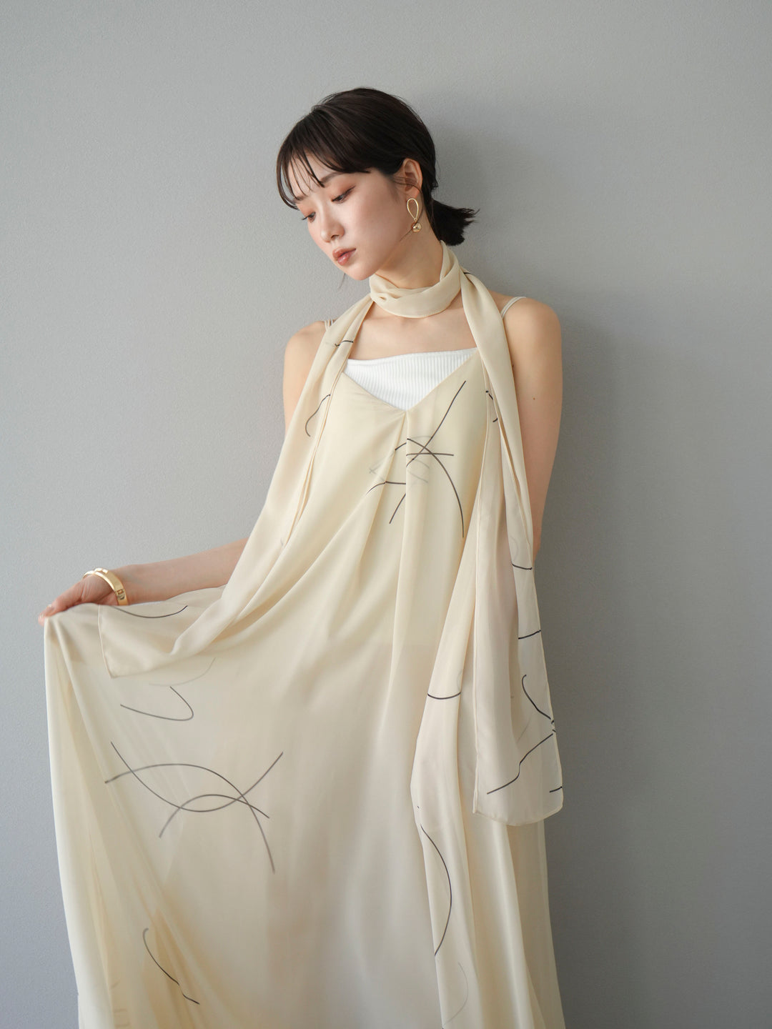 [予約]ペンタッチシフォンキャミワンピース/アイボリー