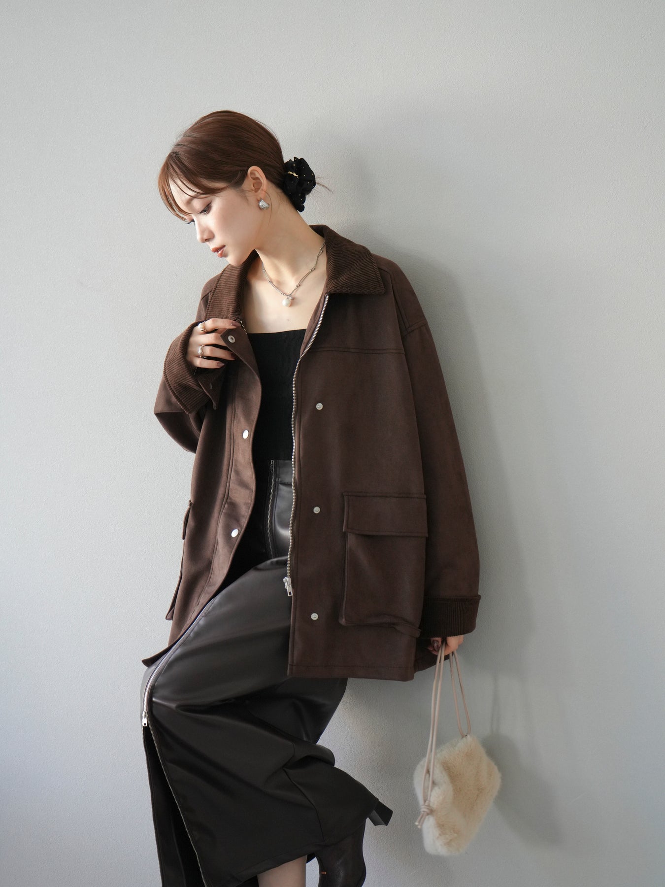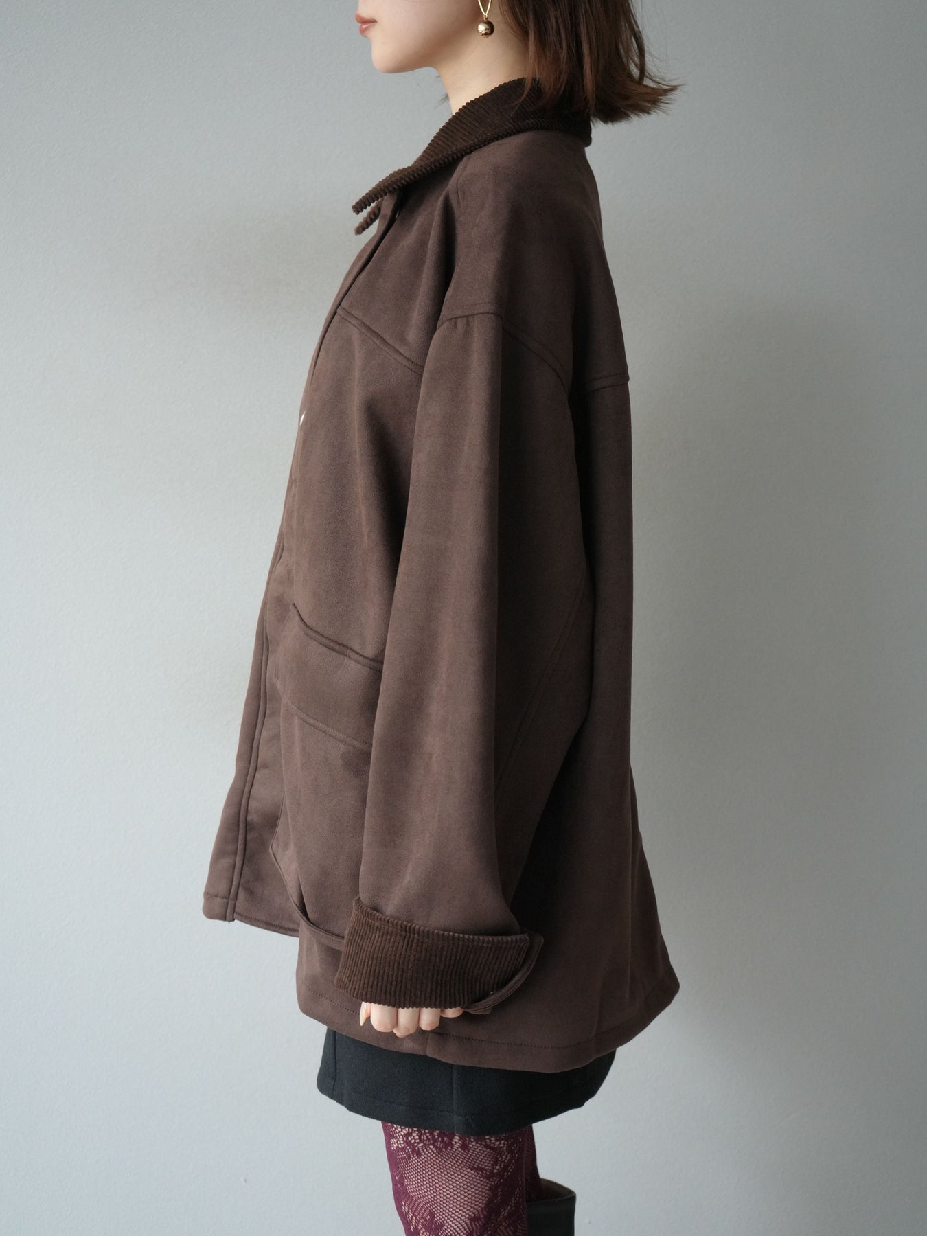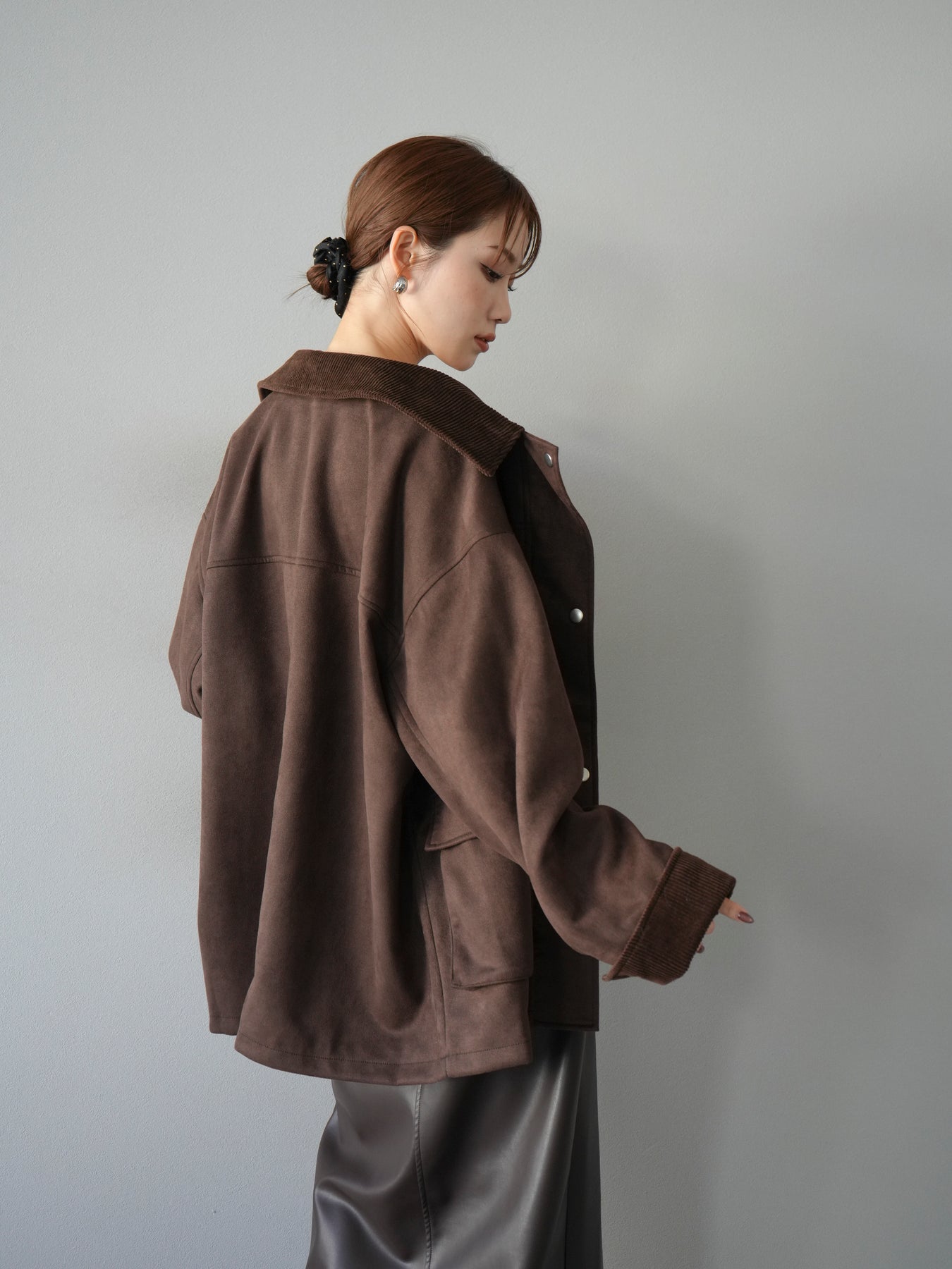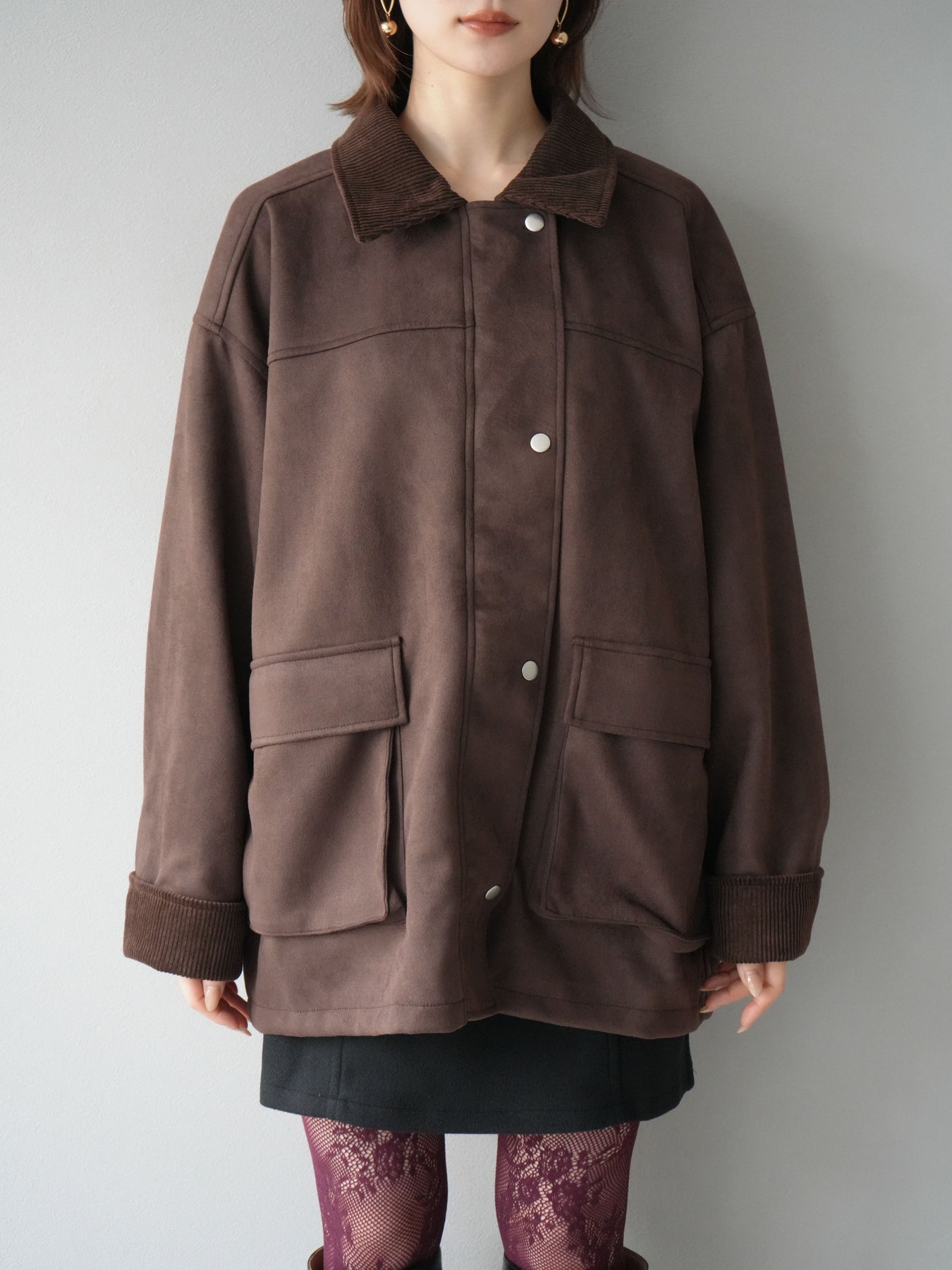 [予約]コーデュロイ襟スウェードミドルジャケット /ブラウン